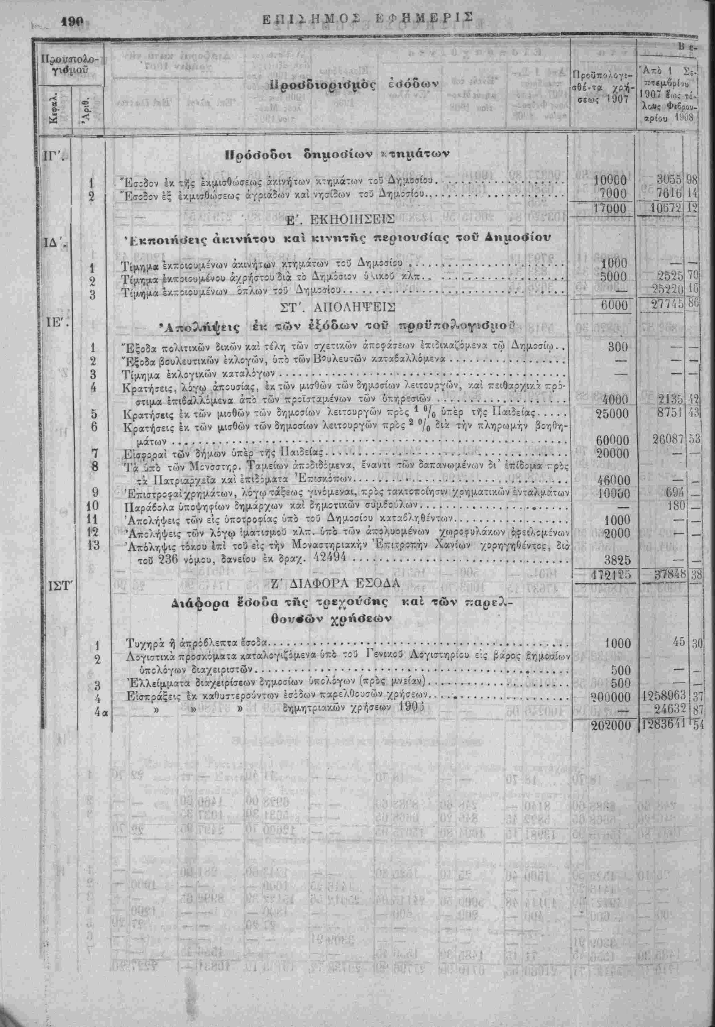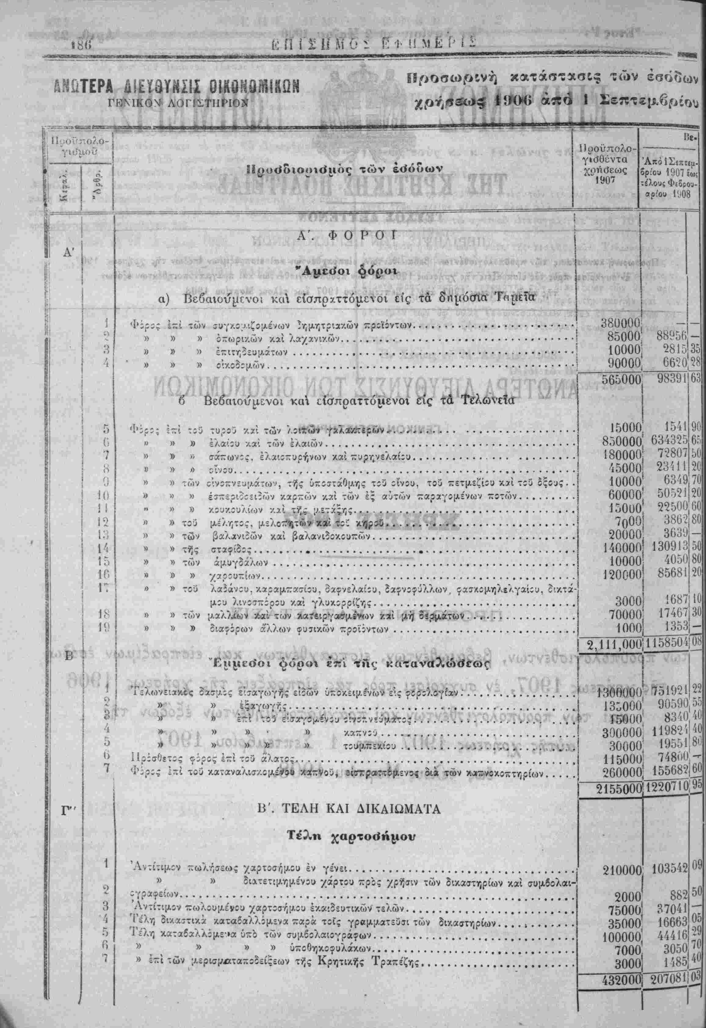 | έν (ΐυγκρίσβι πρός τάς είσπραξις της χρήσεως 1906 και'τών ιίρθϋπολογισθέντων χαί πραγματοποητ|βέντων έξόδων