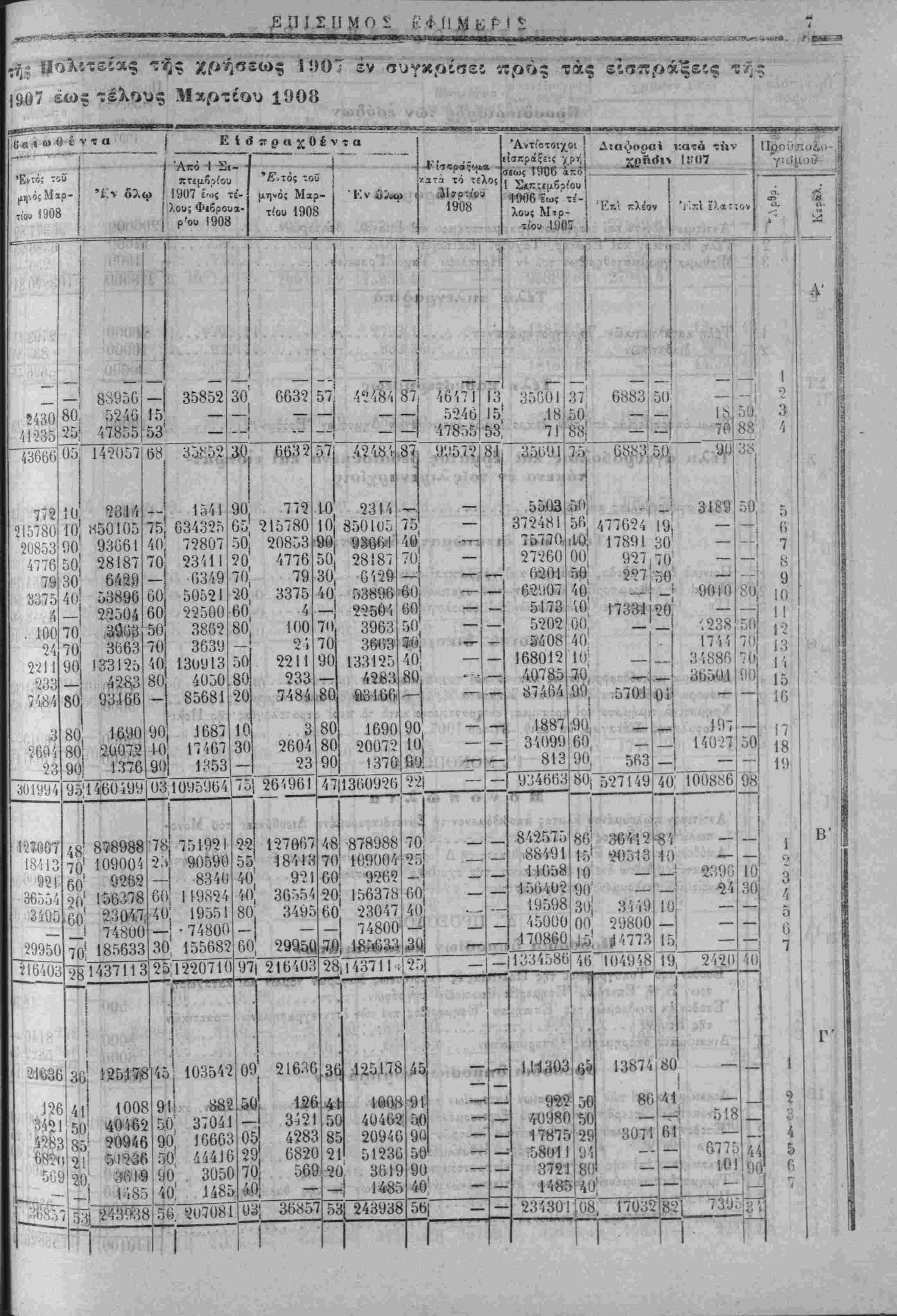 , τής χρήσεως 1907, έν συγκρίσει πρός τάς είσπράξεις τής χρήσεως 1906