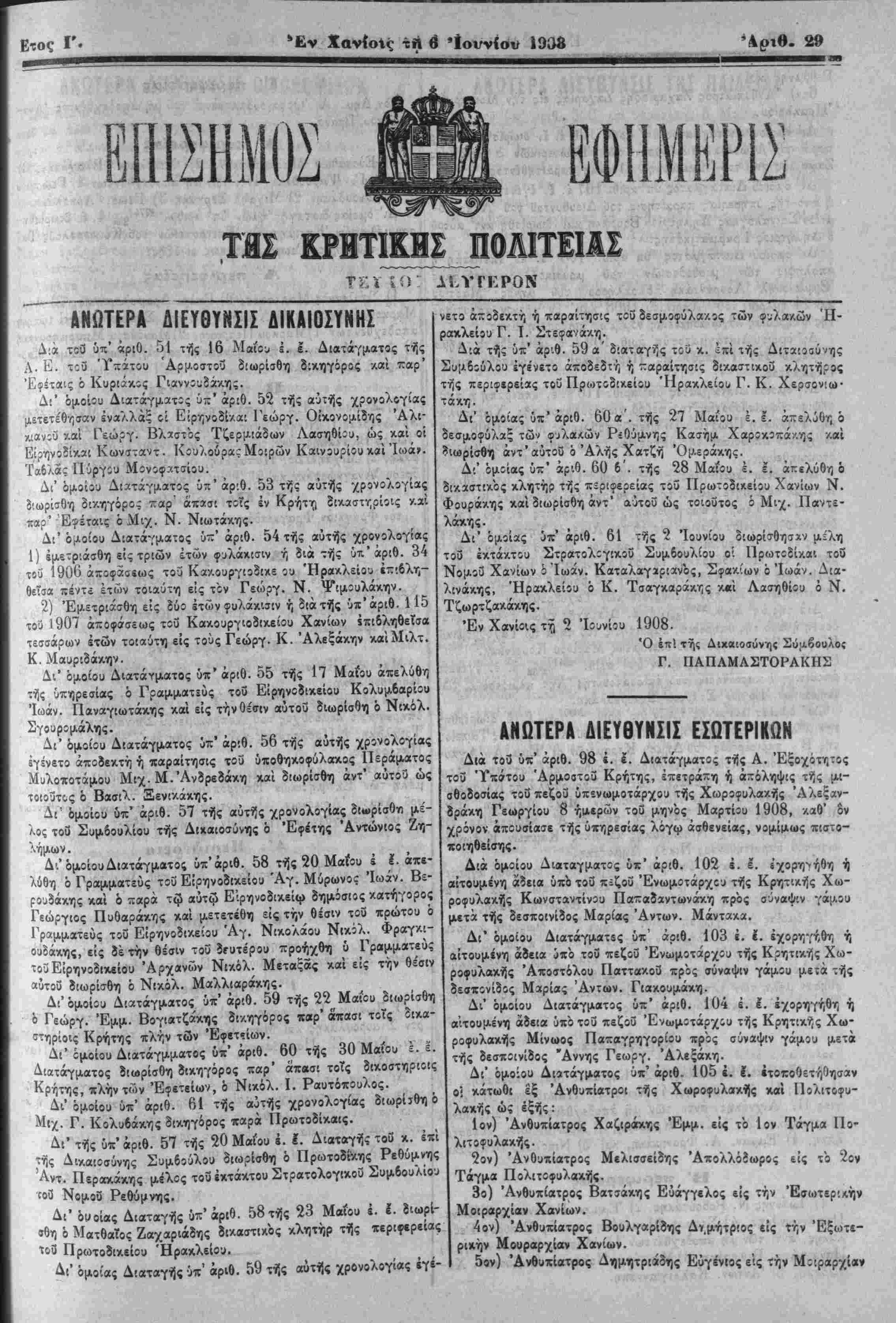 τοΰ 1906 αποφάσεως τοϋ Καχουργιοδικε ου Ηρακλείου επιβλη¬