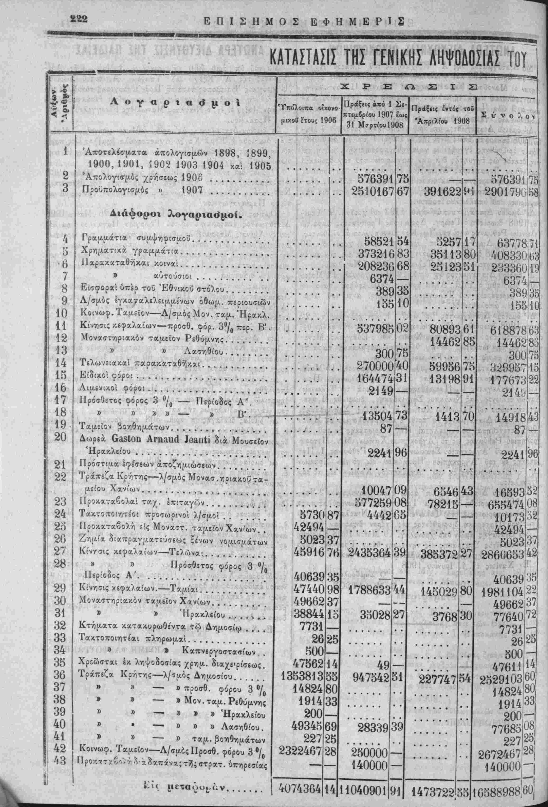 ι < 253060 — 83421 — 113365 53 449846 53 297168 03 74701456 Έν Χανίοις τγ 30 Απο],λιρυ 1908 Γ ♦ ■. ι- -ι γ» ·ϊ γ ν ■? ν ι,, · Εί (Έκ τοθ Γενικοΰ »€'» ^