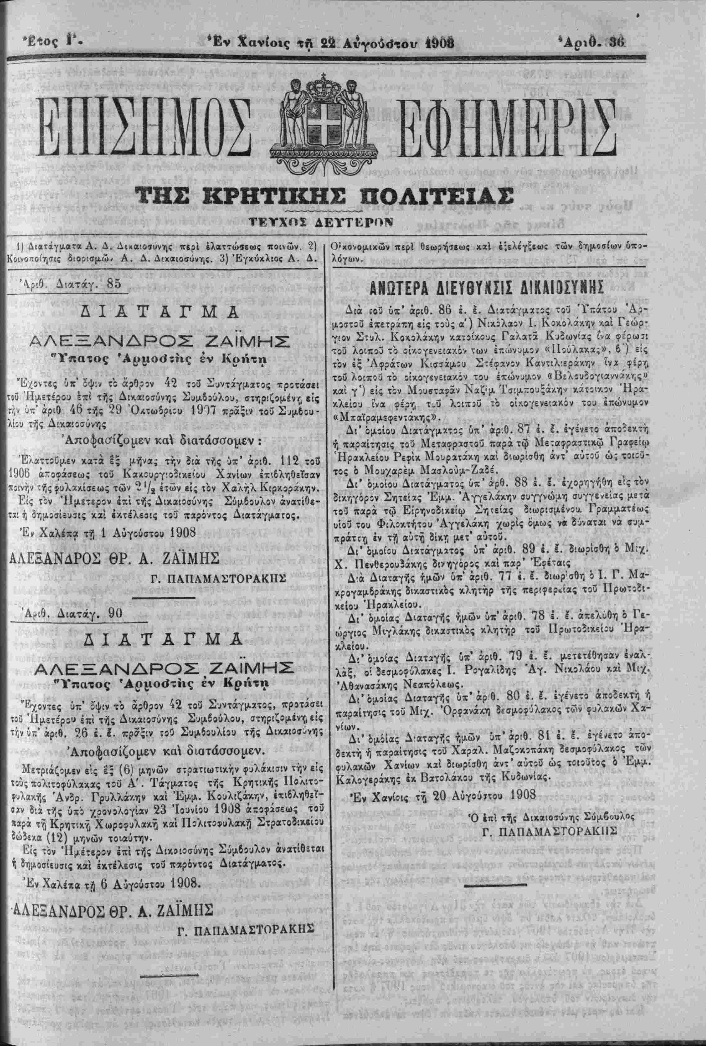 1906 αποφάσεως τοϋ Κα*ουργ:οδίκείιυ Χανίων έπιοληθεΐσαν