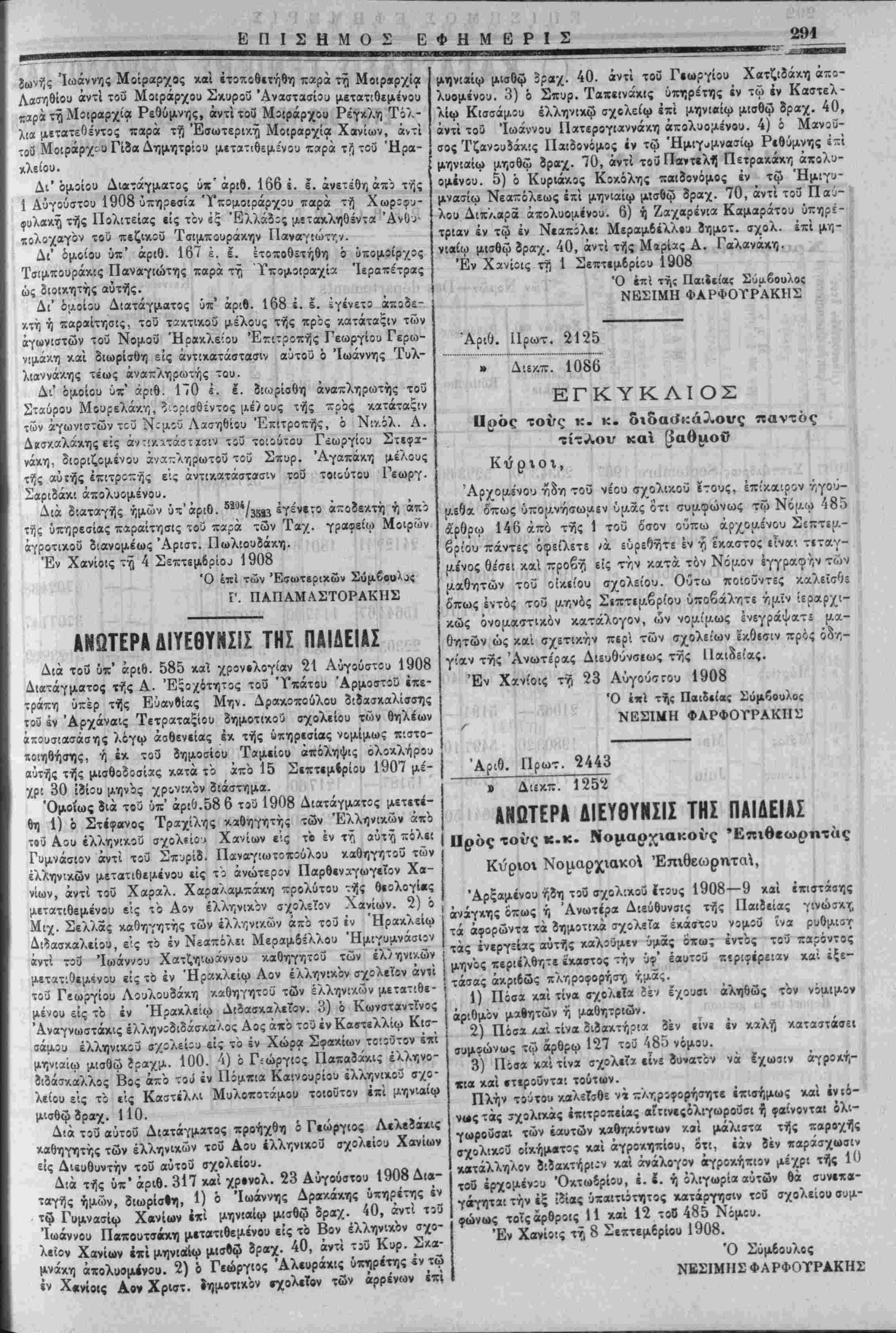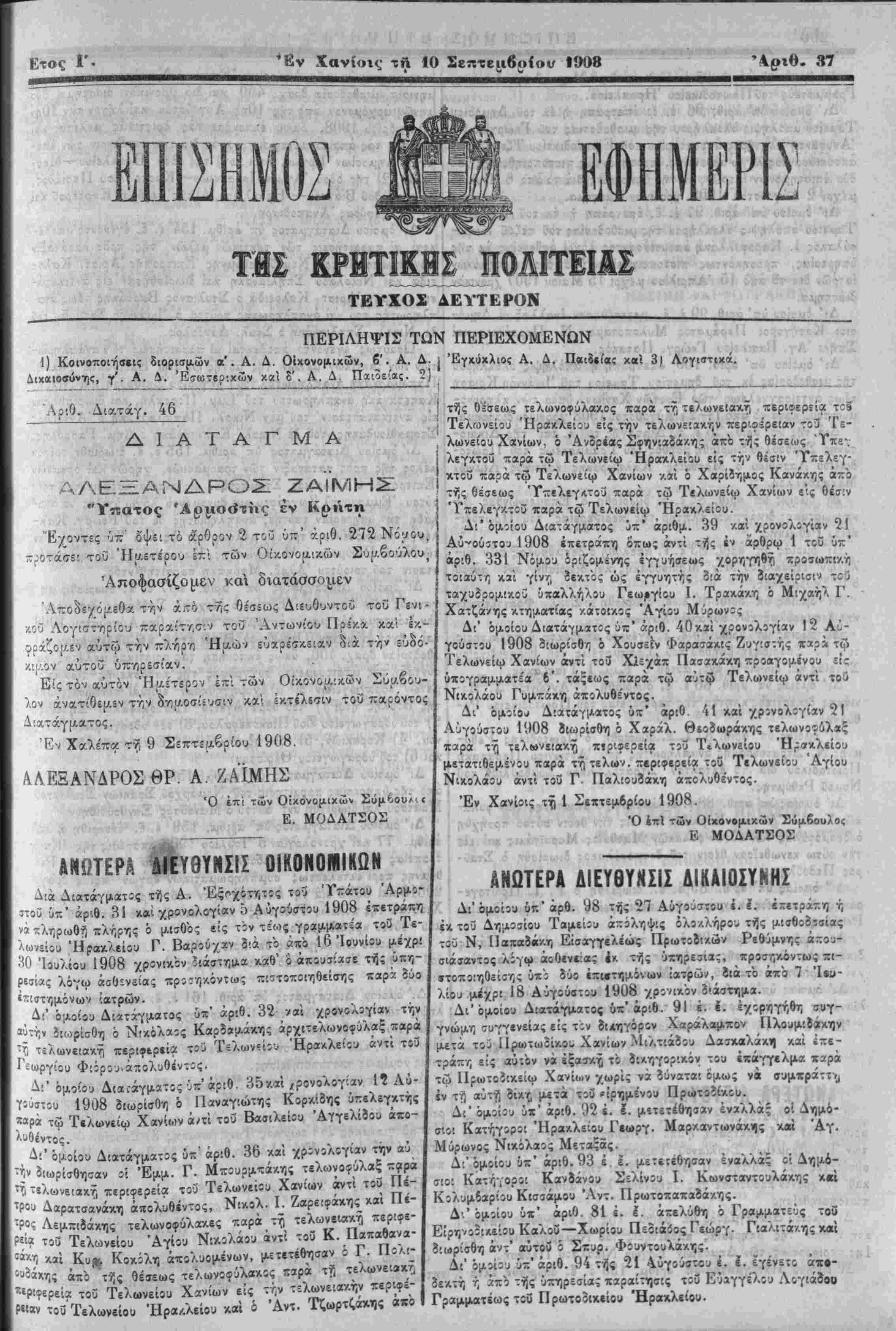 Έν Χανίοις τΛ 10 Σεπτέμβριον 1908