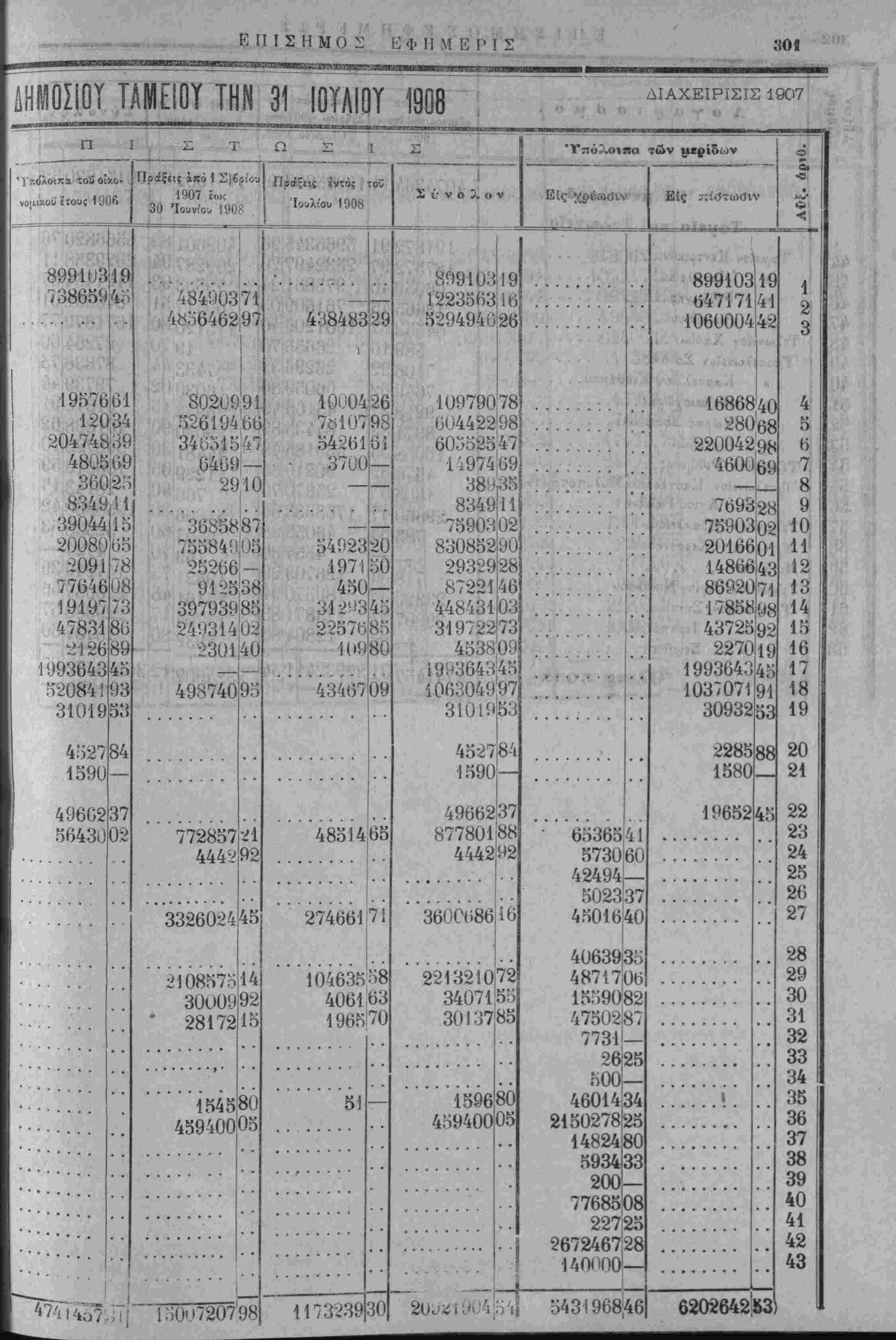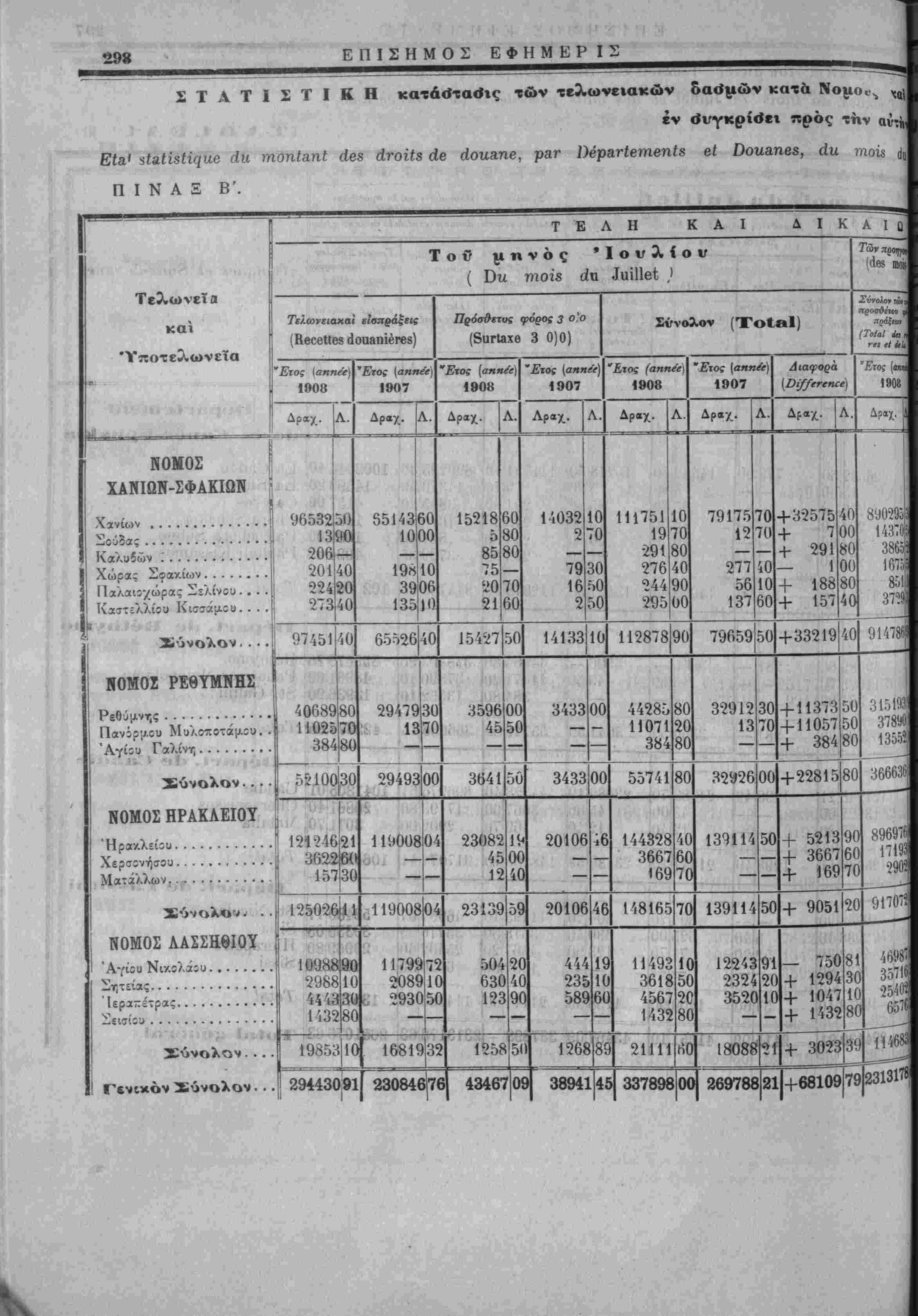 λίου μίχρι 18 Αύγουστον 1908 -/ρονικόν δ'άστημα.