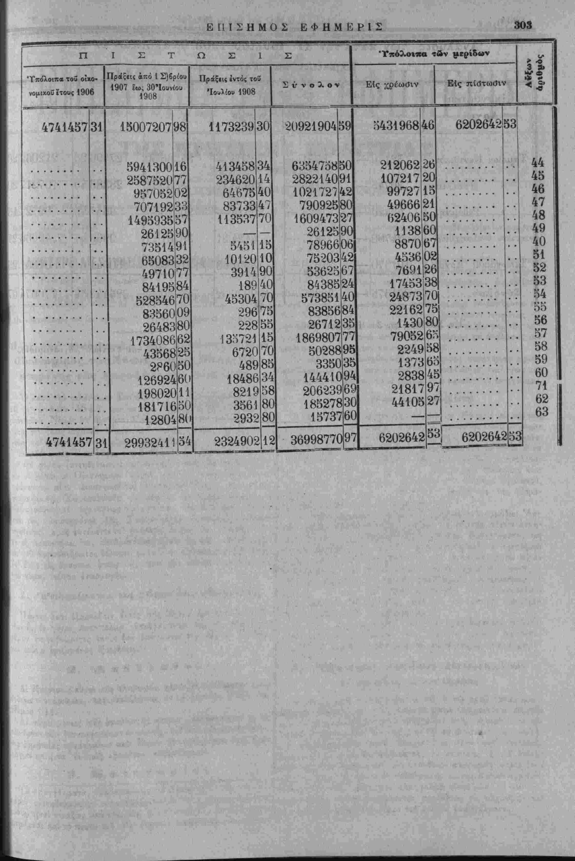 Ανάλυσις των κατάτήν 31 Ιουλίου 1ί)08 ύπολοίπων έν τοίς