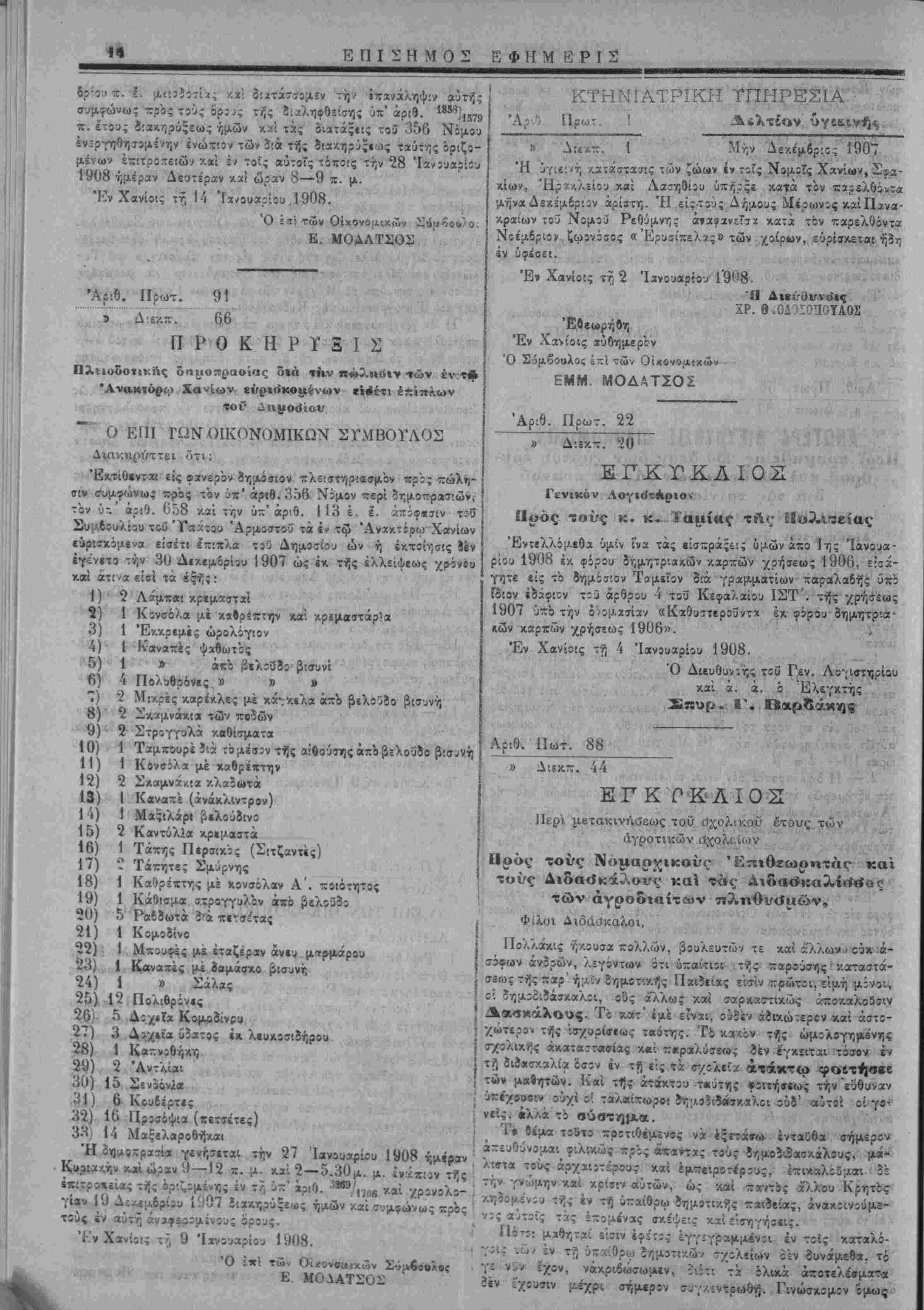 Τό Δημαρχείον Κανοάνου χοινοποιεϊ ότι χατά την 29 Δεχεμ-