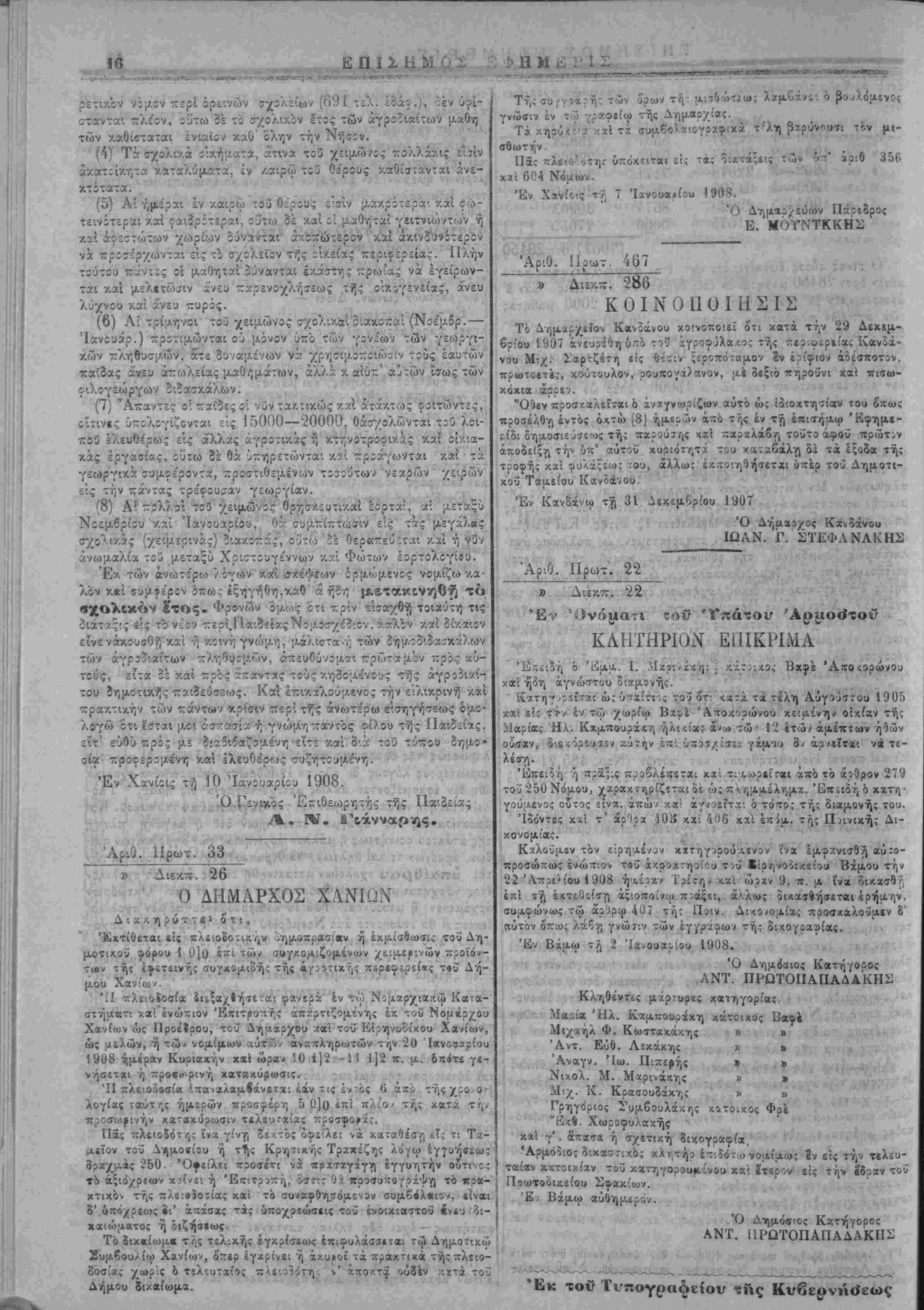 Αριθ. Ιίρωτ. 467