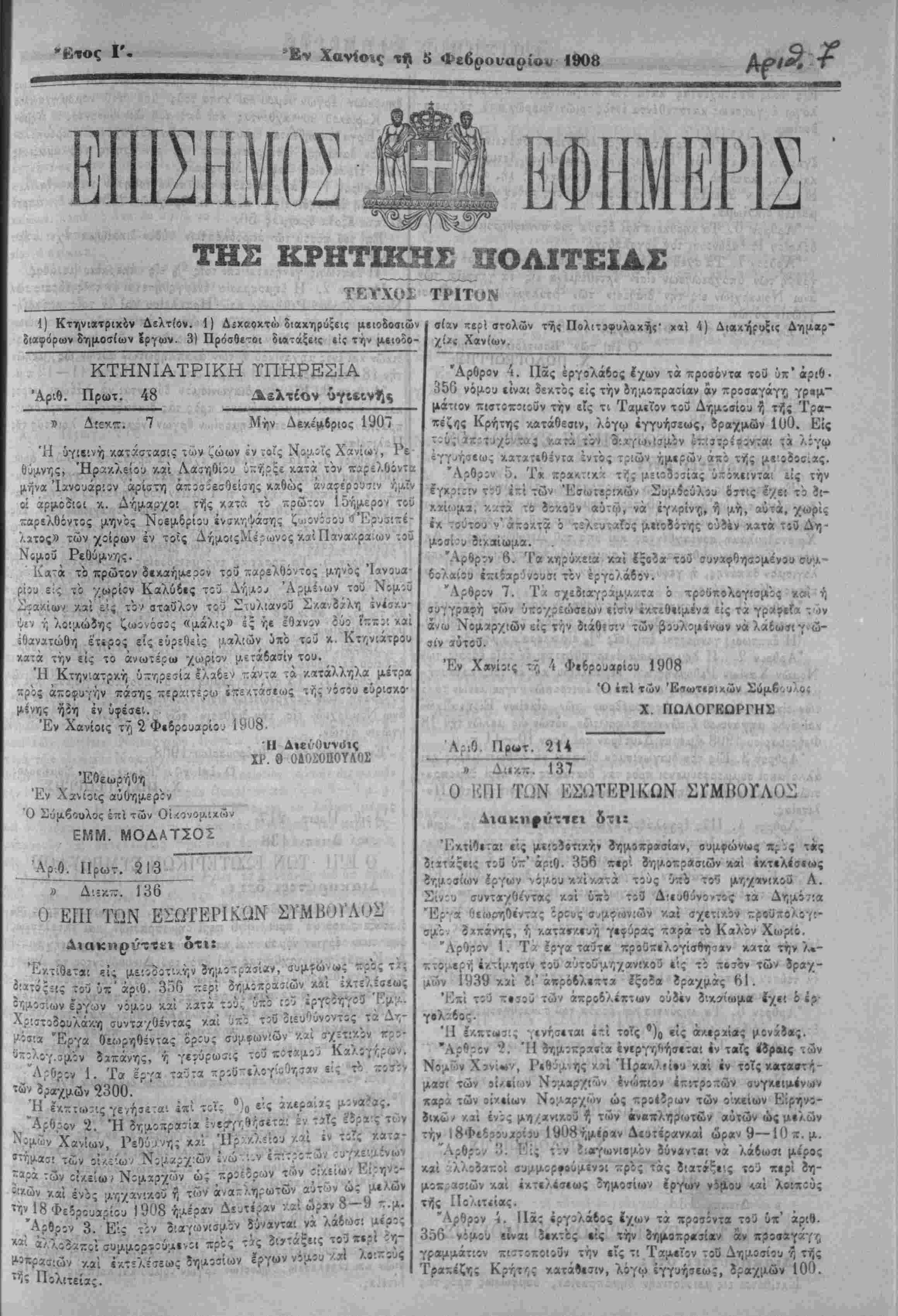*_ν Χανίοις τί) 5 Φεβροι/αρίου 1908