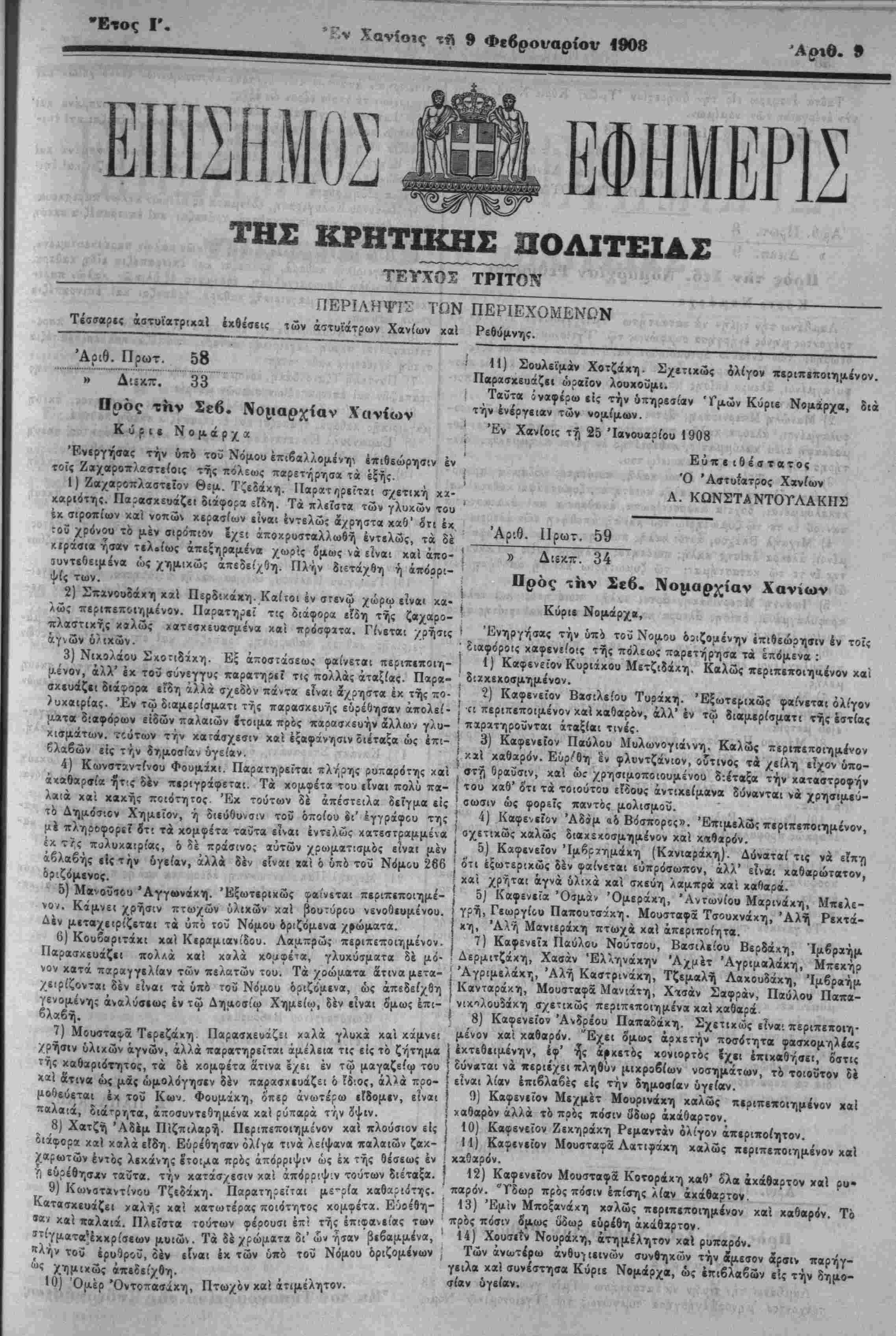 Πρός τί,ν ϊε6. Νομαρχίαν Χανίων