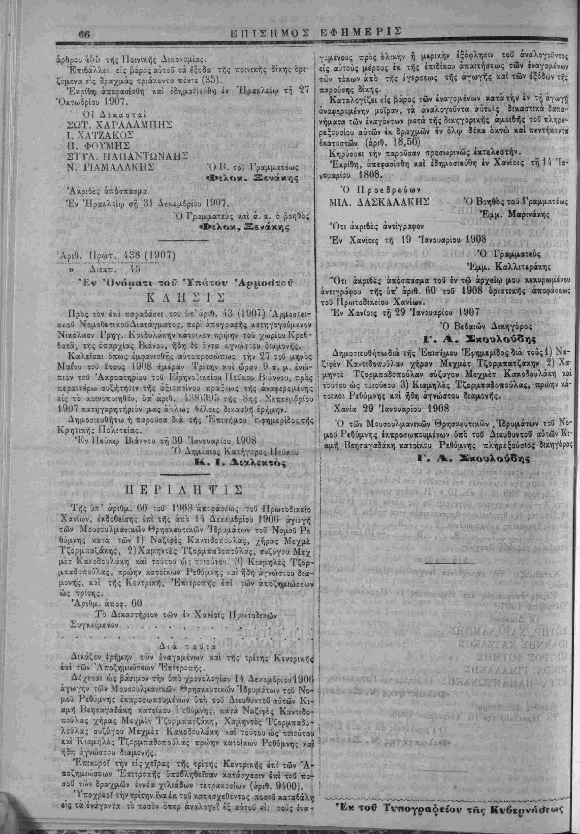 Αριθ. Πρωτ. 438 (1907)