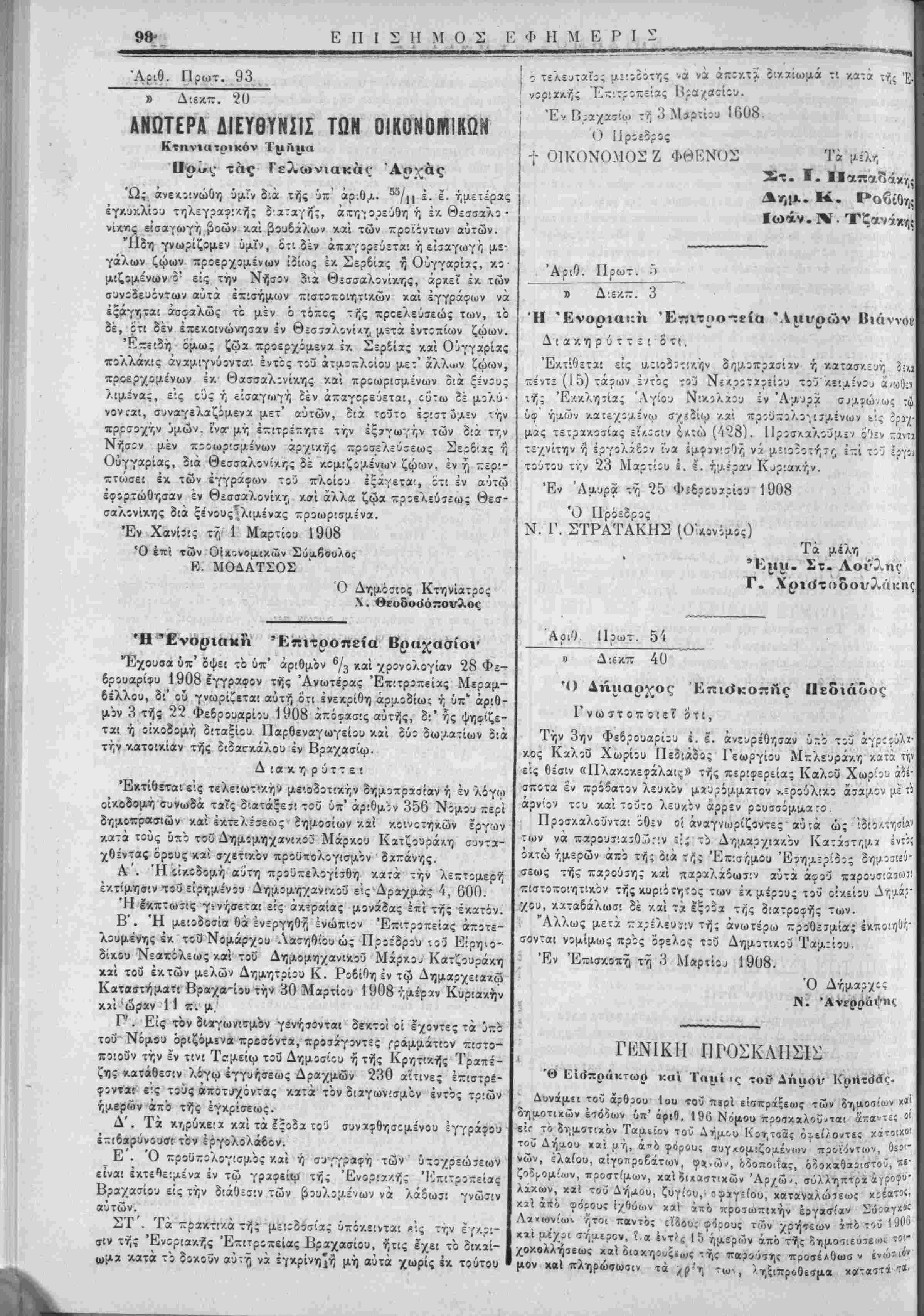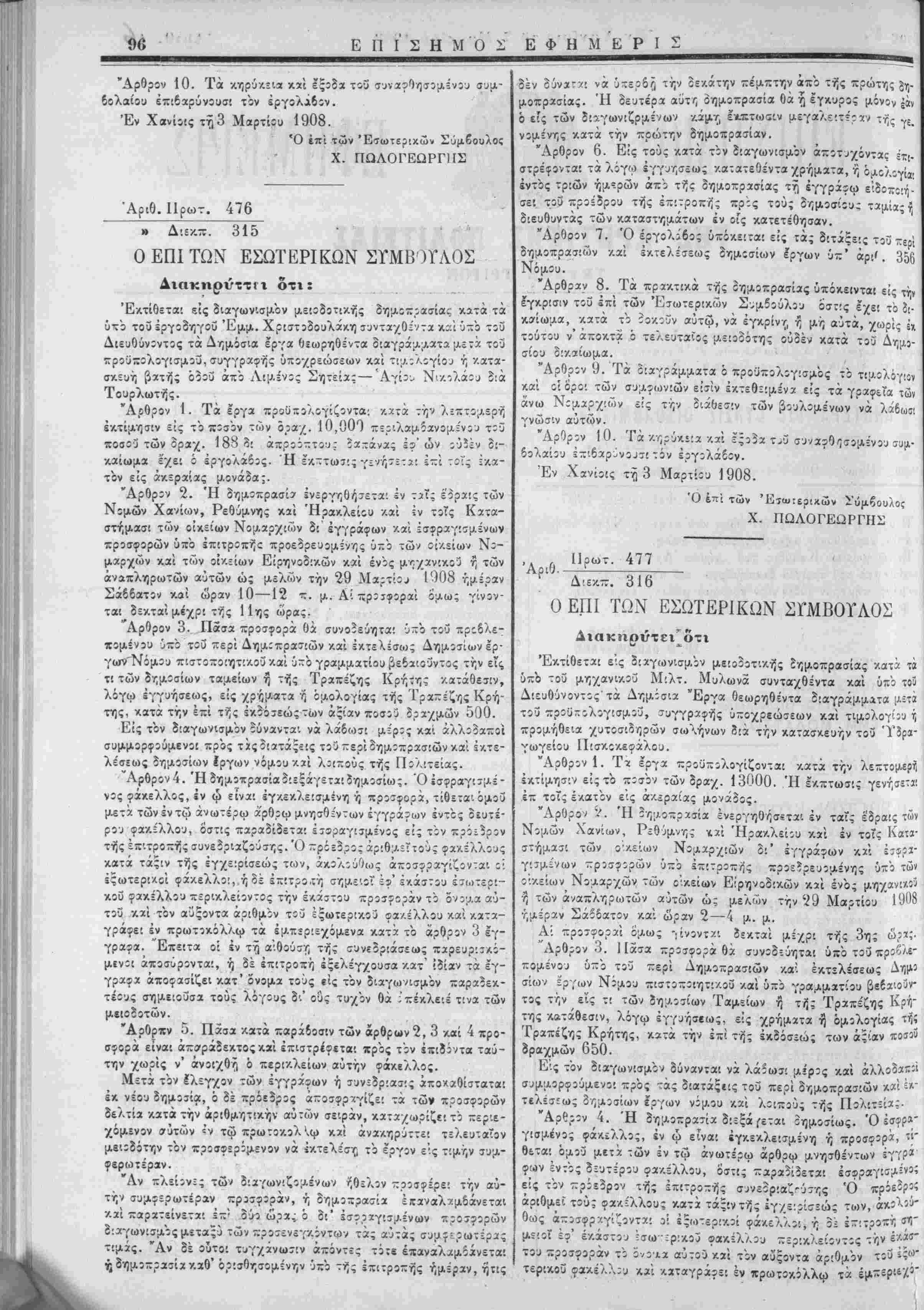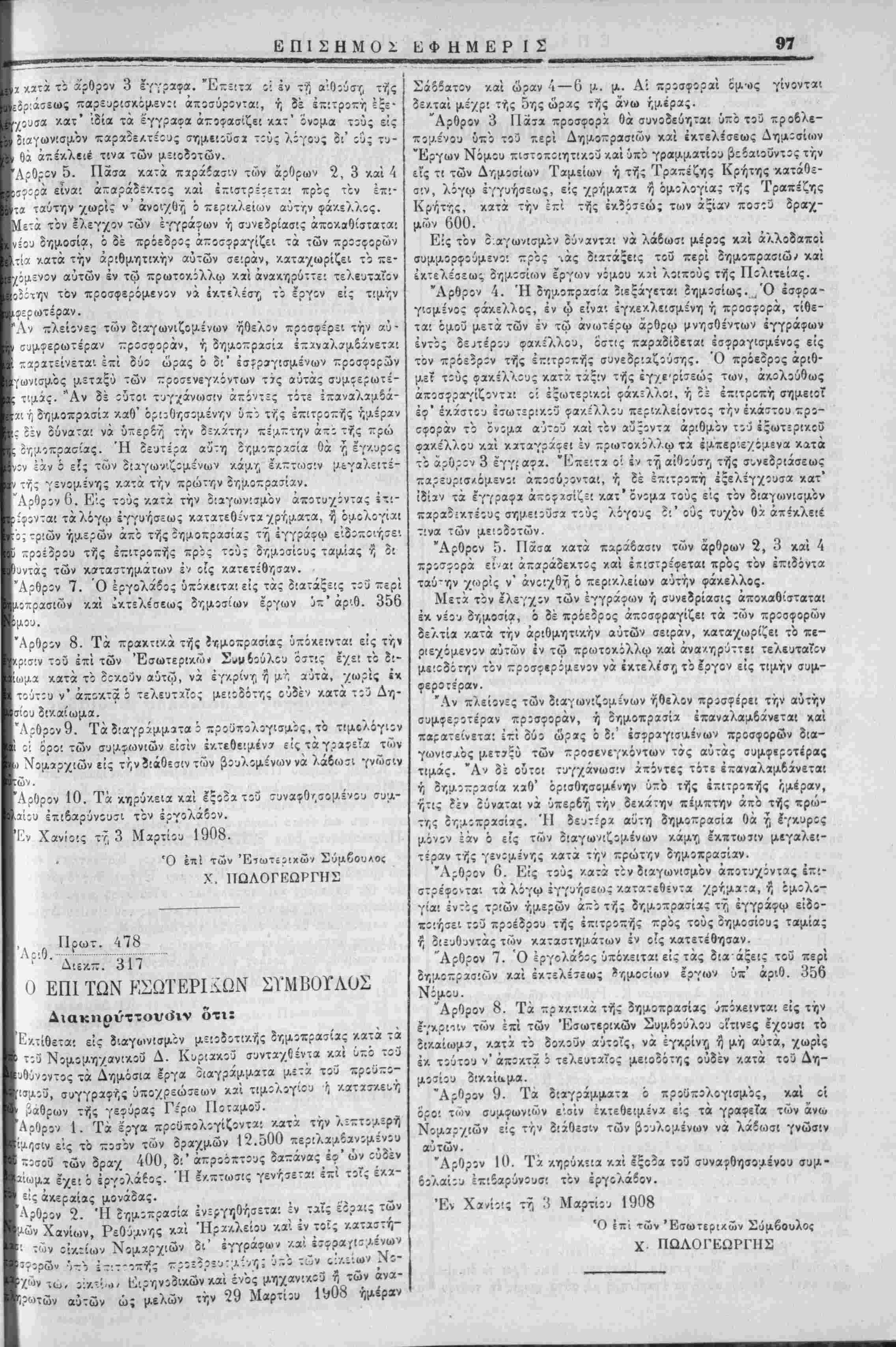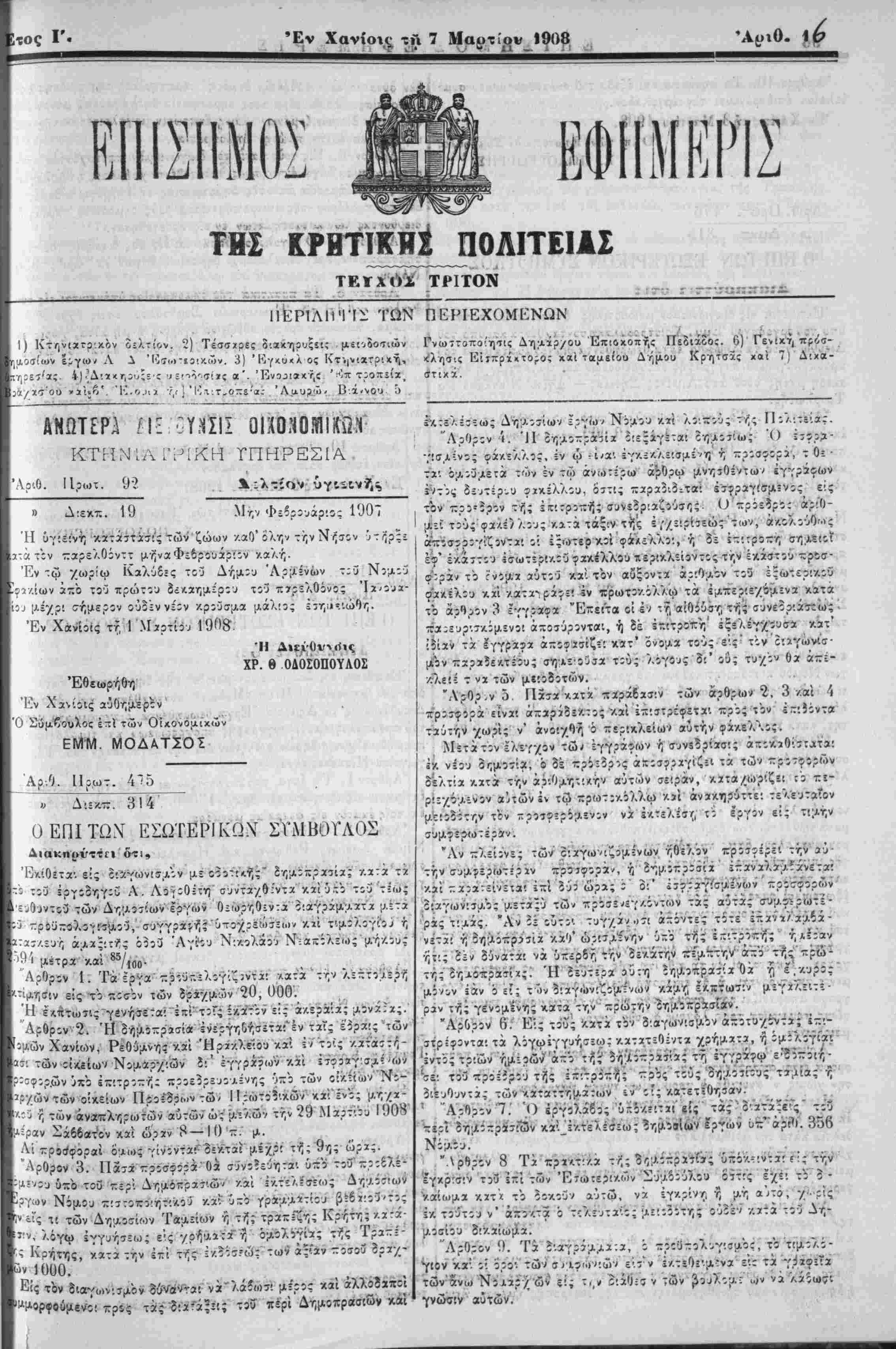 Εγένετο χαϊ εξεδόθη έν Ιΐδ,ύχω τή 1 Μαρτίοο 1908.