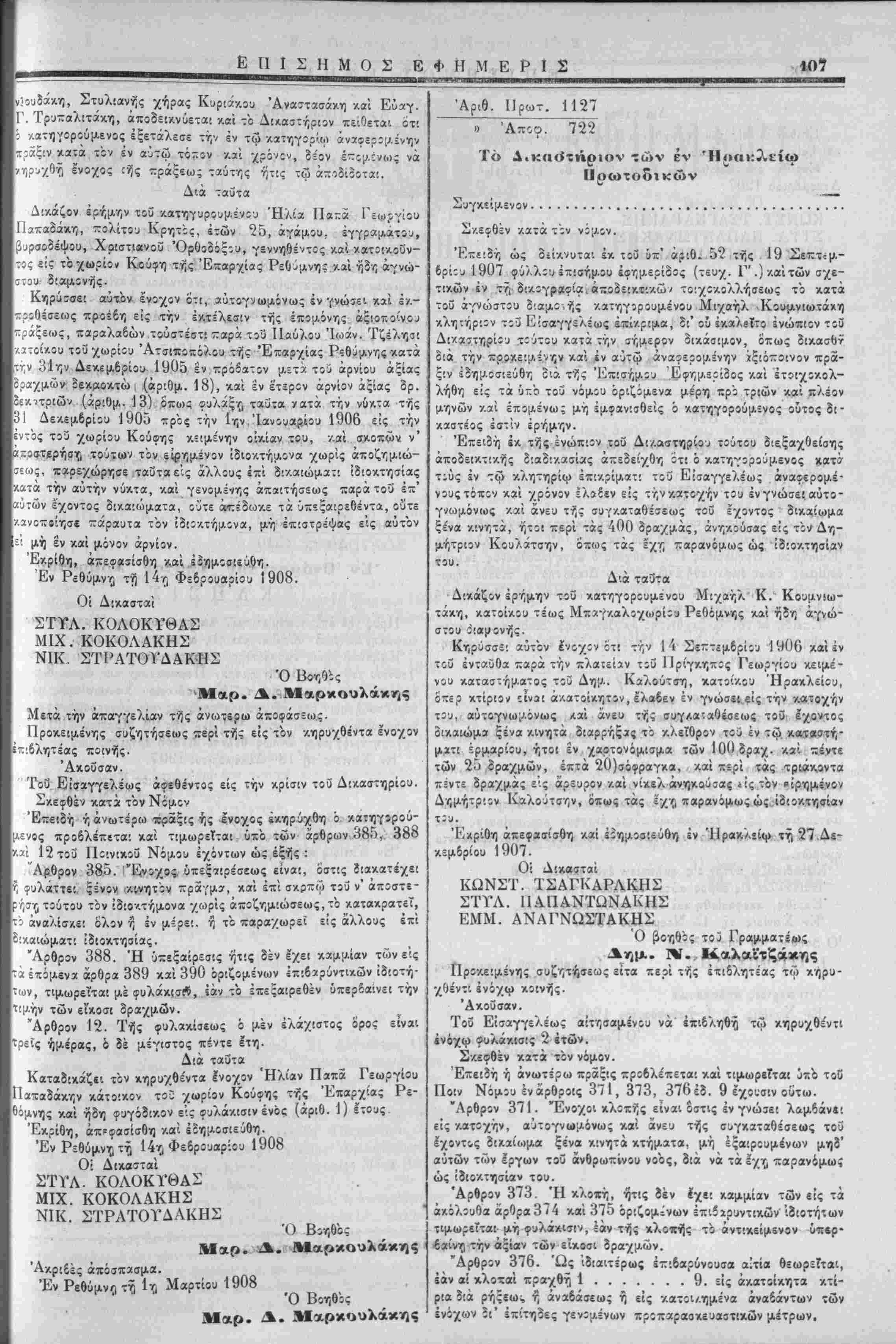 Έχρίθη απεφασίσθη καί έοημοσιςύθτ; έν Ηρακλείω τ γ, "27