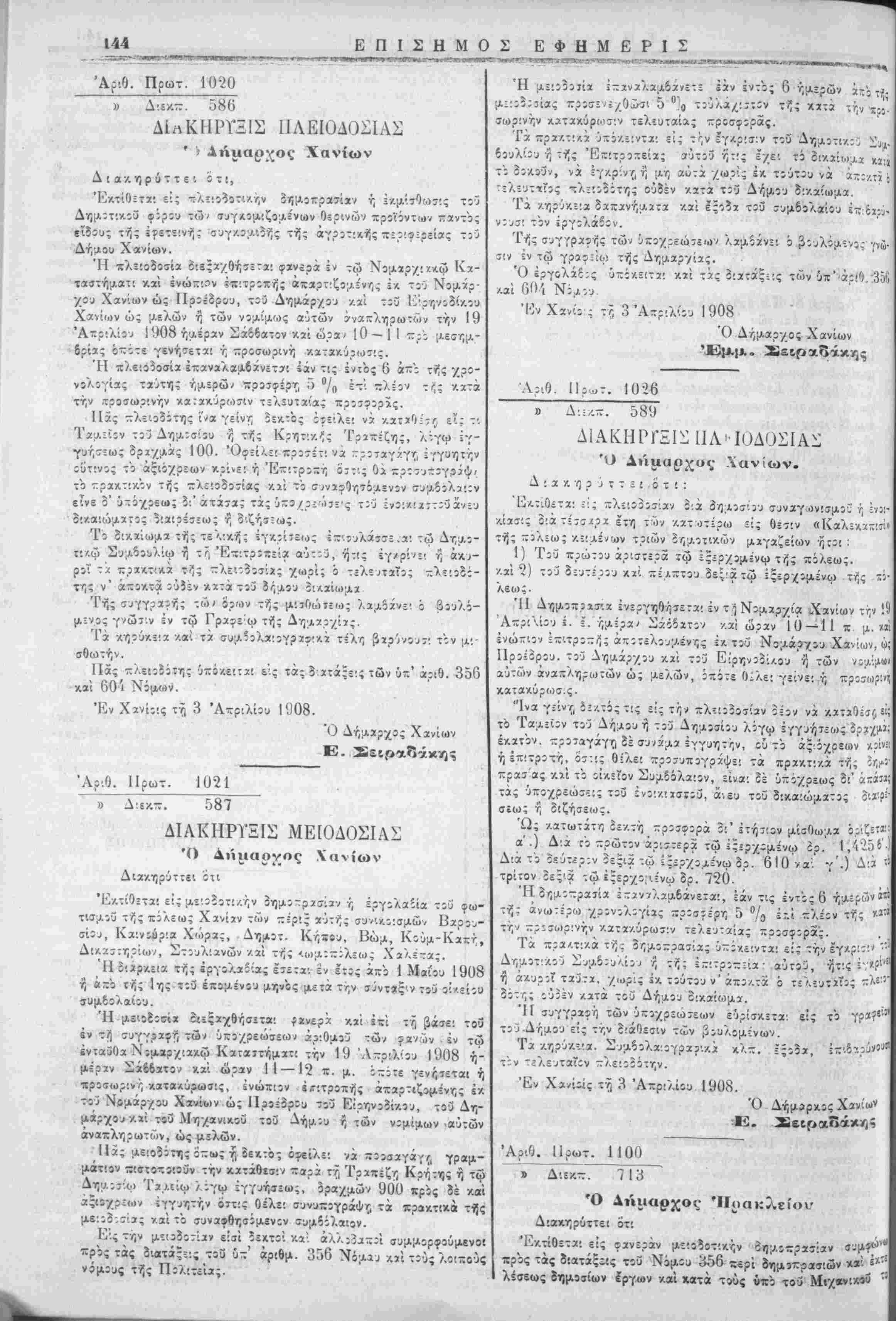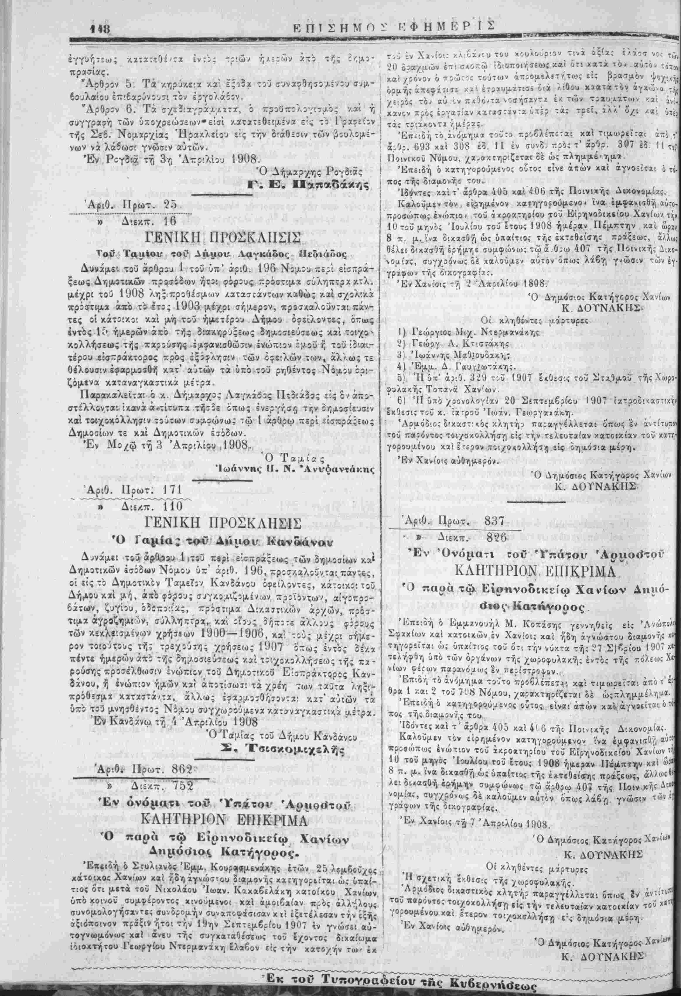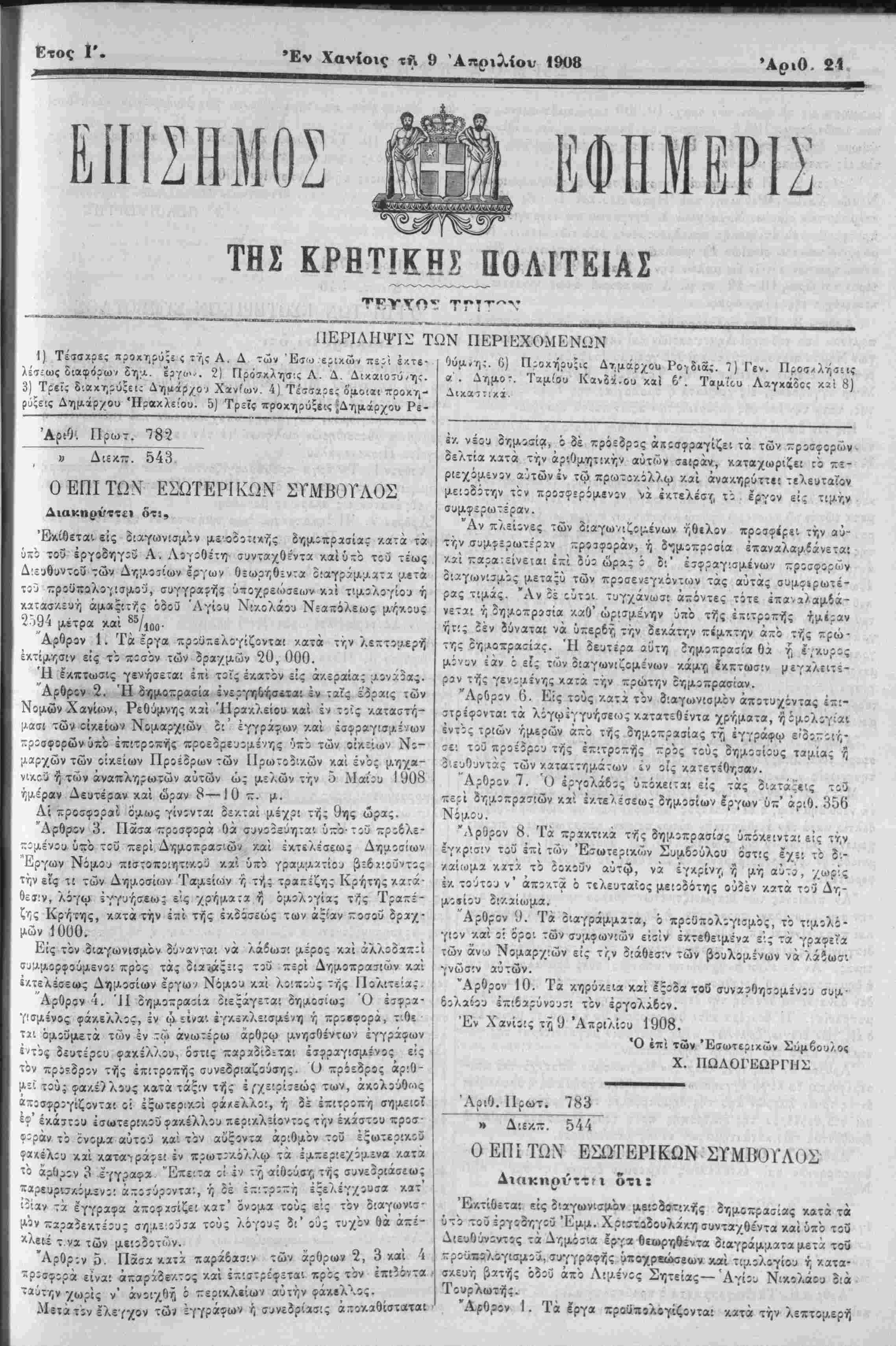 Έν Χανίοις τ^ 7 Απριλίου 1908.