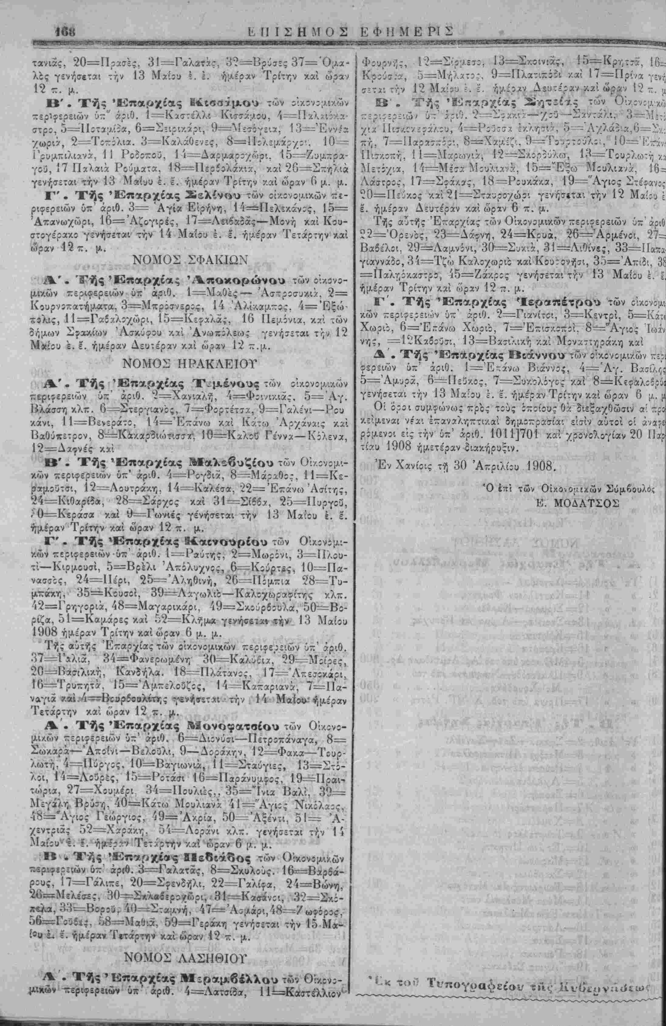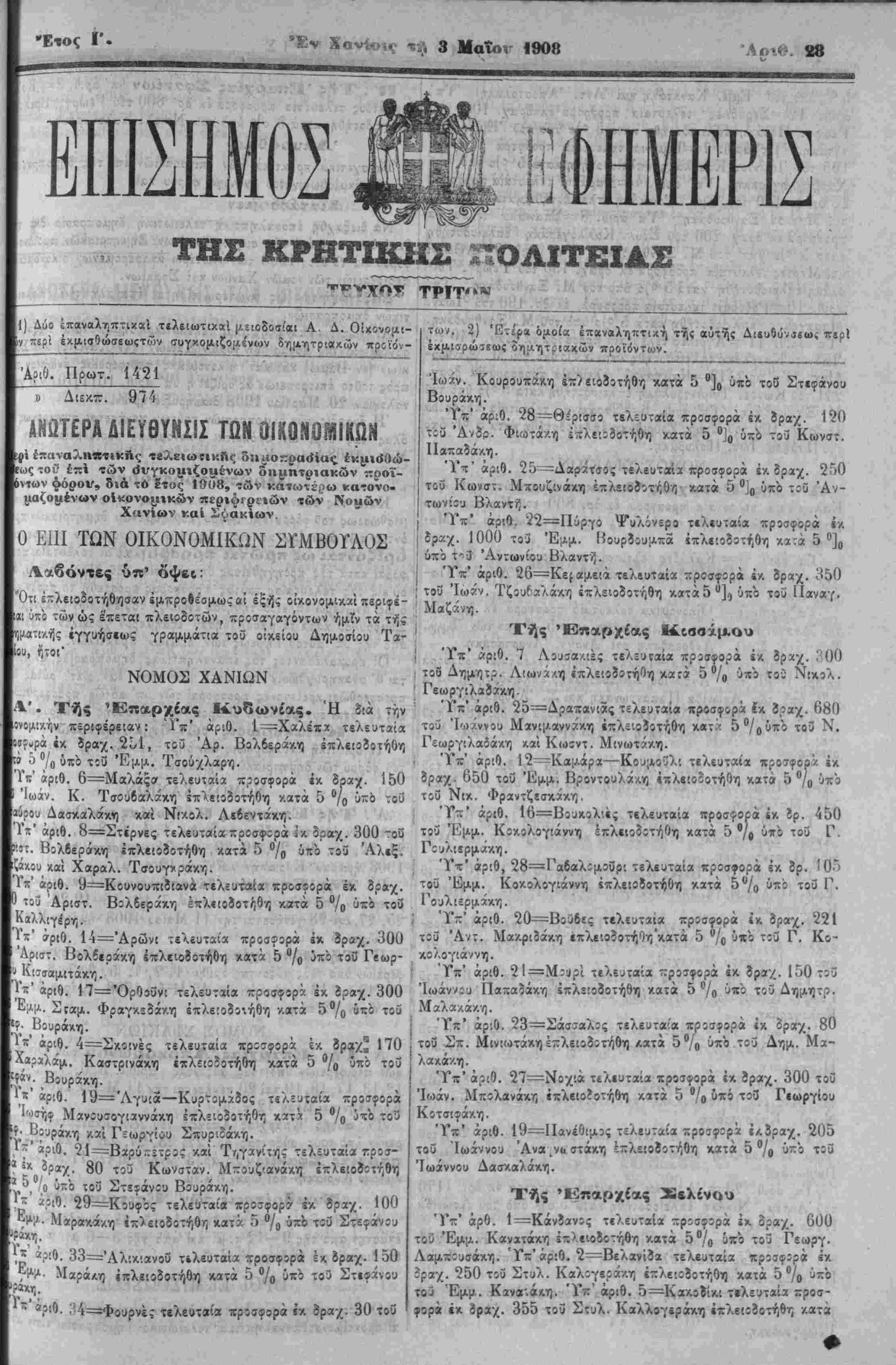 Έν Χανίοις τί] 30 Απριλίου 1908.