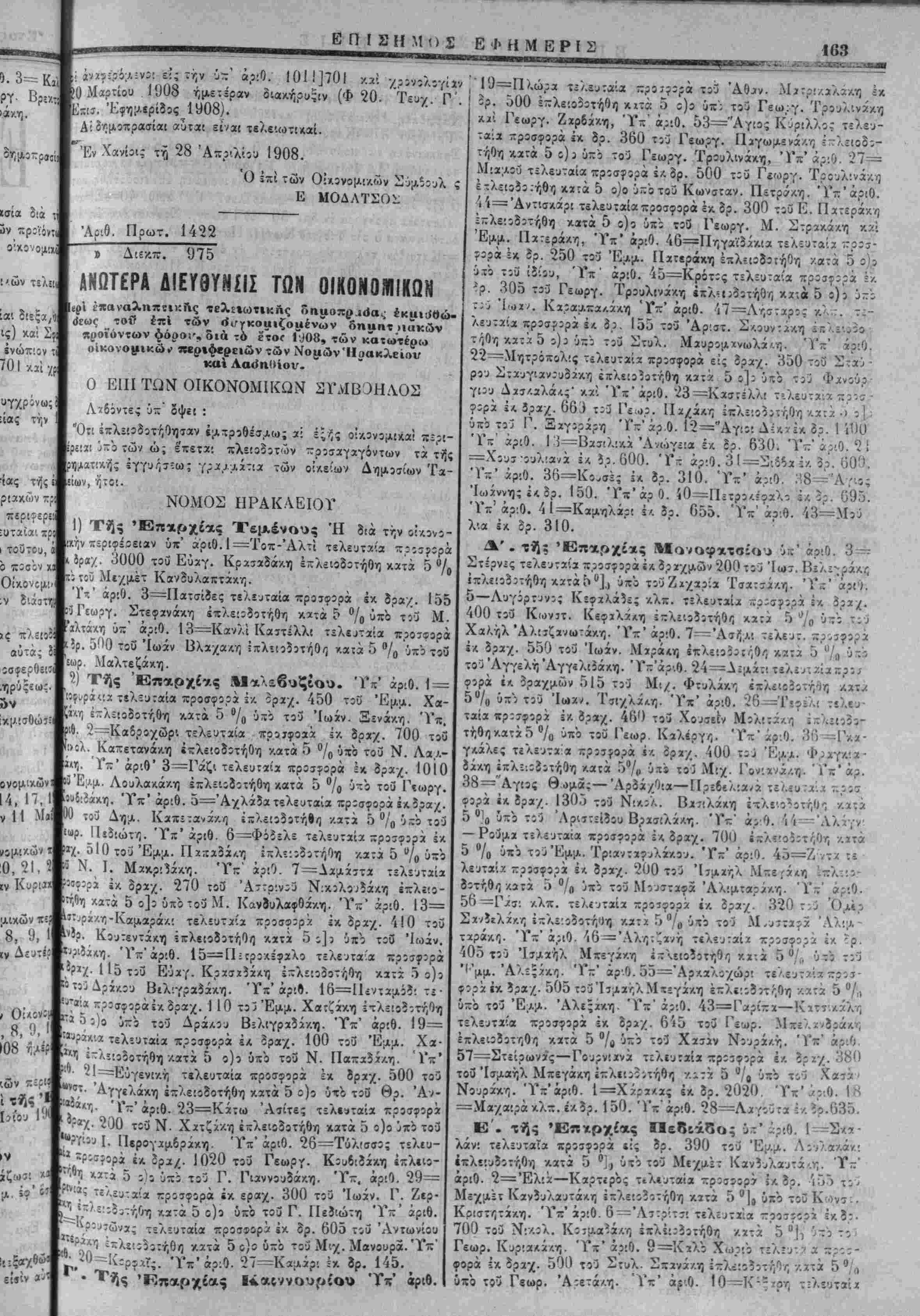 ν .Α' . Τής Επαρχίας Τ-μένους των οικονομικήν