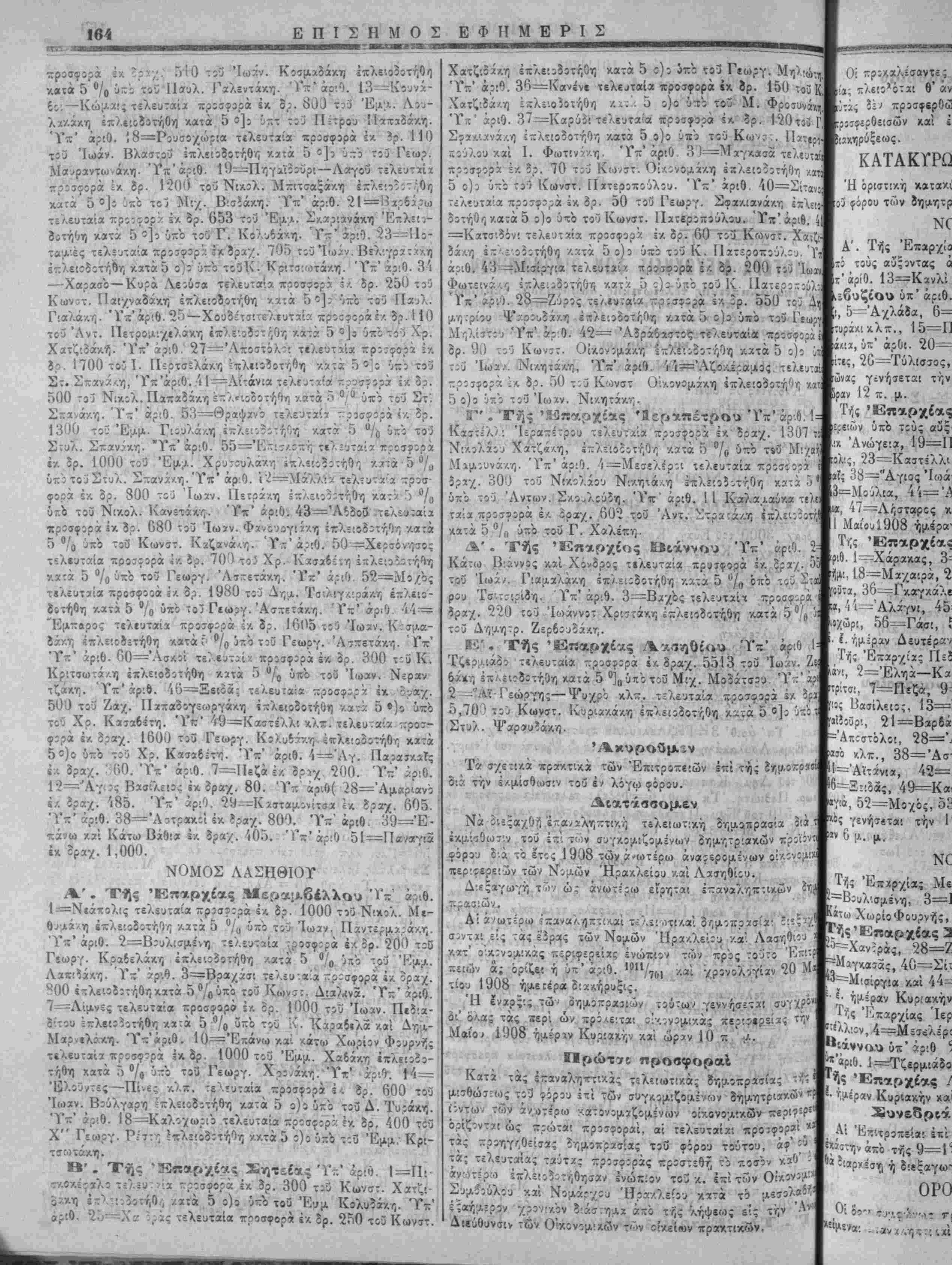 των φόρον, διά τώ ϊτος 1908, των κατωτέρω κατονο·