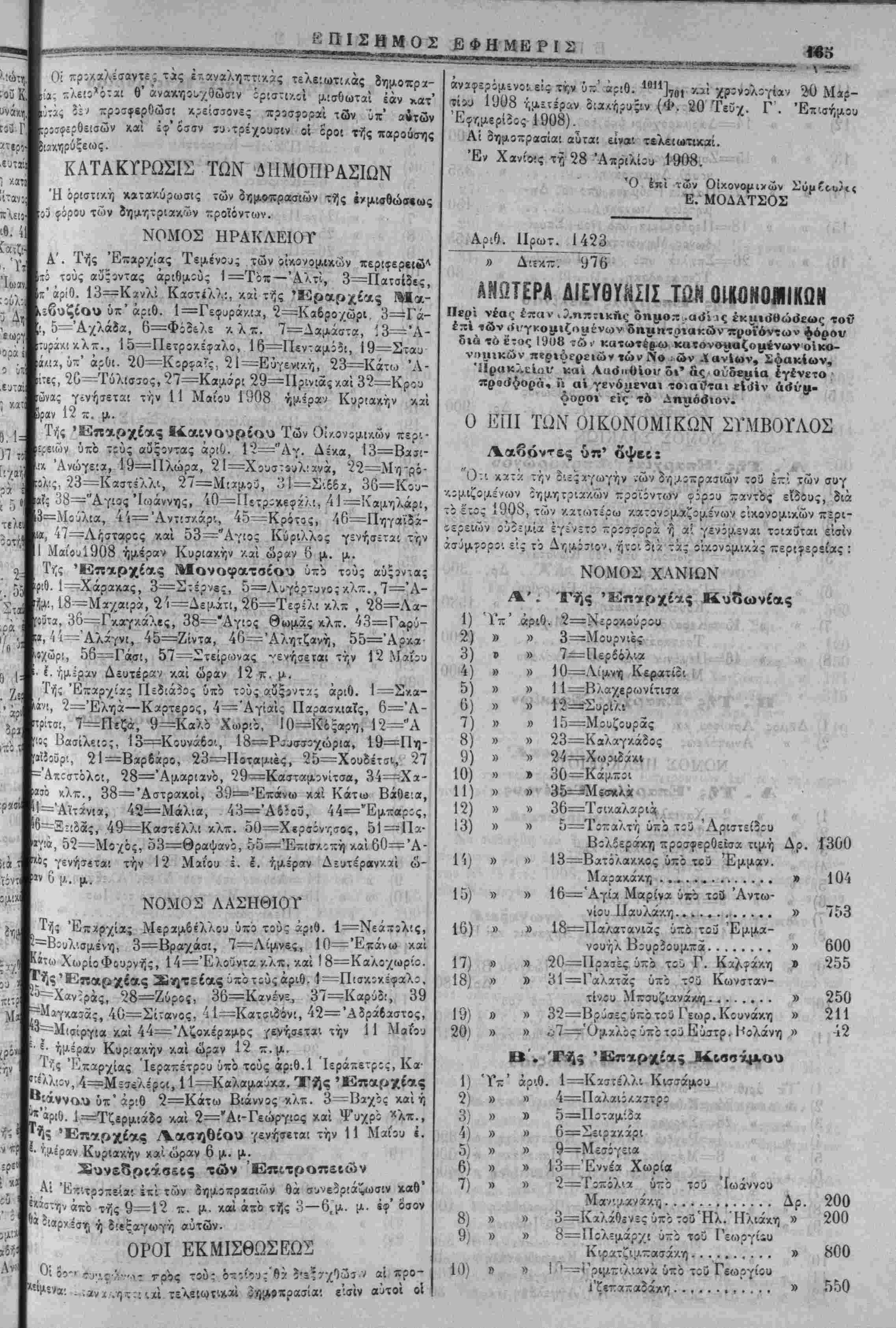 τανιας, 20=ΙΙ?:<σες. 31—Γαλατάί, 3?=Βρύσ'ς 37=Ό;.-.α- λός γενησεται την 13 Μαίου =. Ι. ημέραν Τρίτην καί ώραν 12 τ:, μ. Β'. Τής Επαρχίας Κισαάμου των ζ··/.ζ>ζ>ι:·'<>< τερΐφερειών ί>τ." αριθ. 1—=Κασ·τέλλι Κιττά^βυ, /ί = Παλη:>ια