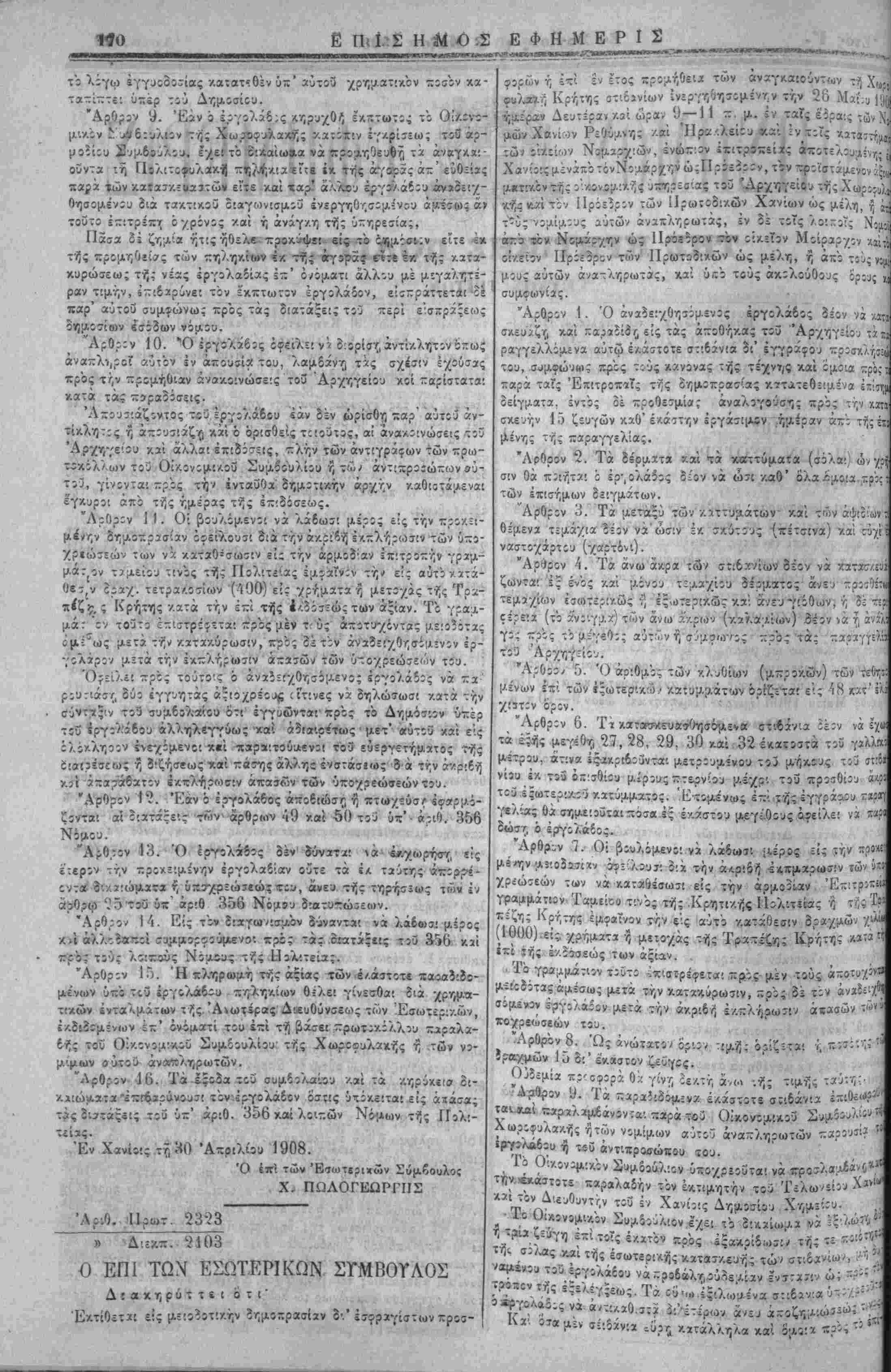 Αριθ. Ποωτ. 2322