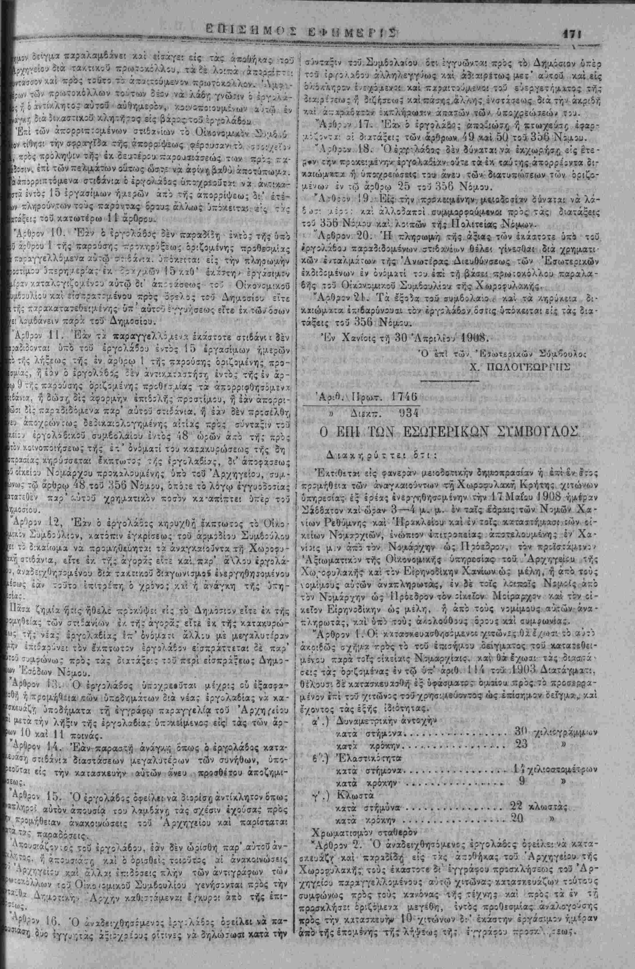 (ΡϊΦ(] ανυπερθέτως μέχρι τής 15 Αϋγούστου 1908.