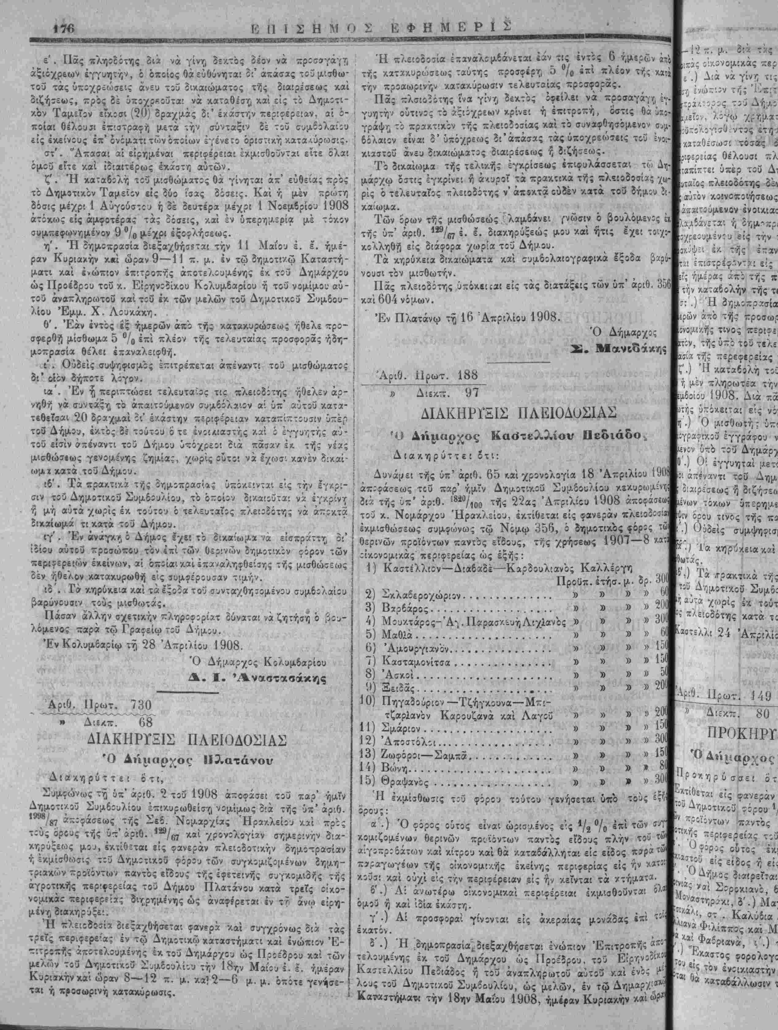 'ί'-' αριθ. 6—Έπά< ηί· 215 τού Χ. Ψο Εμμ. Νικολιϊάκη. ΐ'-' αριθ. 15=Άγι 'Ρ* έκ δραχ. 1190 τού '·* 5 ο]; υπό τοϋ Ν. Ι" άί'.Β. 18=Κούφ [Ζ· 500 τού Παυλ. Π, = 133 Ιων. Παπαδάκη V αριθ. 14—Ρούο ^ «2 Πέτρου Ψυγ Ι*) Σηιι. Τα «ορτοχάλιΐ. μανταρίνια χ»ί /ίτρα Θ4 5 το!{ ο.ο μίχρι τής (> Μβ{ου 1906 κΐΐ »πό της Ο Μαίου