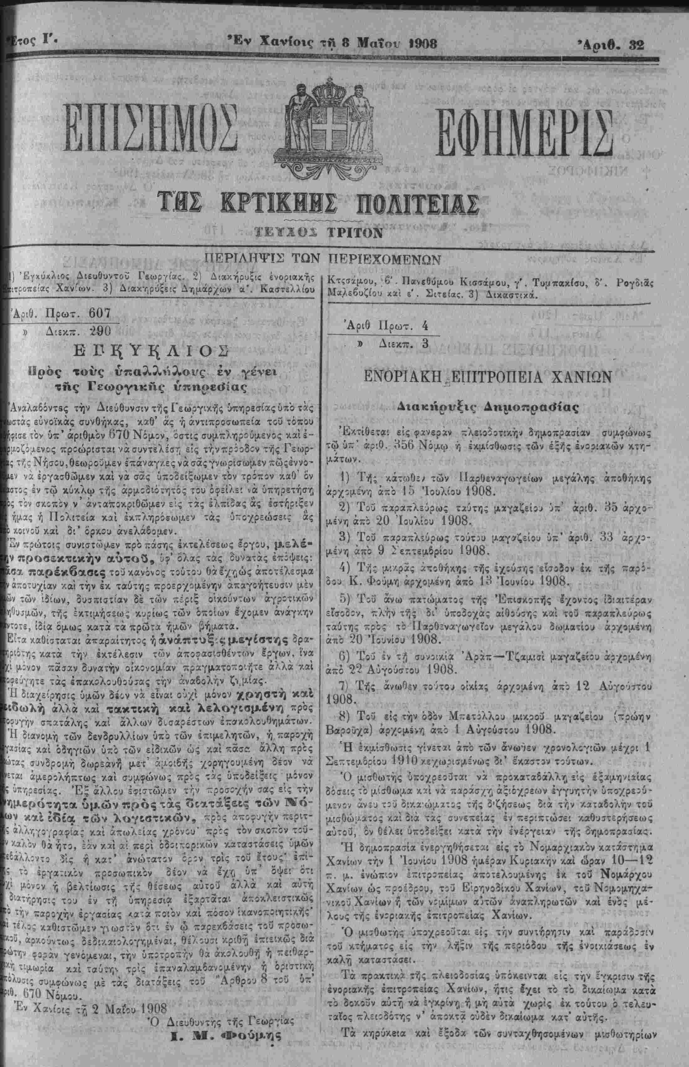 Δημοσιευθήτω τό παρόν έν τή Έπισήμω Εφημερίδι τής Κρη-