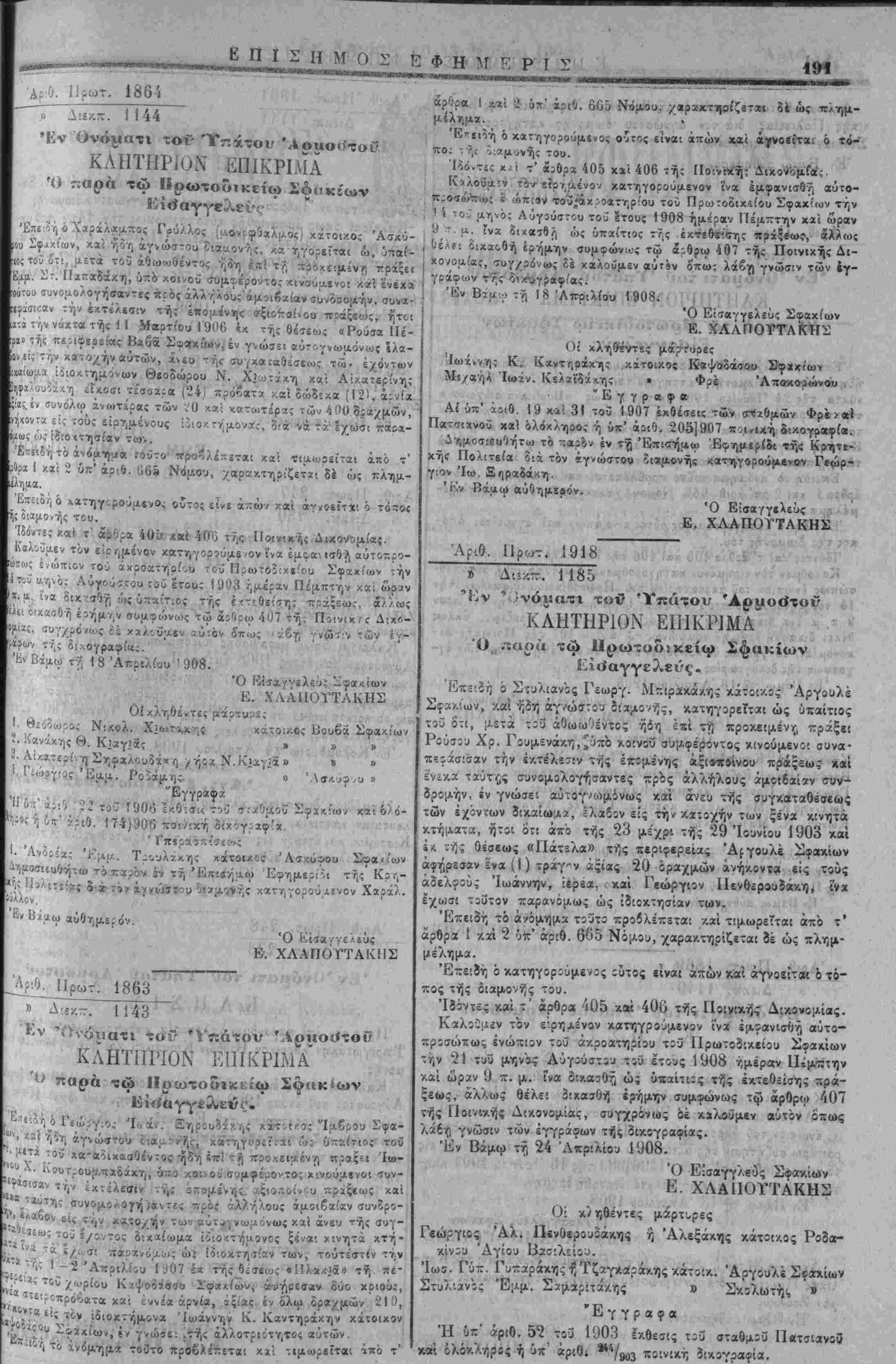 Δ-^μοίΕευΟήτω τίι παρβν έν τί; Έπισήμω Έφτ,μερίδί τή< Κρητ^ χής Πολίτεία διά τόν «γνώστοο ίιαμονής χατηγορούμβνο-ν Γεώρ¬ γιον Ιω. Ξηραδάχη. 'Κν Βάμαι αύδημεβόν. Ό Εισαγγελεύς ε. χλαποττακησ: Αριθ. Ιΐρωτ. 1918 » Δΐϊκ.τ. 1185 Έν ' ;νό|ϊα.τα τοί? Ύπάτον Άρηοότον ΚΑΗΤΗΡ1ΟΝ ΕΙΙ1ΚΡ1ΜΑ Ό .ίίΐοά τω 11{>ω-ςοοικείο) Σφακίων