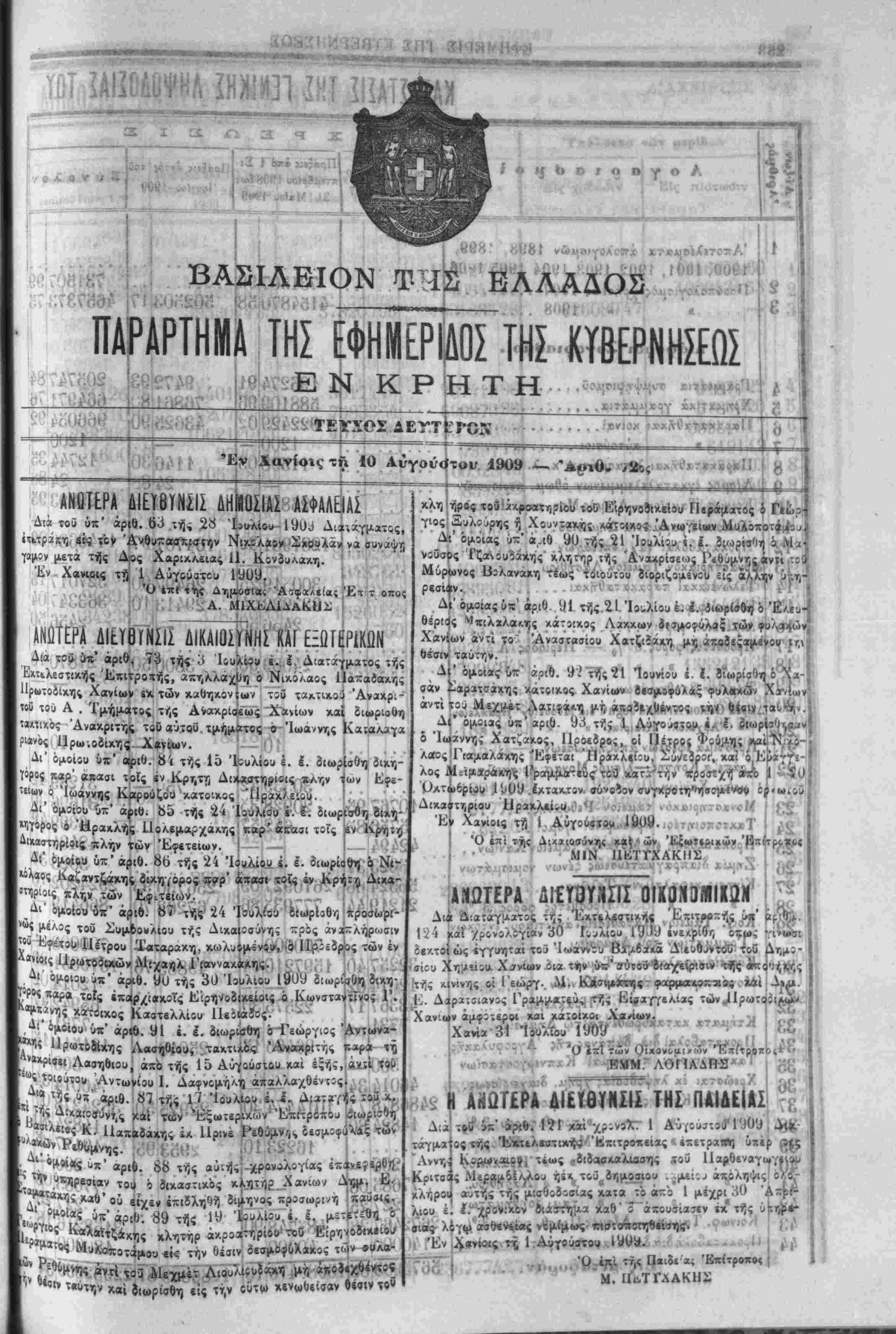 Έν Χανίοις τή 1 ΑΊγούατου 1·909.