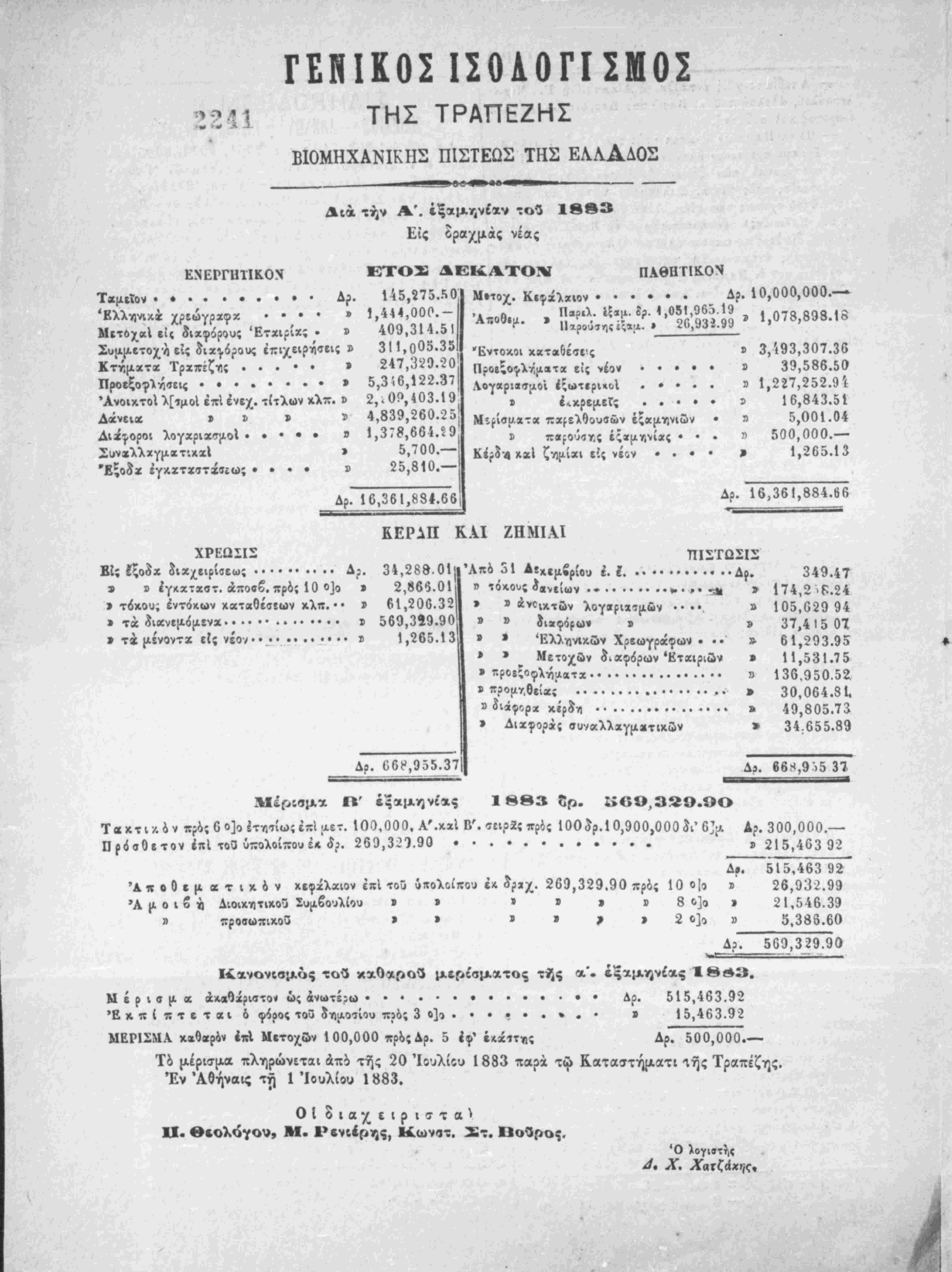 Έν Αθήναις τή 1 Ιουλίου 1883.