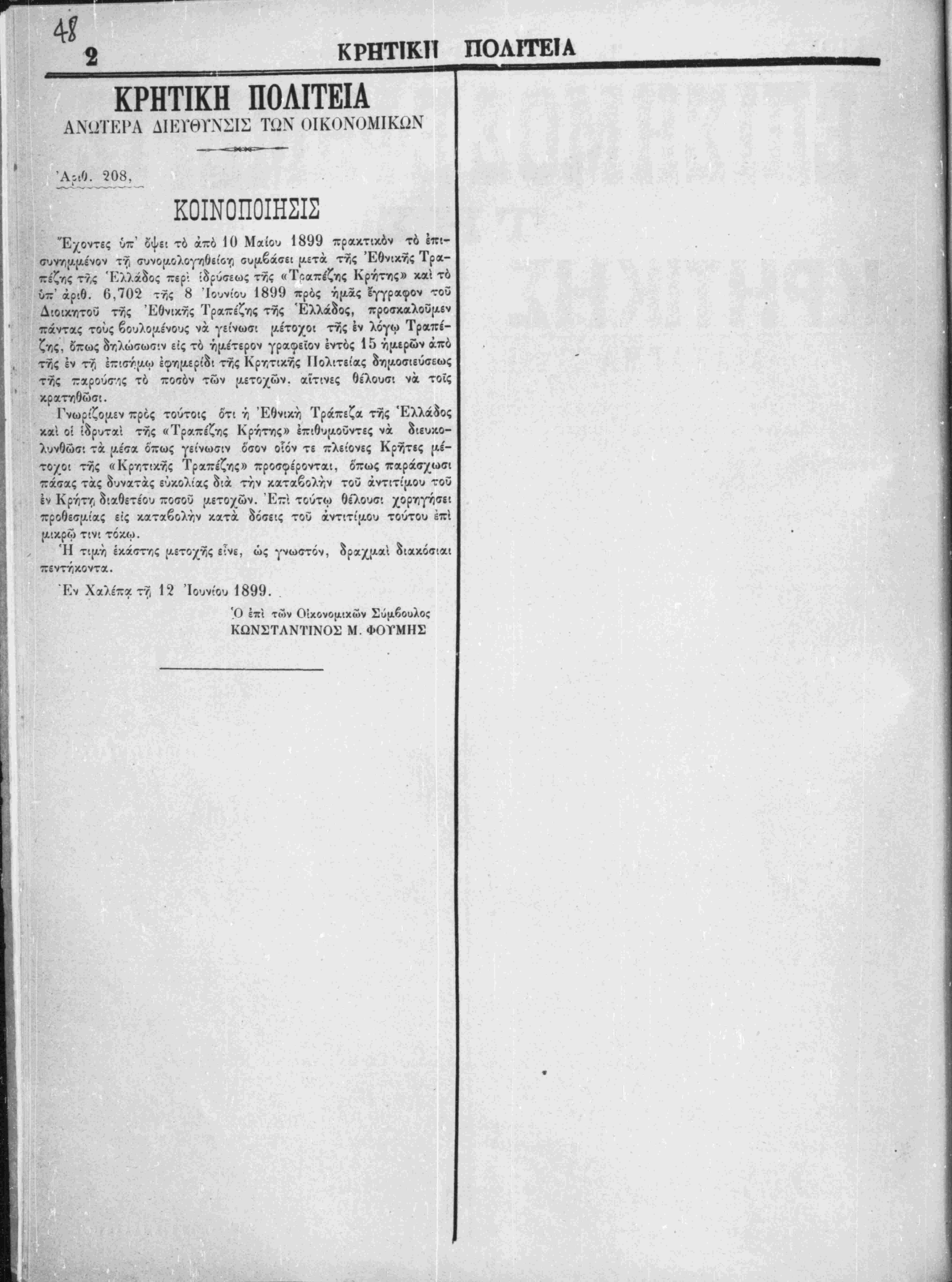 Έν Χανίοις τη 8 Ίουνίου 1899 .