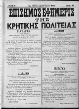 της έν ττ, έπισημω εφημερίδι της Κρητικης ΙΙολιτειας δημοσιεύσεως
