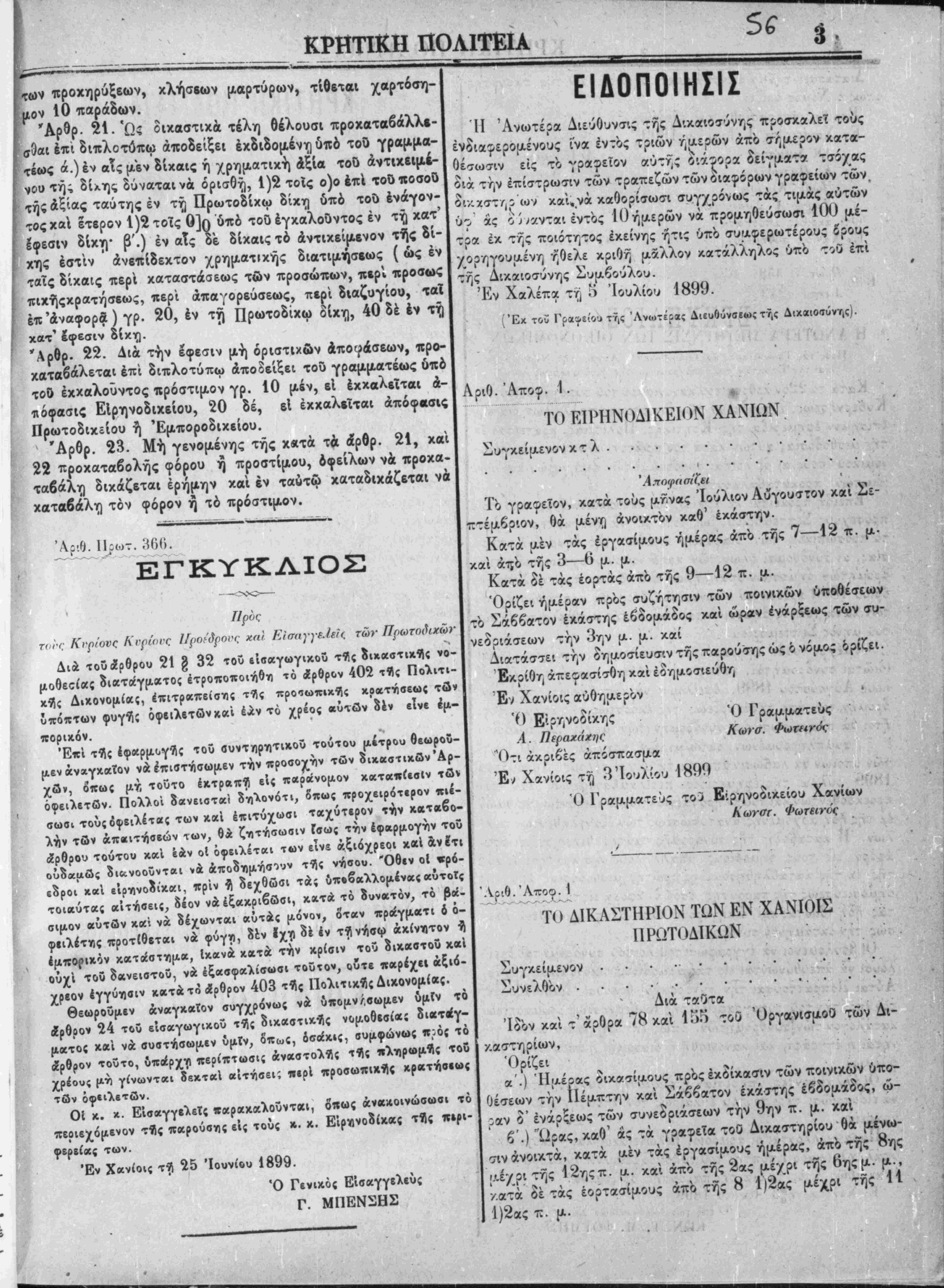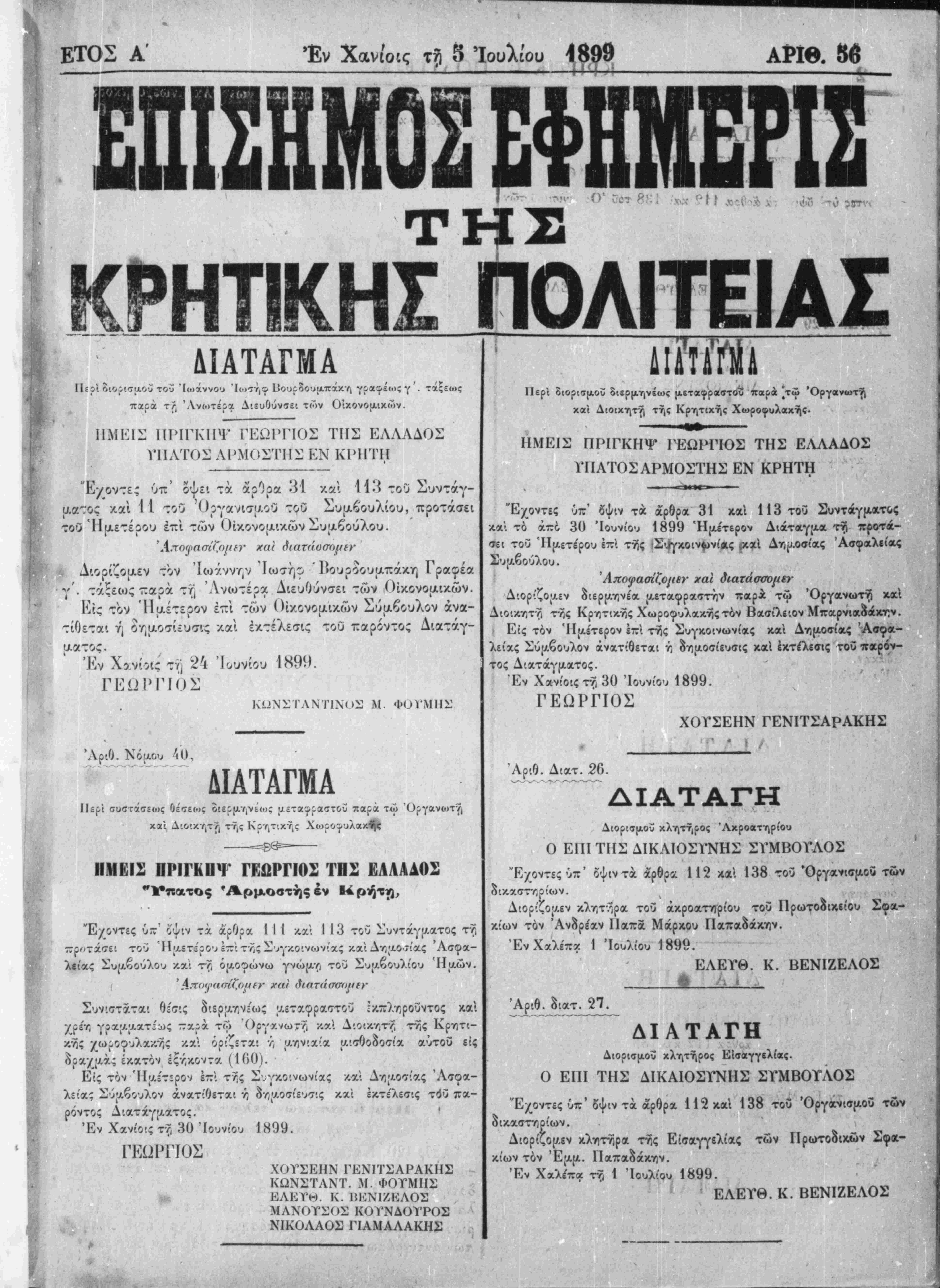 Έν Χανίοις τή 1 Ιουλίου 1899.