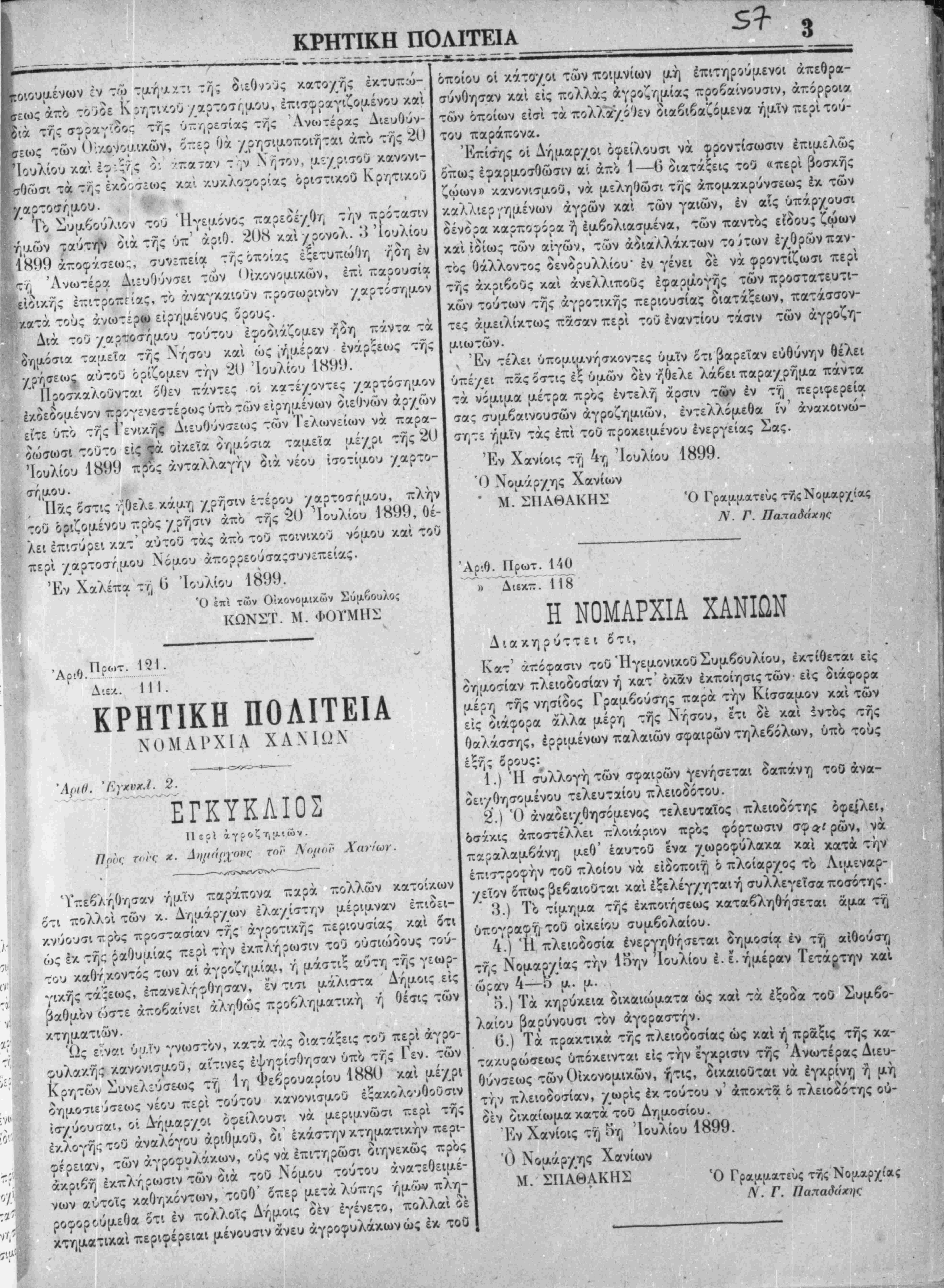 * -,< Ι Ο Νοαάρ/ης Χανίων ^ς όστις ιί^^ ^?*^*£* ' Μ· ΣΠΑΘΑΚΗΣ «ρΐ 7«?τοσΓαου Χό|«υ 4τ:ο?ρ.ού«ς«ν3«ει«ς. ΈνΧαλέπατ^Ο Ιουλίου 1899. Ό επί των Οίκ&νομιχων ΣυμΜ>υΛο;