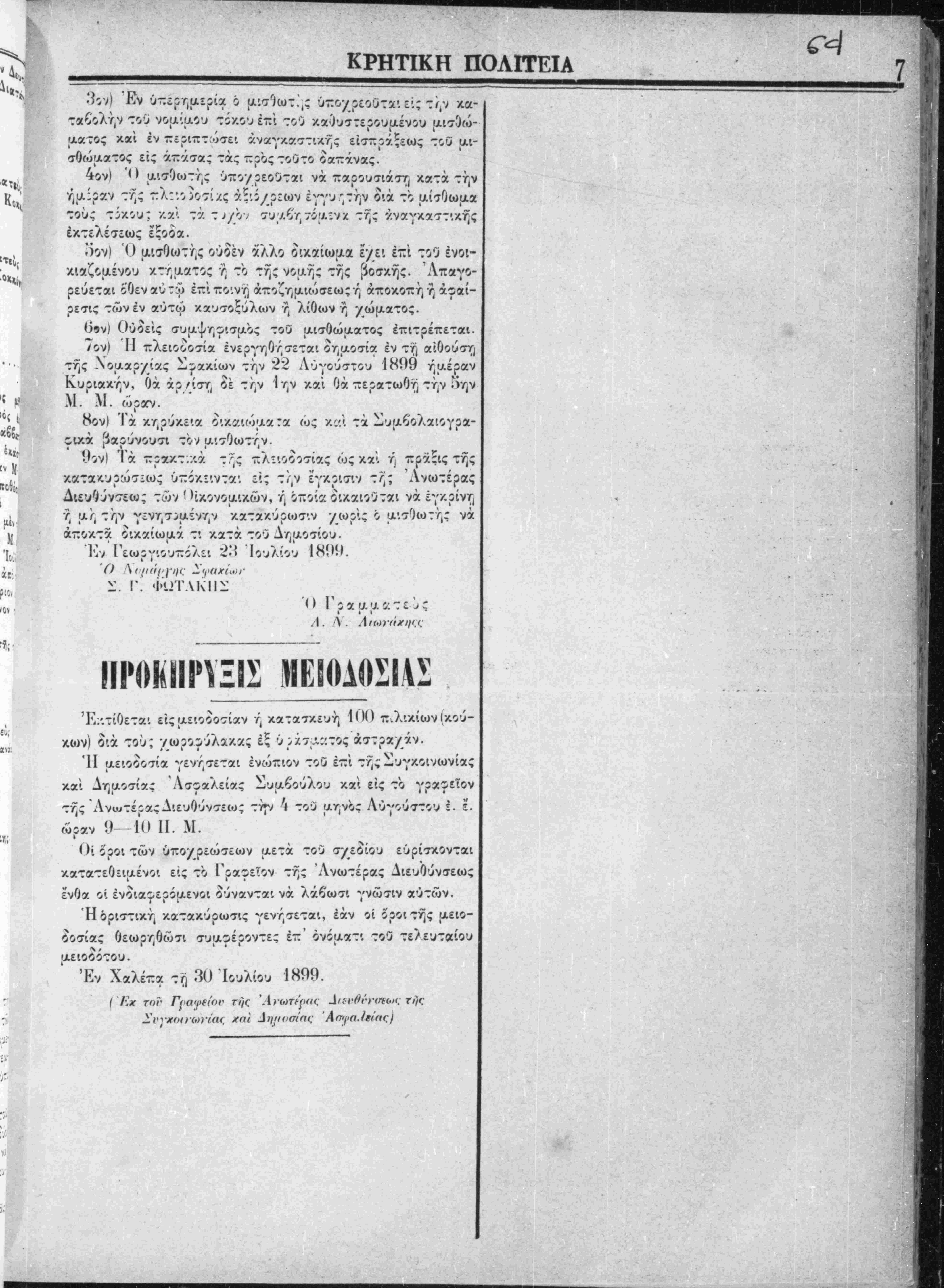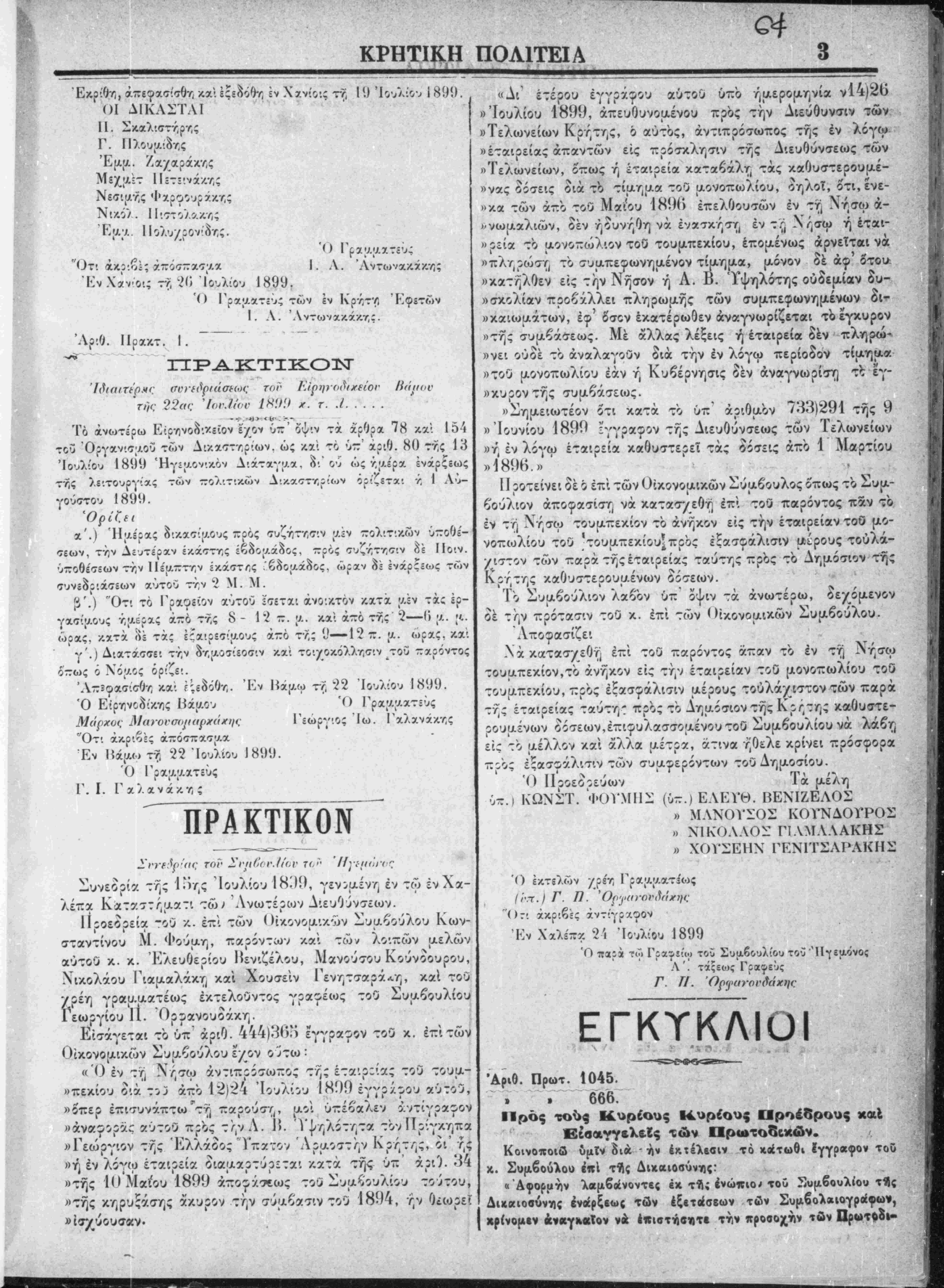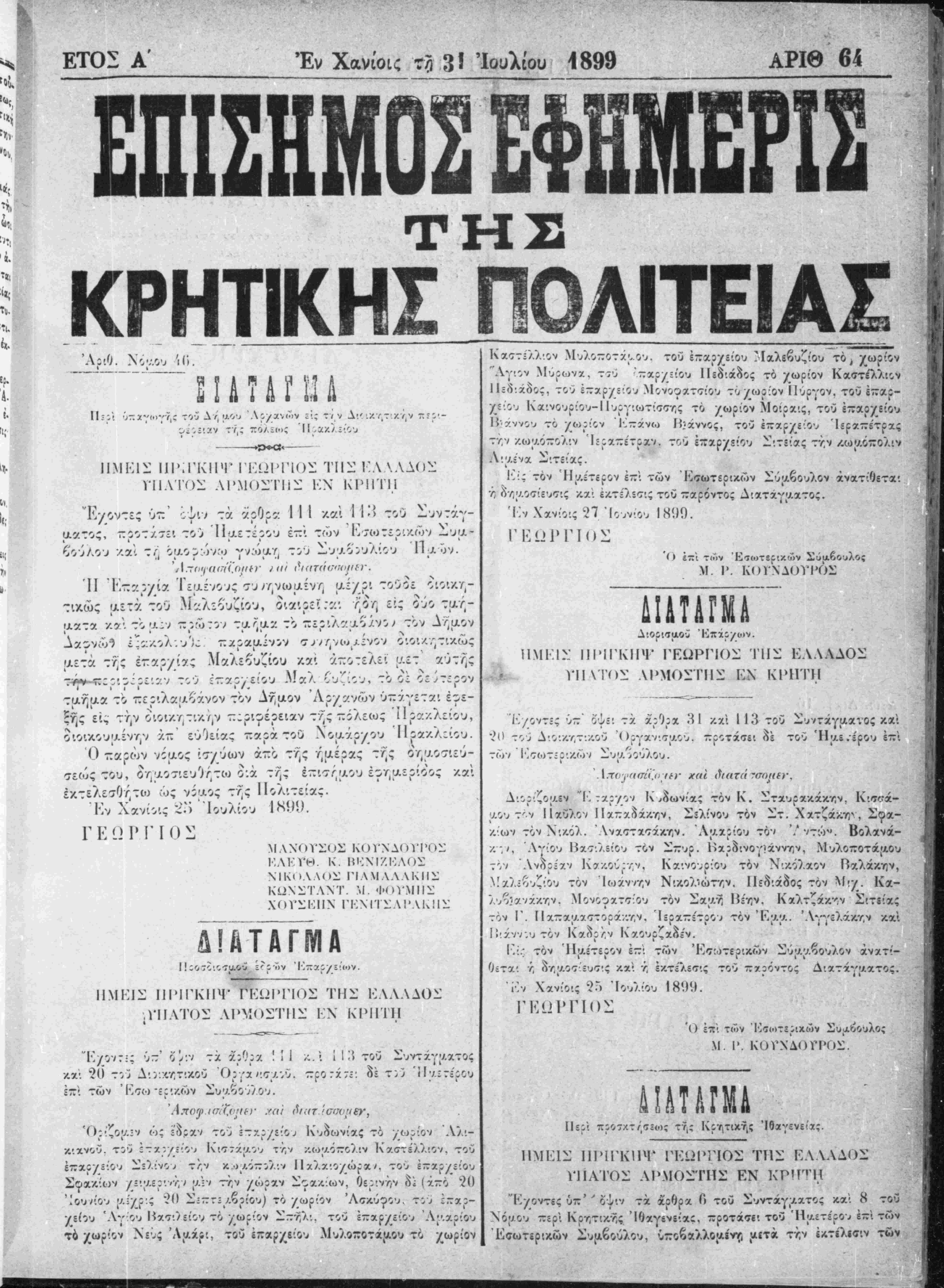 ;Έν Χανίοις τη 20 Ιουλίου 1899.
