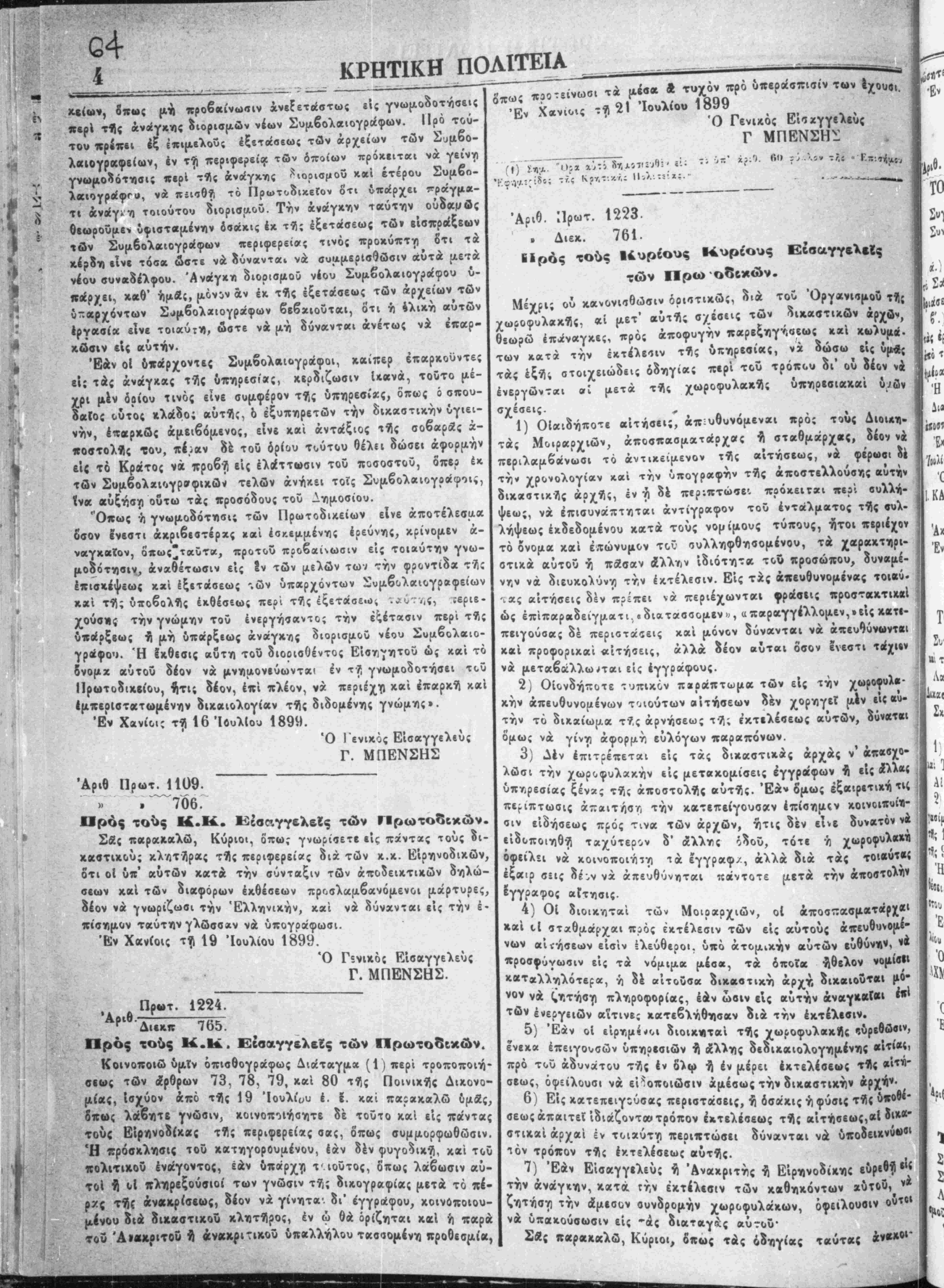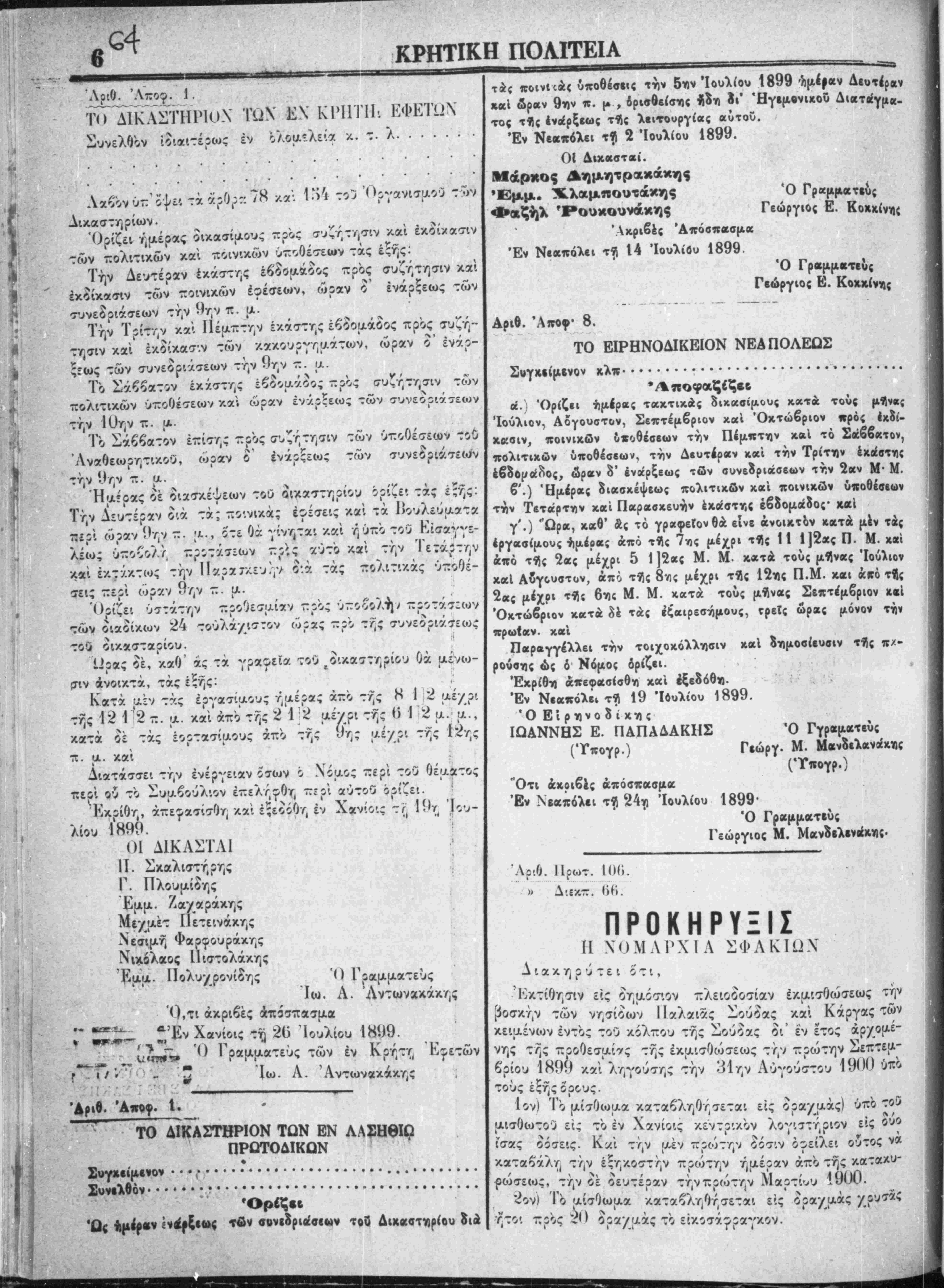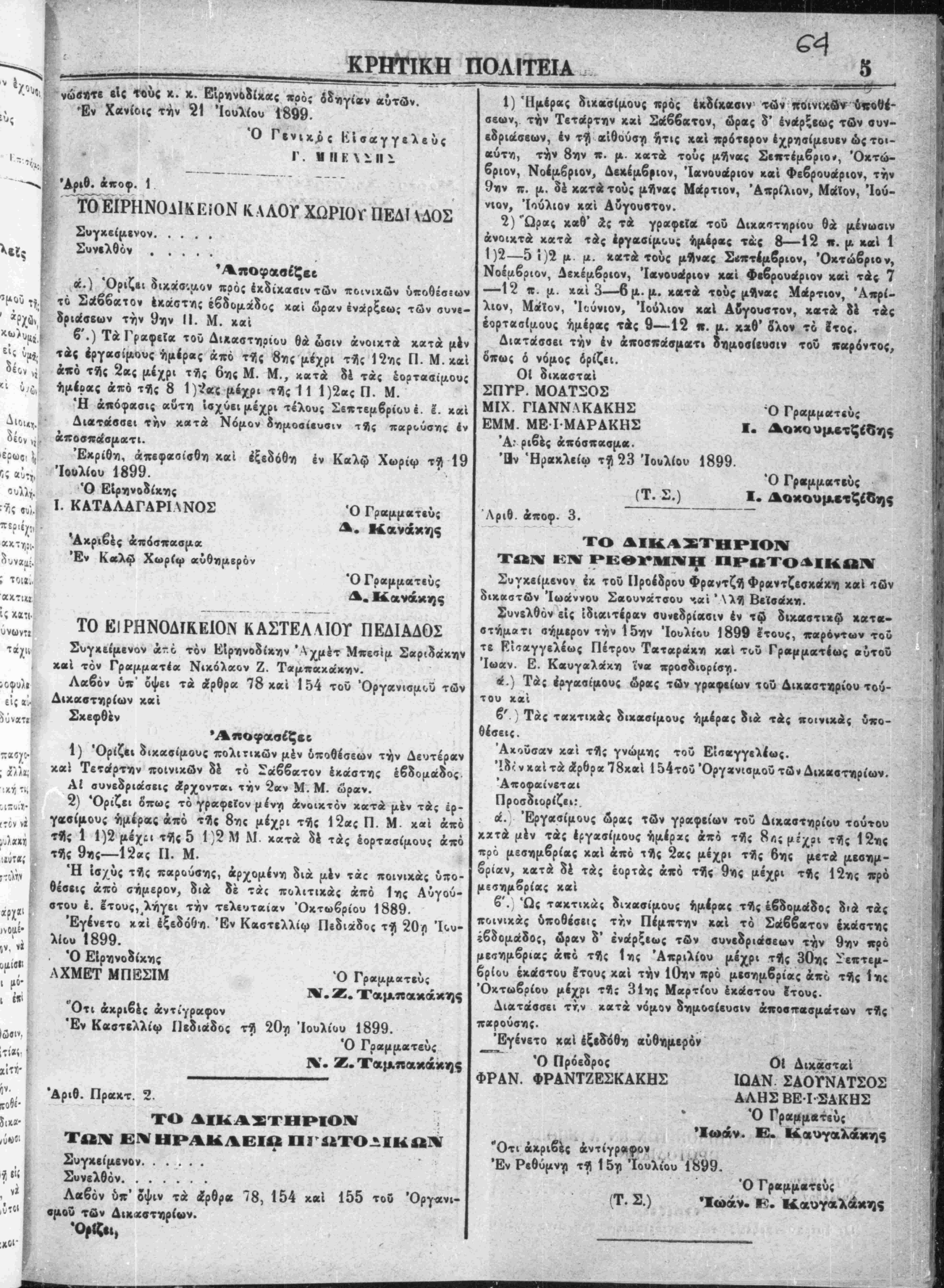 ;Έν Χανίοις τη 20 Ιουλίου 1899.