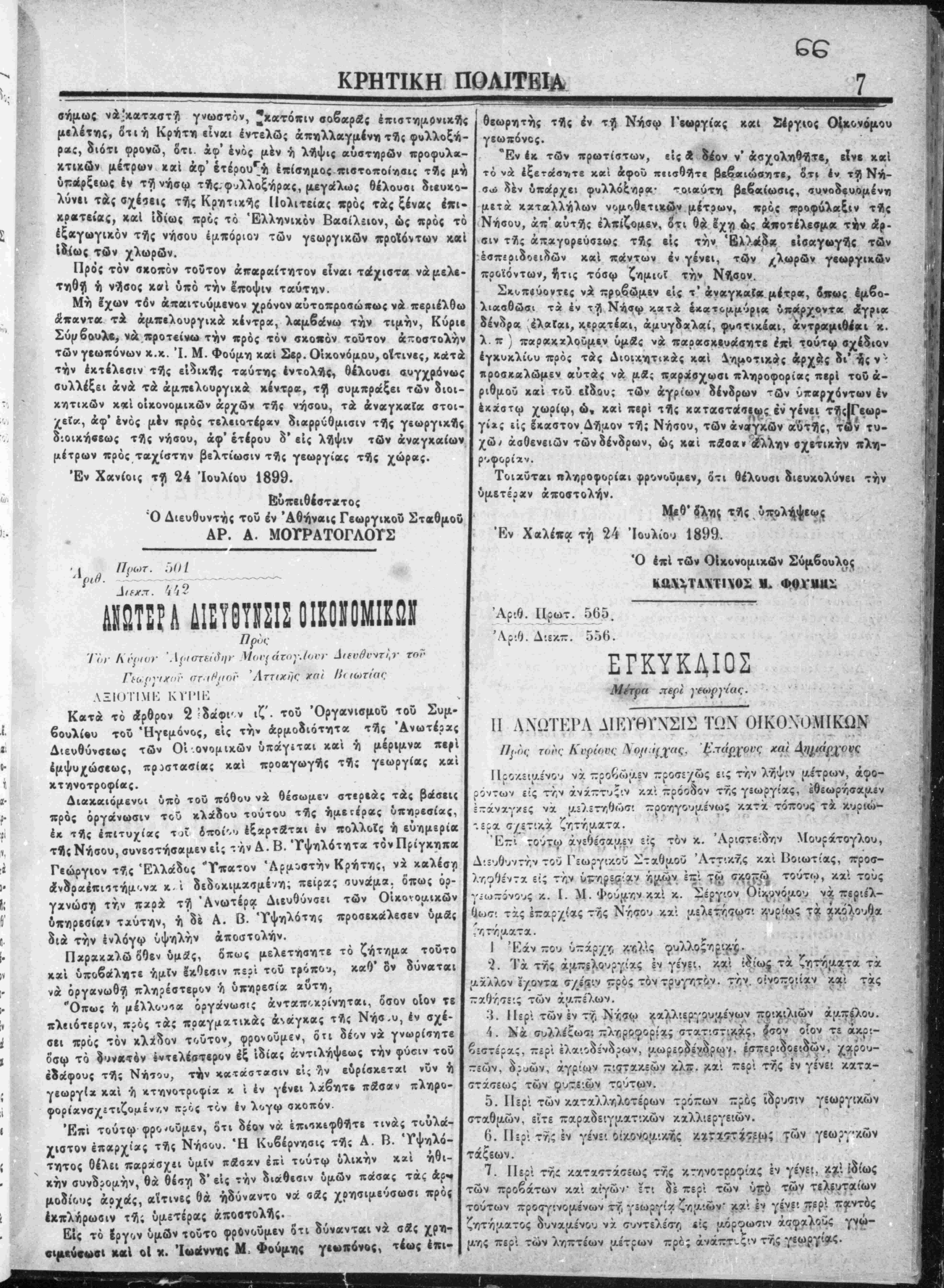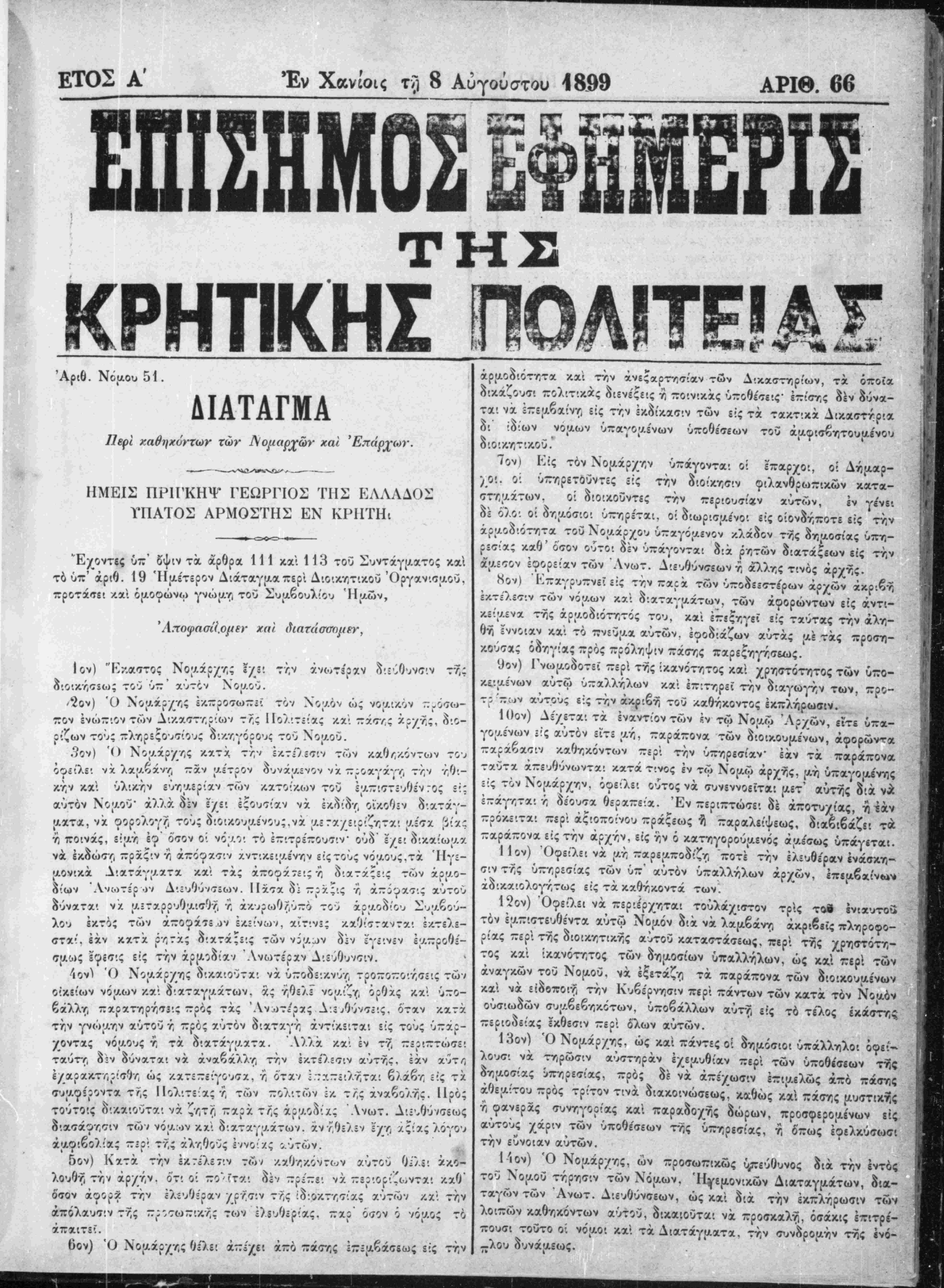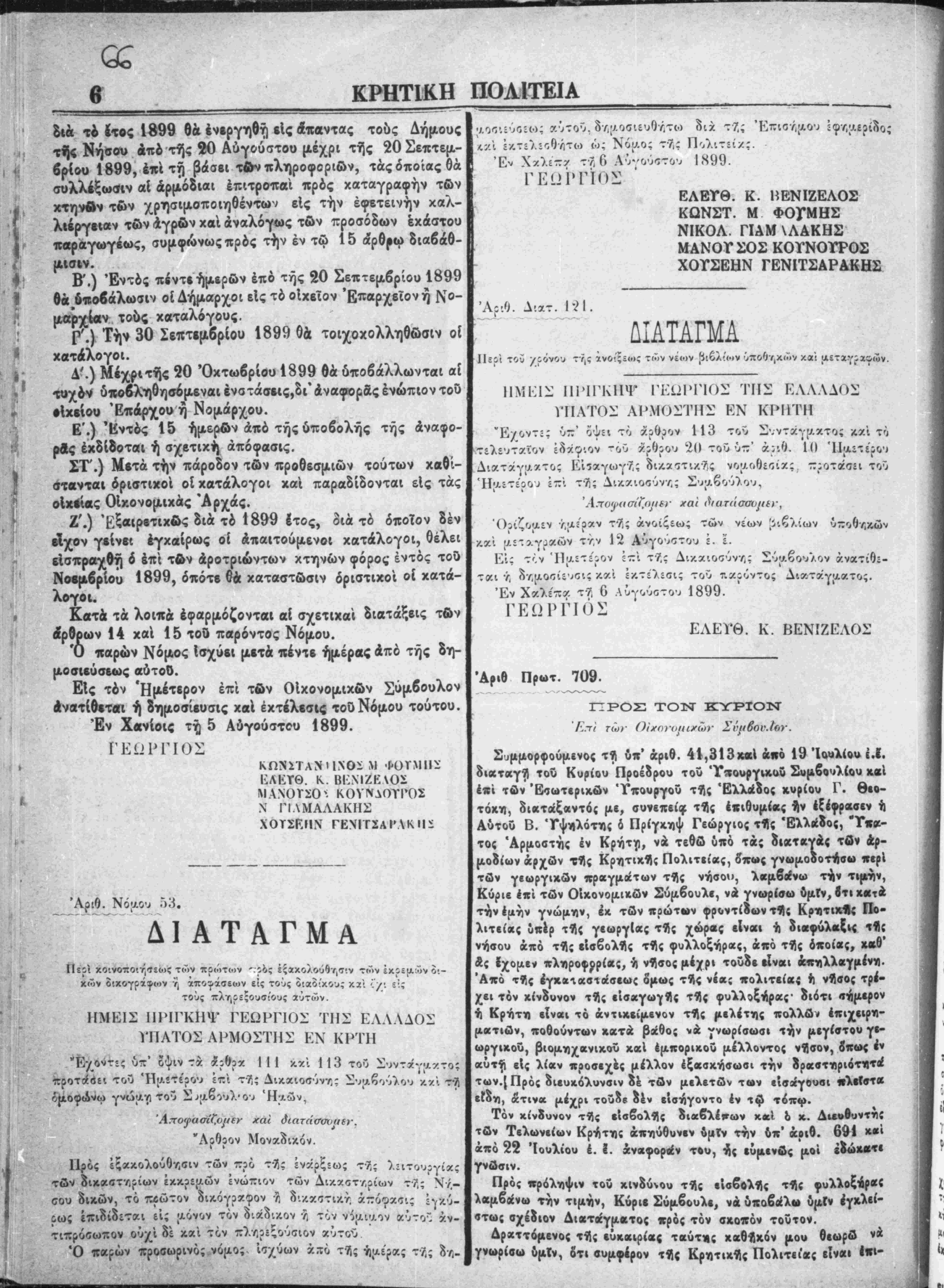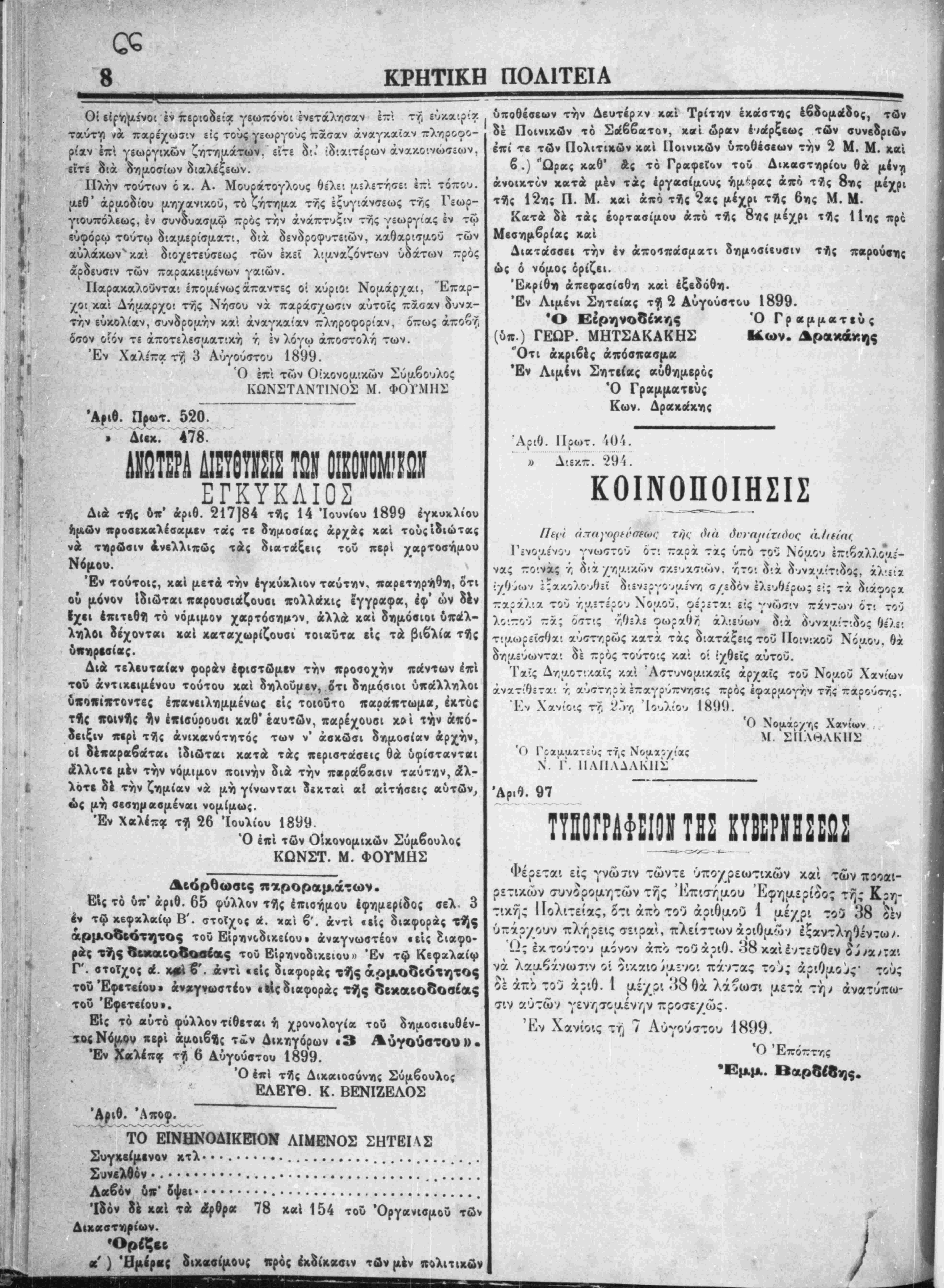 Έν Χανίοις τή 7 Λύγούστου 1899.