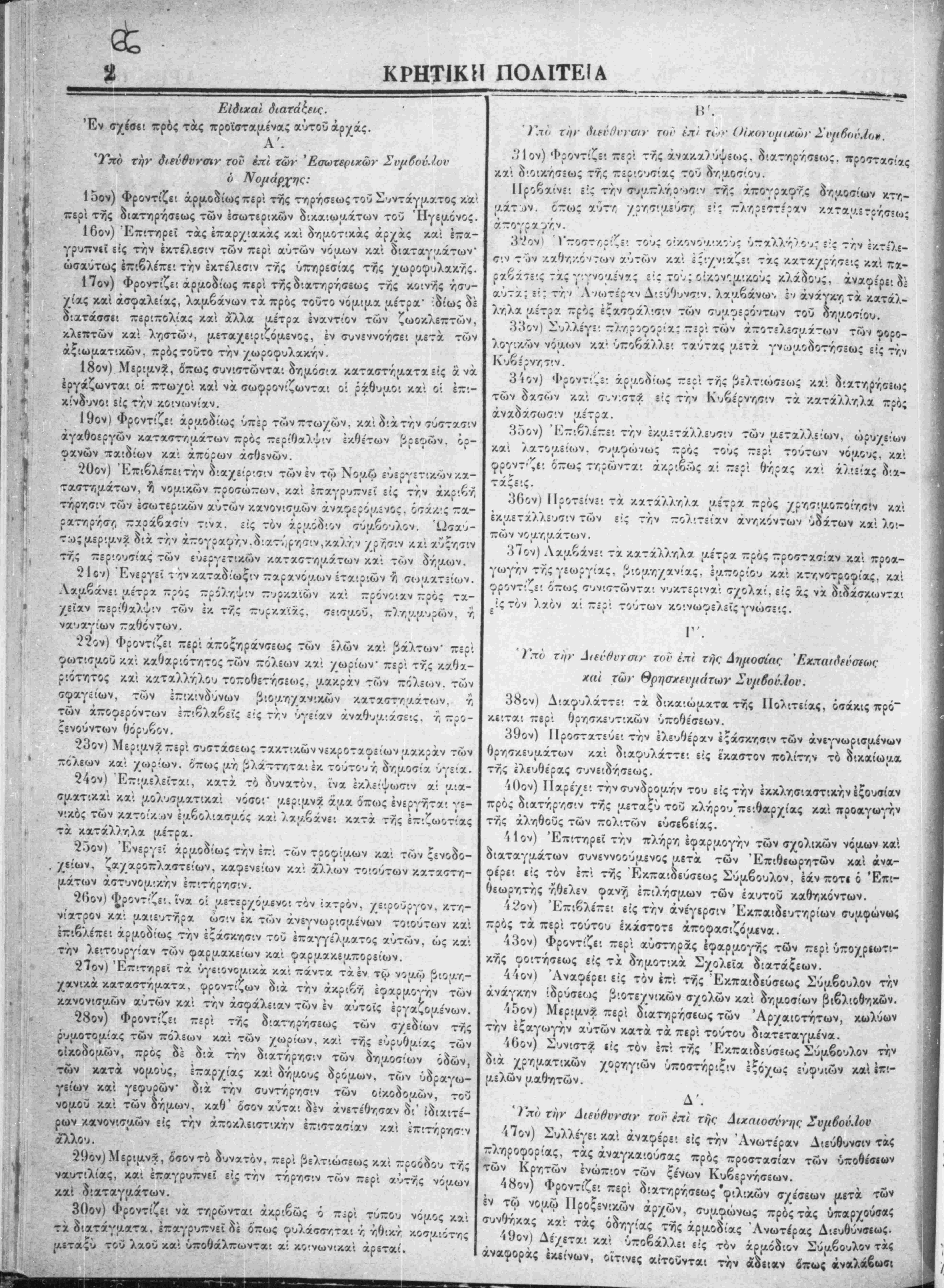Π$ρί καθηχύντων των Νομαρχίαν καί * Επόρχων.