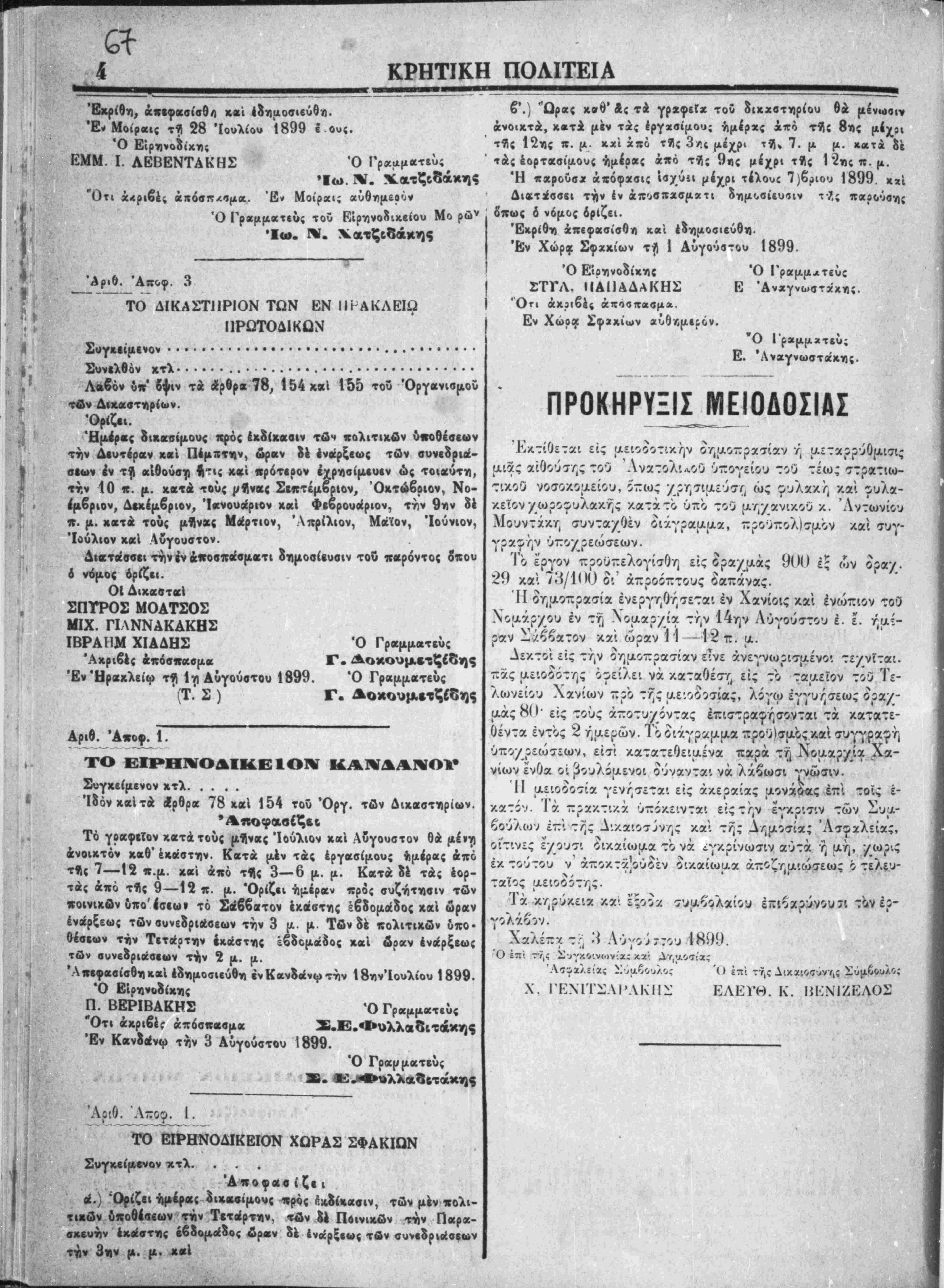 Εκρίθη, ά**<ρασίσθ/) κ«Ί μ Έν Μοίραις τ? 28 Ιουλίου 1899 ι-Ούς. Ό Είρη»ο-ίχ*.ς ¥Α ΕΜΜ. Ι. ΑΕΒΕΝΤΔΚΗΣ Ό Γ ^ > ·1<α. IV. Οτι ά^ριβές ΛπάνπΑημΛ. Έ* Μοίραις αυθημερόν ' ' > > * Ό Γραμματεύς τού Είρηνοδιχείου Μο ρών
