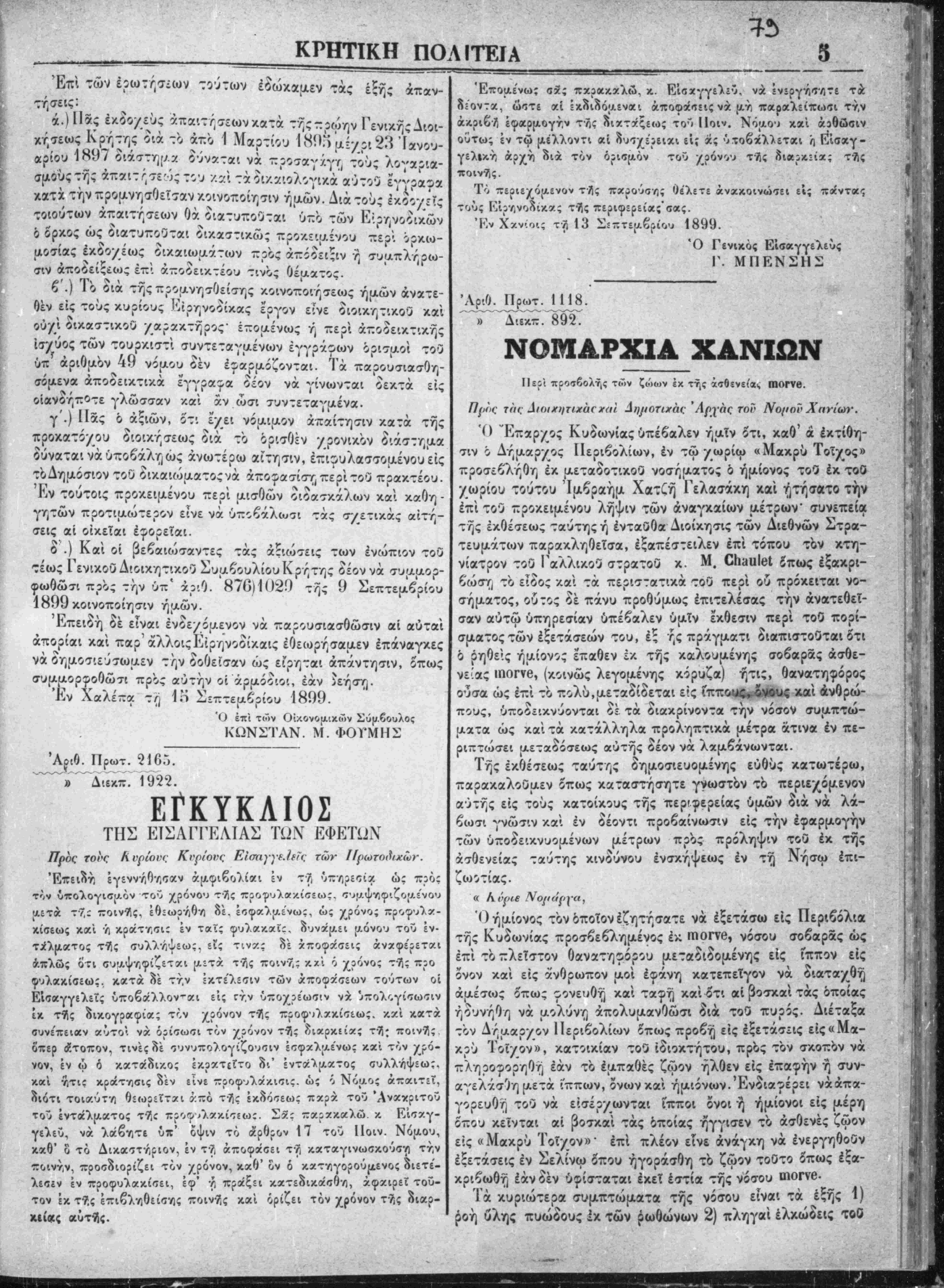 μου άρθρα]1 κοι 5, επισήμου εφημερίδος Κρήτας αρ'.Οΐο;