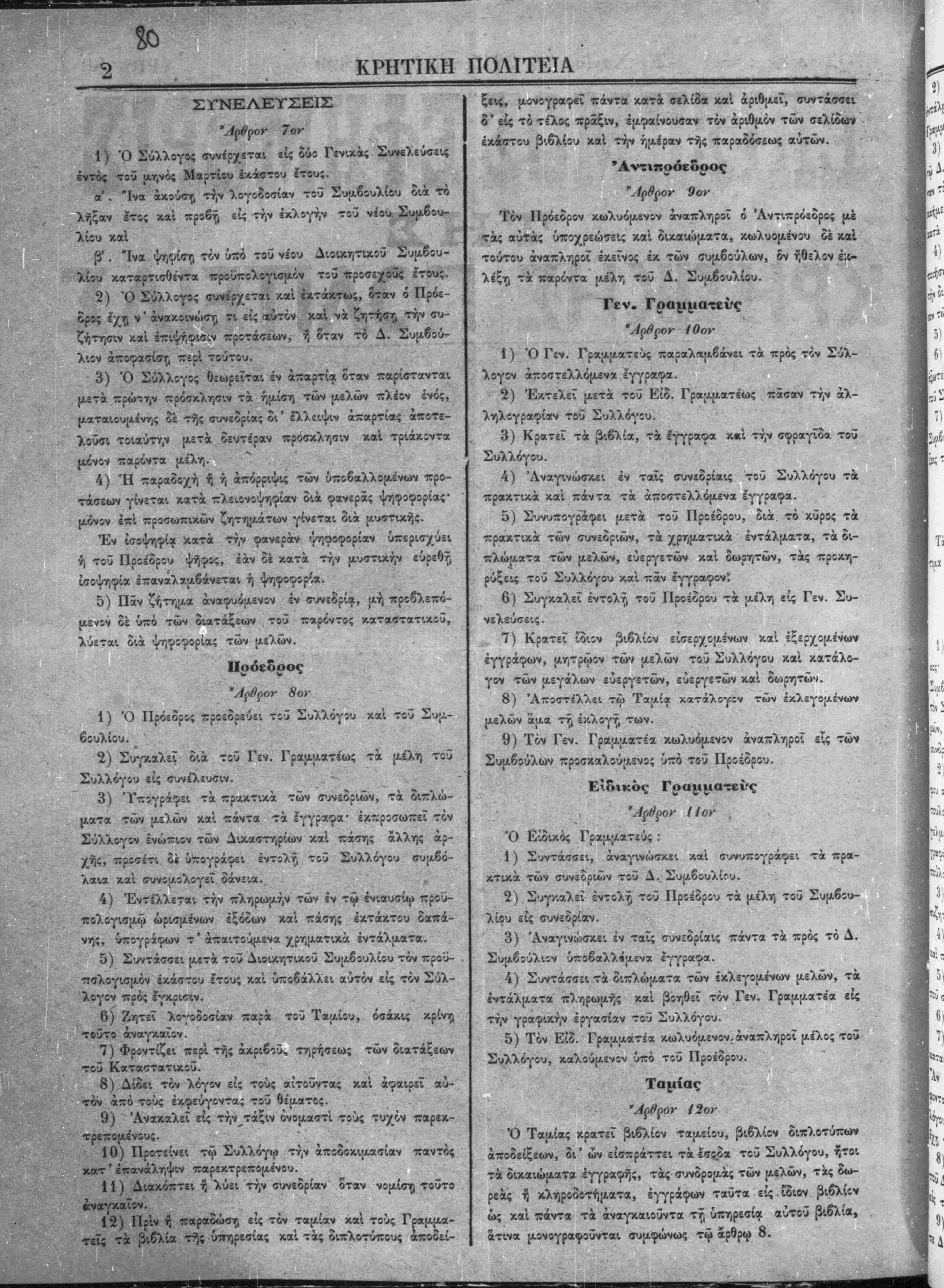 . Συνιστϊται έν Ήβαχλείψ Κρήτης Συλλογος υπό την