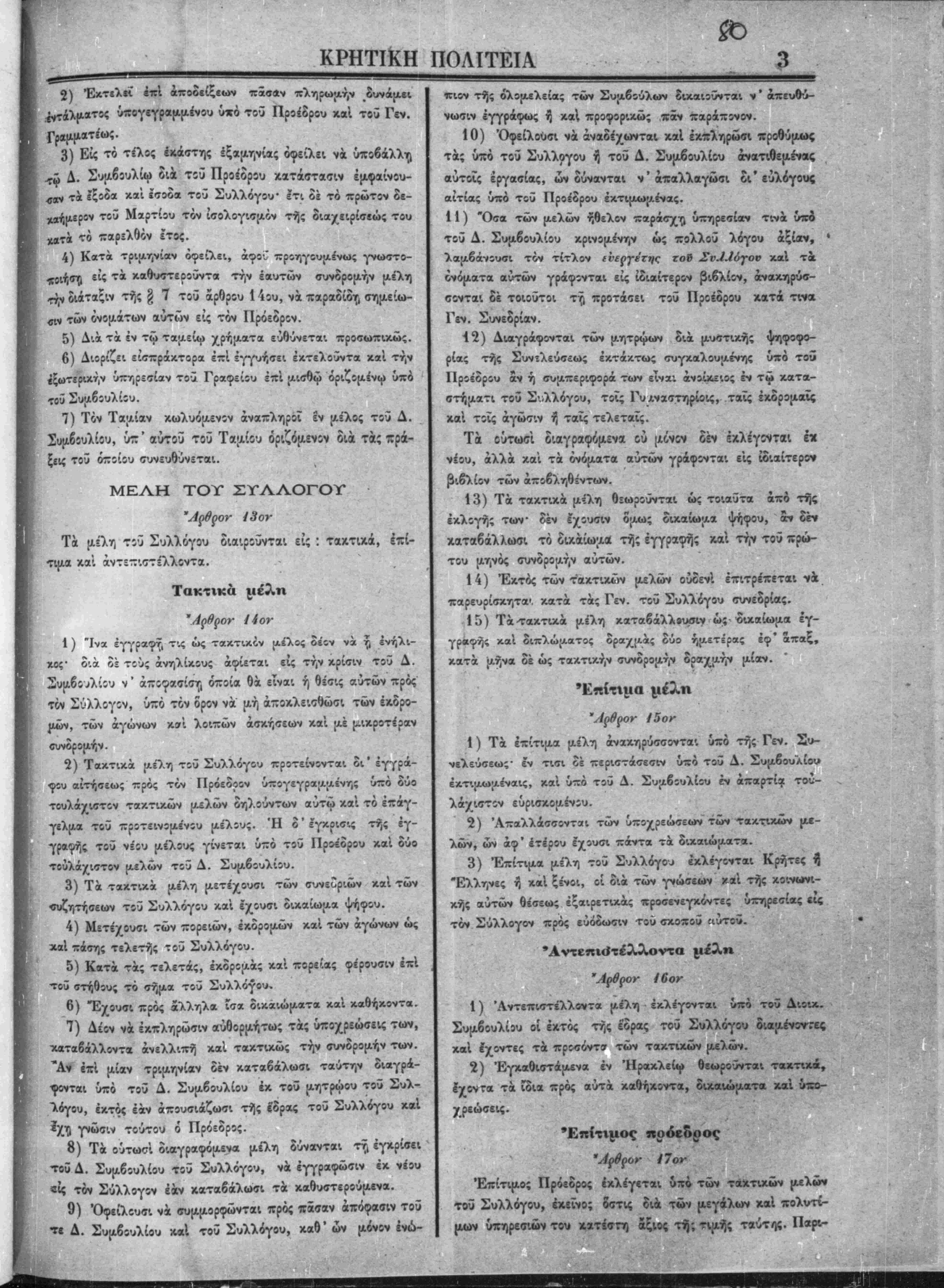 3) Έπίτιμα μέλη τοΰ Συλλόγου ίκλέγονται Κρήτες