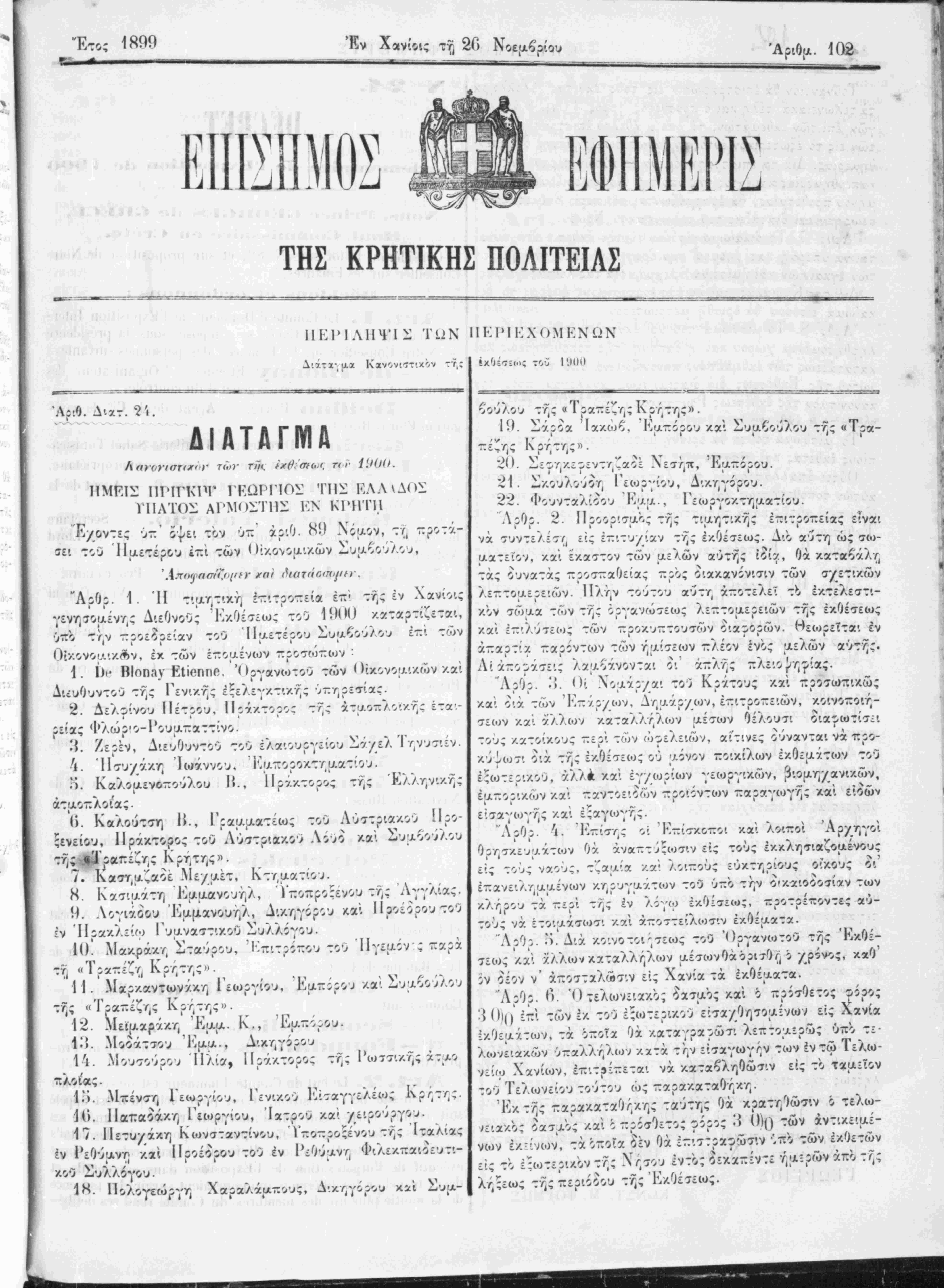 ι Ι * < Ι έςωτερικου, αλ/Α και έγ/ιορίιον γεωργικών, βιο^αη/ανικών, έα~ορ».κών και ~αντοειοών -ροιόντων τταραγίογης καί είδών είσαγιογ^ς και έςαγωγης. Λ Κττίστ- οί Κ-ίσκ&ττο». και λο^ζοι ι. Κττίστ- Η. Κασιαάτη Κααανουήλ, .'ιτο-ροςενου της Αγγλίας. 9. Λογιάδου Εμμανουήλ, Δικηγόρου και ΙΙροίορουτον ίν Ηρακλείω 1 υαναστικου Συλλόγου. Κ). Μακράκη Σταύρου, Κπτρόπου τού ΊΙγεμόνς ~αρχ Ί^ * *^ ιτ * τωνά%'Λ Γει·>ογίου, Εαττίοου κα·. -