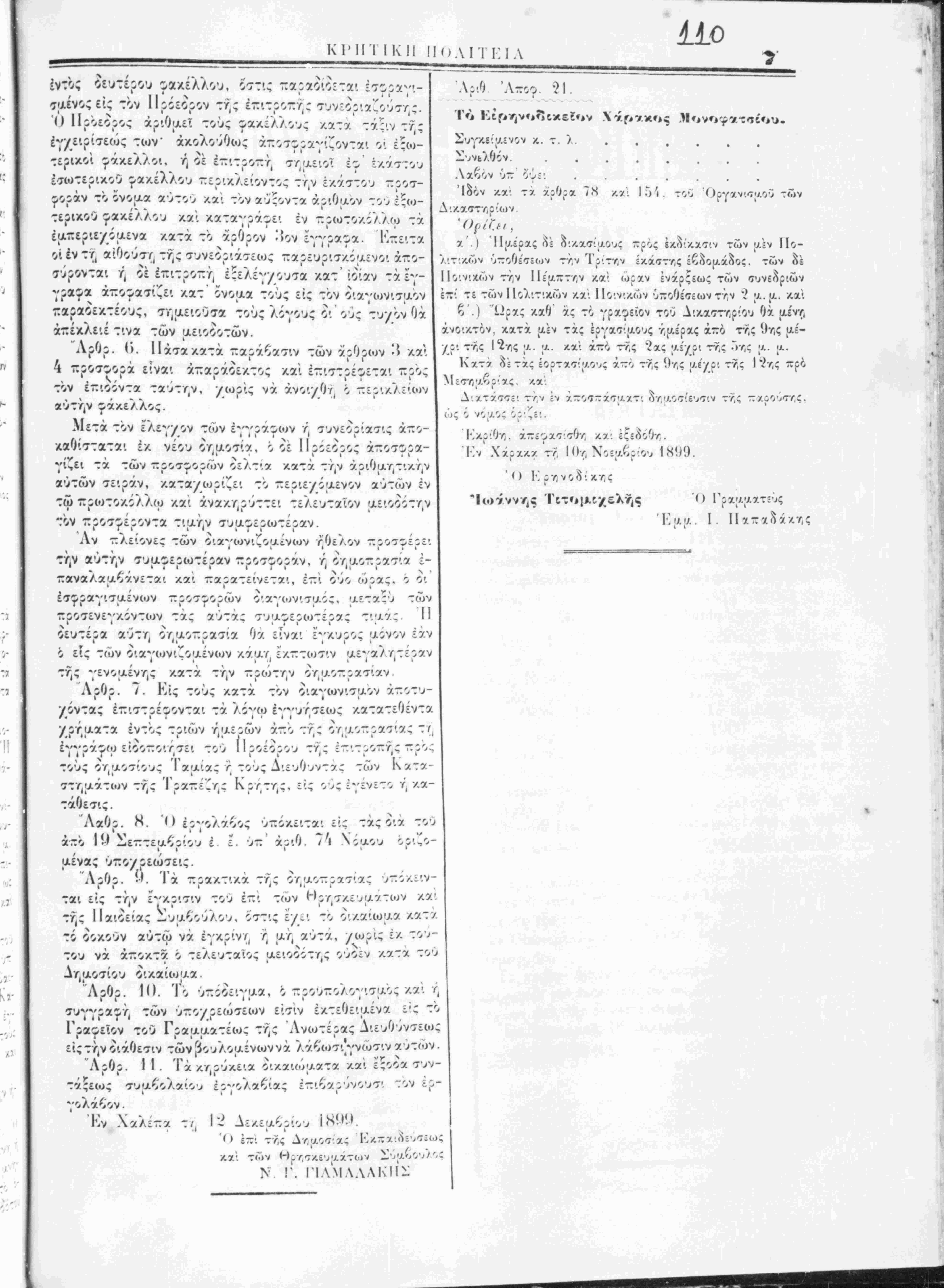 Ι ι ι · <ι ι ΰ ί ο ο» ^ ττα^ατείνετα'., εττι οΰο οί^α:, ί ι ζαναλααζάνετα», < ετο^α^Ίταενίυν ττ^οτ^ο^ων ο·α·"ο>ν'.ταο:, αεταΐυ τ<υν Τ Ι ί ι Ι<» ι * ■ ζοοσενε^'κόντων τα: αΰτα: τυα^εοωτεοα: τ··Λ7.:. ι! Ι Ι · « 4 » » οευτεοα αυτγ. ο/αο~:α7·-α Οα είναι ε^'κυοο: 'χονον ί*/ν ό εί: των Ο'.α^' Ι α/Υ.τε Ι < Ι τή: *'ενοαένγ.: κατά τγ.ν ~ς(οτγν ο/αο-οατ'.αν ε ~ ί 4 ί · ί » Ι Ι ι ι Λδθο. 7. Κίς τού: κατά τον οιανωνιταον ατ:οτυ- νοντα: ί~ΐ7τοέοονται τα λί^'(ο ε-^'υττεω: κατατεθεντα /« ^ Ι ι ι ι Ι Ι · · νοταατα έντο: τοιών γ/χεοών άττο τή: ΟΥ'χοττοασια: τ/ /«Ι ί Ι ι * ι » Ι Ι . Ι ε^Όα^ίο ειοοποιττει τού 11^οεο:ου τ/: Ξ~·.Τνθτ:γ: ..^ο.. Α ι ι 7 · } Λ ι » ' " ' Ι τού: ου/νοτίου: Τααια: τ τού: Λιευθυντα: των Κατα- ττγ^αάτίον τή: Ίρατ:·*Γγ; Κουτυ,:, ε1.; ου* ίγενετο ή /.α- τάθεσι;. "Λαθρ. Η. 'Π εργολαοο; ΰττόκε^τα· εί: τα: ν.ά τού ά-ο Ιί-^Σε-τεαζςίο^ έ ε. υτ:* άρ^Ο. 7 . Χ^αου οριζο- αένα; ΰ-ο/ρεώτει:. "Αρθρ. ί·'. Τα ττρακτ'.κα τή: ογ,αοττρατ'α: υ-οκ-'.ν- ται εί; ΤΥ(ν ε^'κριτιν τού έ~'. των Ηρ/^κευ^ατων κα*. τή: ΙΙαΐοεία: -υαζουλου, οιτι; ε/^'. το ν./.αίωαα κατ*/ Ι · ι • . τί οοκοΰν αύτω να έγκρίνγ( ή ;χ/( αΰτα, /ιορι; έ/, τού¬ του νά άττοκτα ό τελευταΐο: αειοοίτ^; ουοεν κατχ τού Λρθρ. III. Το ΰττόοειγαα, ό ττρουττοΑογ^αο: κα'. υ4 συ^'ςας,ή των Οττονοεώσεων εισίν εκτεθε'.αενα ε:: το ραφείον τού Ι ραααατείυ; τ^; Ανωτέρα; «Λΐευ^υνσ&ιυ* εί;τγ(ν οιάθεσιν των βουλομένων νά λά€ιοσ'.]γνώσιν αυτών. "Α:,0ο. Ι Ι . Ί ά/.γςΰκε'.α θ'.κα'.ίυ/ατα καί ε:οοα συν- II τά:εω: Κν αλίτ:α τ/( Ι- Αΐκεμζτρίου ΙΚΜί-*. Ο =-·.. τίς Λυ'λοτ'.χ; ΜΛ-χΜν,υτζω; /. Χ'. Τώ V *"> - Υ, Τ /. £ "^ ·Λ Χ Τ ί·>