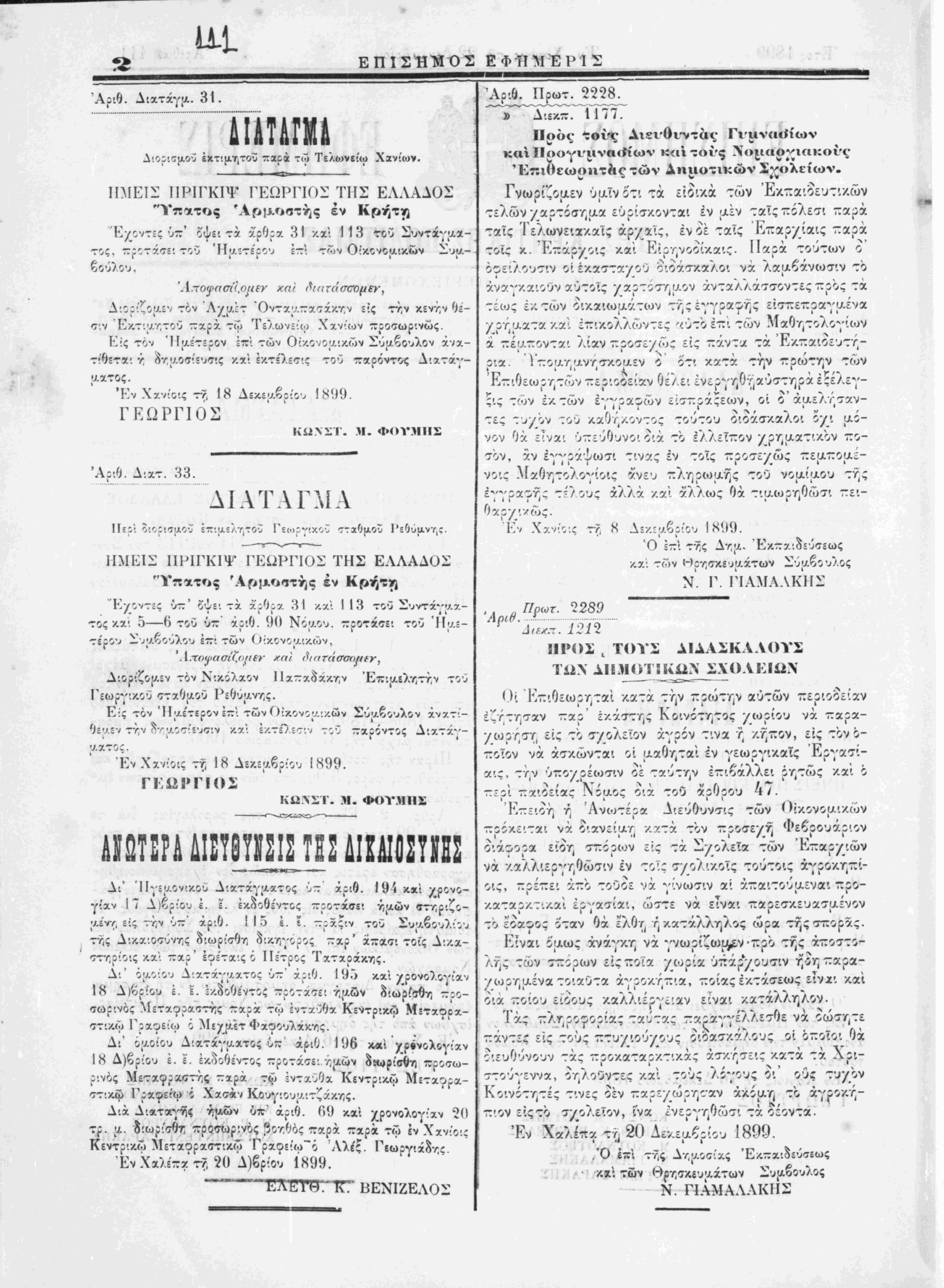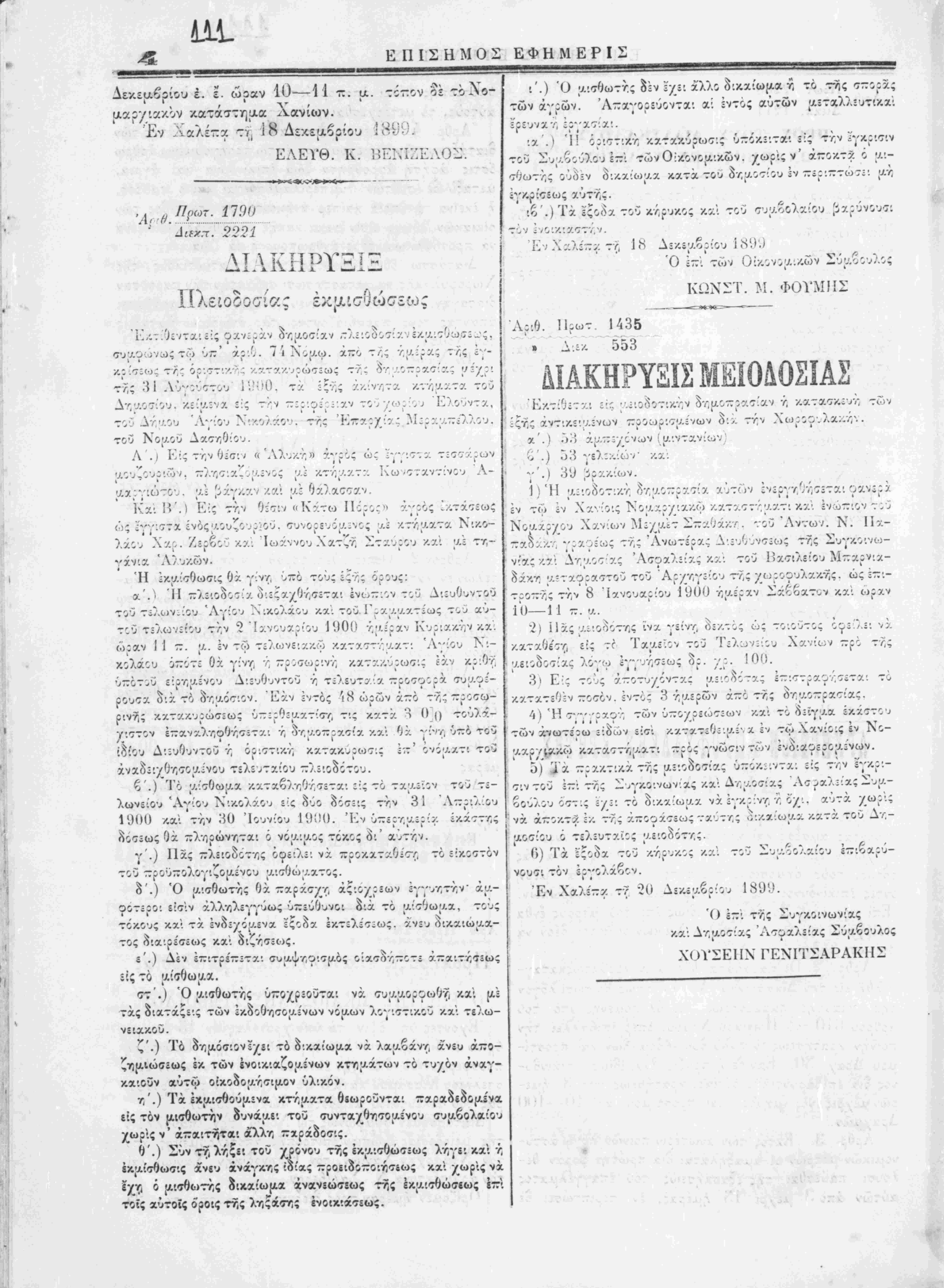 Έν Χανίοις τη 22 Δεκέαβοίου