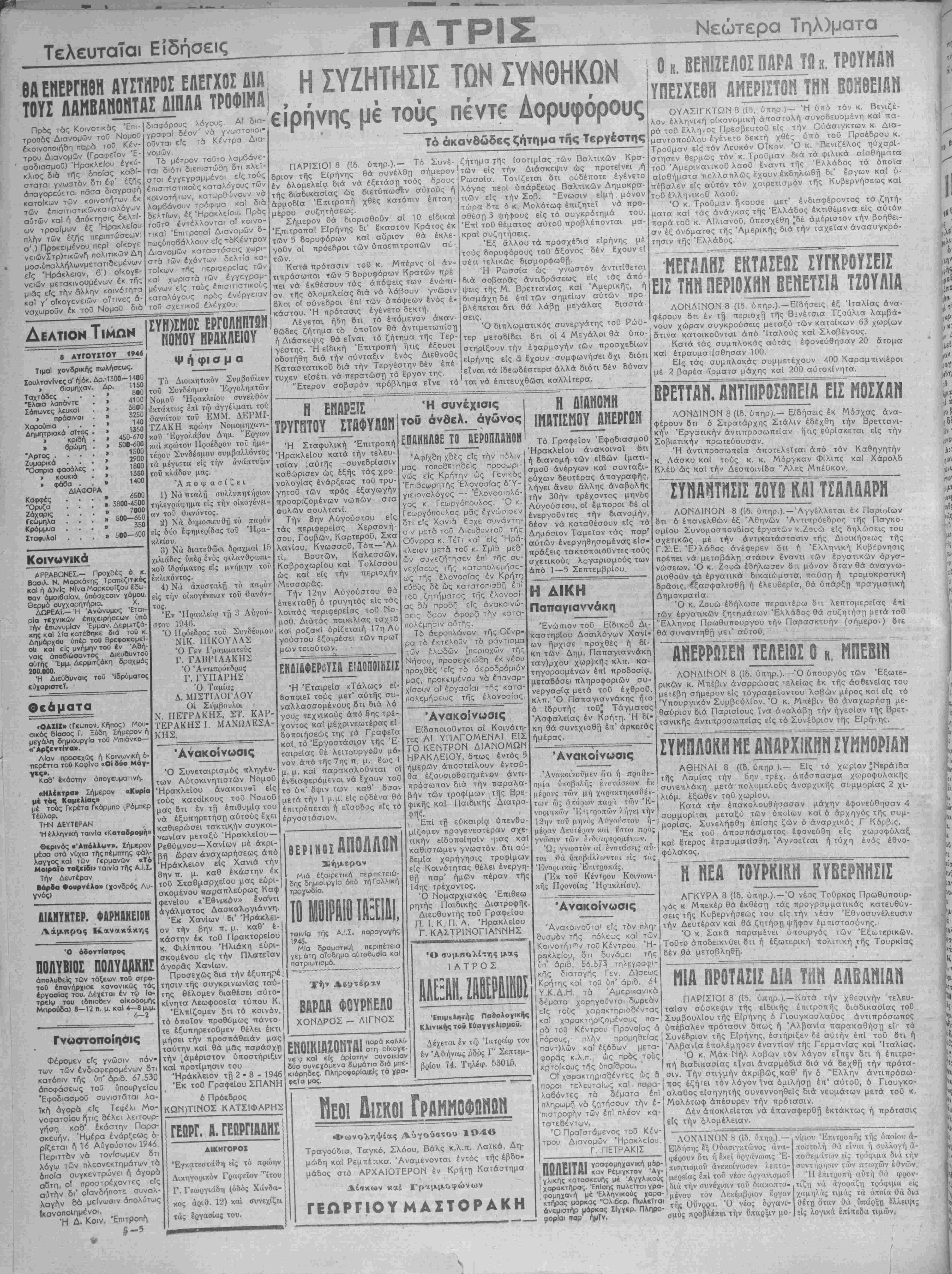 4ιχ. Ζαχαριουδάκη «Π4ΤΡΙΔΑ» ΔΙΕΥΘΥΝΕΤΑΙ ΥΠΟ ΕΠΙΤΡΟΠΗΣ 'Υπεύβυνος Δ)ντής Συντάξεως: ΑΟΗΝ. ΜΥΚΩΝΙΑΤΗΧ Ι Γραφεία Τυπογραφεία όδ