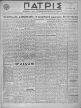 'ΐίν<.)'καΙ πρός τα κάτα». ΕΛΕΥΘΠΡ. βί.Μ!ΖΕ:ΛΟΣ ΤΙΜΗ ΦΥΛΛΟΥ ΔΡΛΧ. 200 ΠΑΤ Καδημερινή Έφημ. τού Κόμματος Βενιζελικών Φιλελεύθερον ΤΡΙΤΗ 27 ΑΥΓΟΥΣΤΟΥ 1946 ΕΤΟΣ Α.' ΑΡΙΘ. ΦΥΛΛΟΥ 55 Ταχ. Επιταγα) έμβασματα Μιχ. Ζαχαριουδάκη ν «Π ΑΤΡΙΑ Α» ΔΙΕΥΘΥΝΕΤΑΙ ΥΠΟ ΕΠΙΤΡΟΠΗΣ ΎπεύουνοςΑ)ντής Συντάξεως: ΑΘΗΝ. ΜΥΚαΝΙΑΤΗΧ Γραφεΐα Τυπογραφεΐα όδός θεο)κης 2—Τηλεφ. 625 ΒΑΣΙΛΕΙΑ ΚΑΙ ΔΗΜΟΚΡΑΤΙΑ Είς την ζωήν των άτό- μων όπως καί άν έξελίσ- σεται αυτή, ήρεμα ή' πό- λυτάραχα, ύπάρχουν κρί σιμες στιγμές πού κανο- νίζουν διά παντός τό μέλλον. Τίς στιγμές αύ- τές οί άνθρωποΐ πού ε- χούν την δύναμι ν ά. τίς ν > ώβο ν, Ινα τίς άρπά-