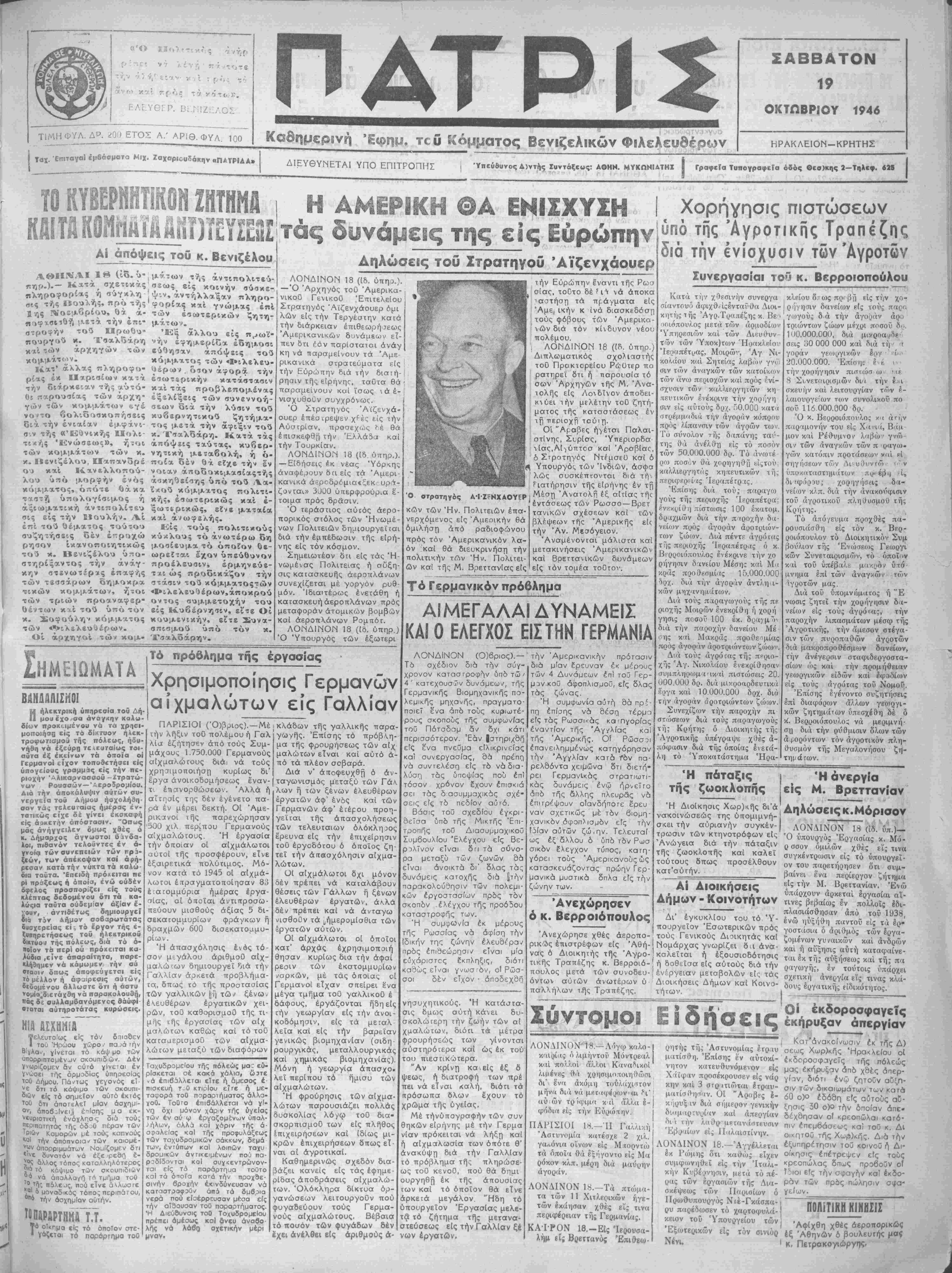 Δηλώσεις τού Στρατηγοΰ Άϊζενχάουερ