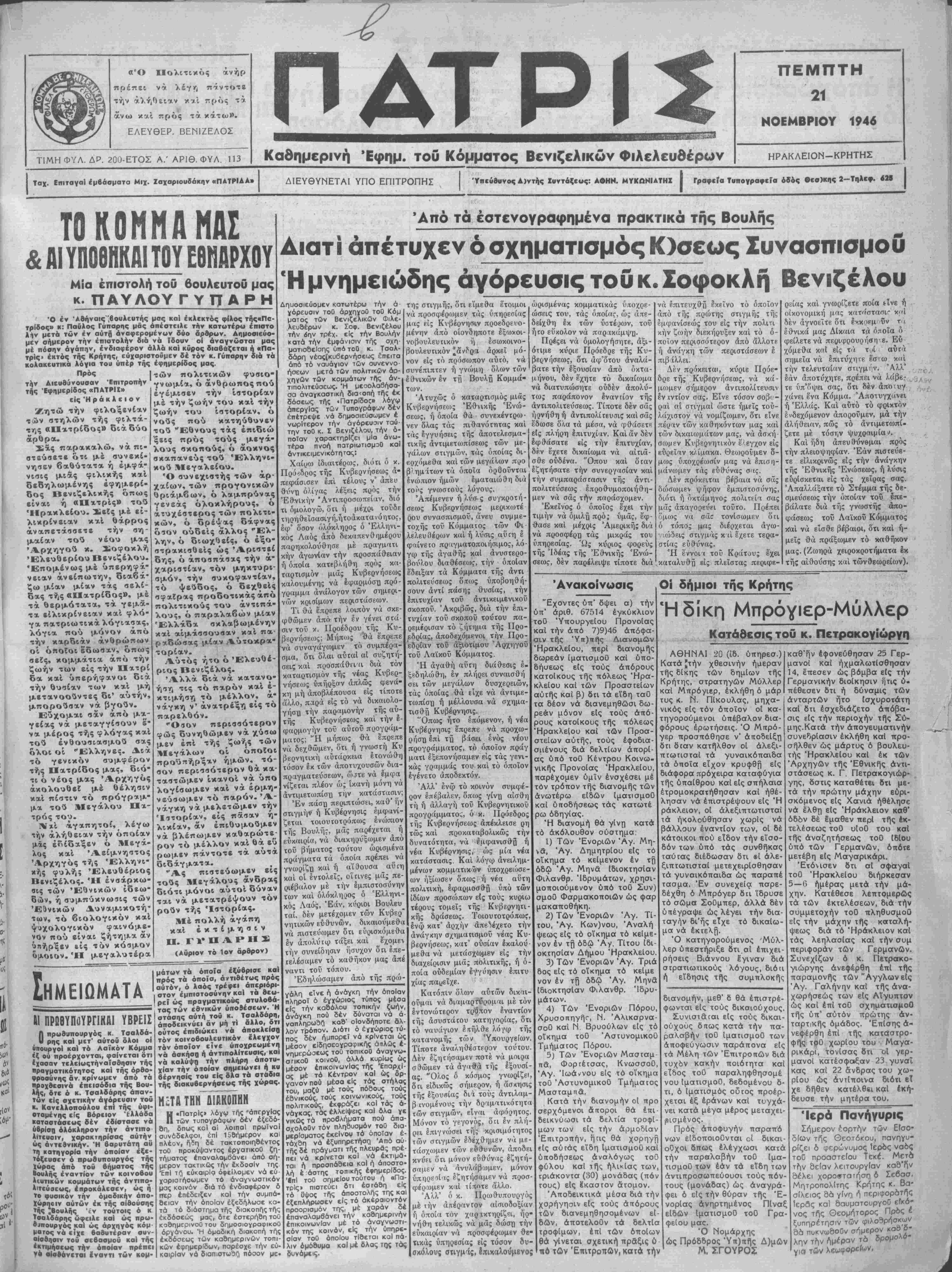τής Εφημερίδος «ΠΑΤΡΙΙ» έγέμισεν την Ιστορίαν