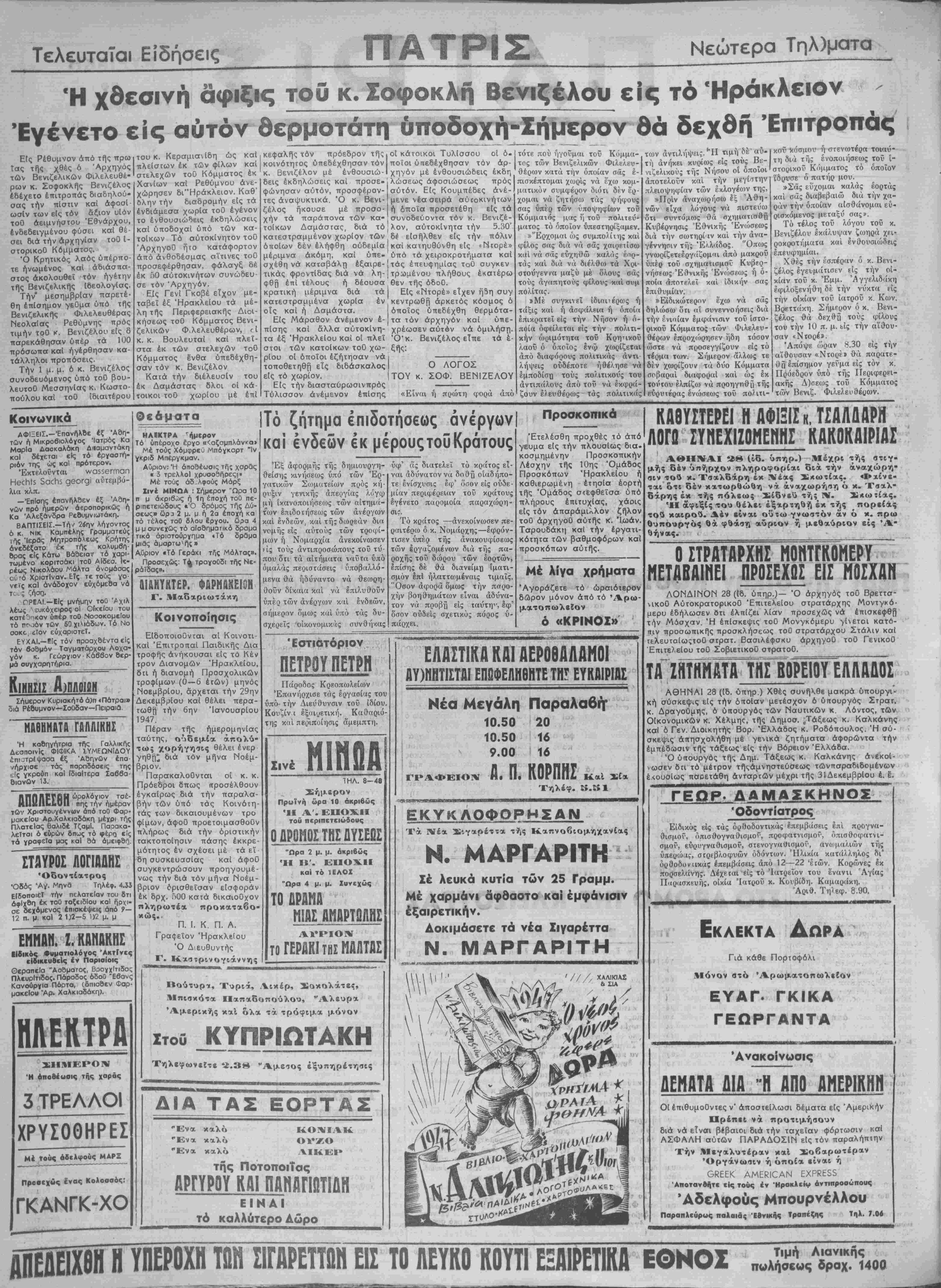 Π<ιρασκε.υής, οίκία Ίατροΰ κ. Κουβίδη. Καμαρακη. Αριθ. Τηλεφ. 8.90. γ. ΕΚΛΕΚΤΑ Γιά κάθε Πορτθφόλι ' ·' Μόνον σχό Άρωματοπωλείον. ΕΥΑΓ. ΓΚΙΚΑ Υ ΓΕΩΡΓΑΝΤΑ " Ανακοίνωσις ΔΕΜΑΤΑ ΔΙΑ ΑΜΕΡ1ΚΗΗ Οί έπιθυμοθντες ν' αποστείλωσι δέματα είς Αμερικήν Πρέπεΐ νά προτιμήσουν διά νά είναι βεβαιοί διά την ταχείαν φόρτωσιν καί ΑΣΦΑΛΗ αυτών ΠΑΡΑΔΟΣΙΝ είς τόν πσραλήπχην Την Μεγαλυτέραν καί Σοβαρωτέραν •Οργάνωσιν ή όποία είναι ή·»■' Α ΟΚΕΕΚ ΑΜΕΡΙΟΑΝ ΕΧΡΡΕ55 Άηοτανβήτα «1ς τοΰς έν ΉρακλεΙν άντιπροσώπους 'Δδελφούς Μπουρνέλλου Παραπλεύρως παλαιάς Έβνική'ς Τραπέζι·ς *~^ Τηλ. 7.0ο Κ Α ΑΠΕΪΙΧΟΓΙΗ ΥΠΕΡ0ΧΪ1ΤΩΪ1 ΣΙΓΑΡΕΤΤΩΝ ΕΙΣ ΤΟ ΛΕΥΚΟ ΚΟΥΤΙΕΞΑΙΡΕΤΙΚΑ ΕΘΝΟΣ ΤιμιΥ Αιανικης πωλήσεως δροχ. 1400