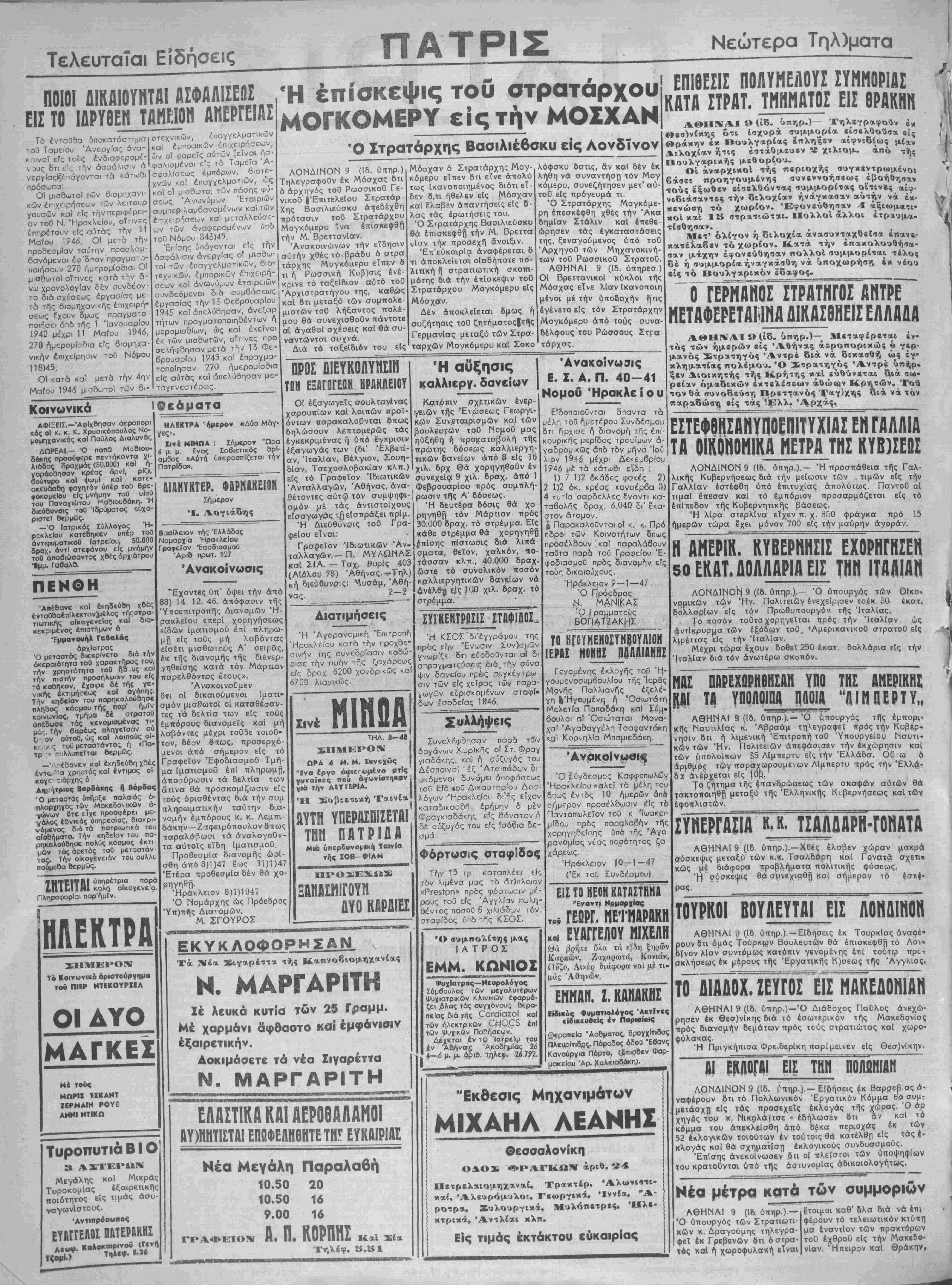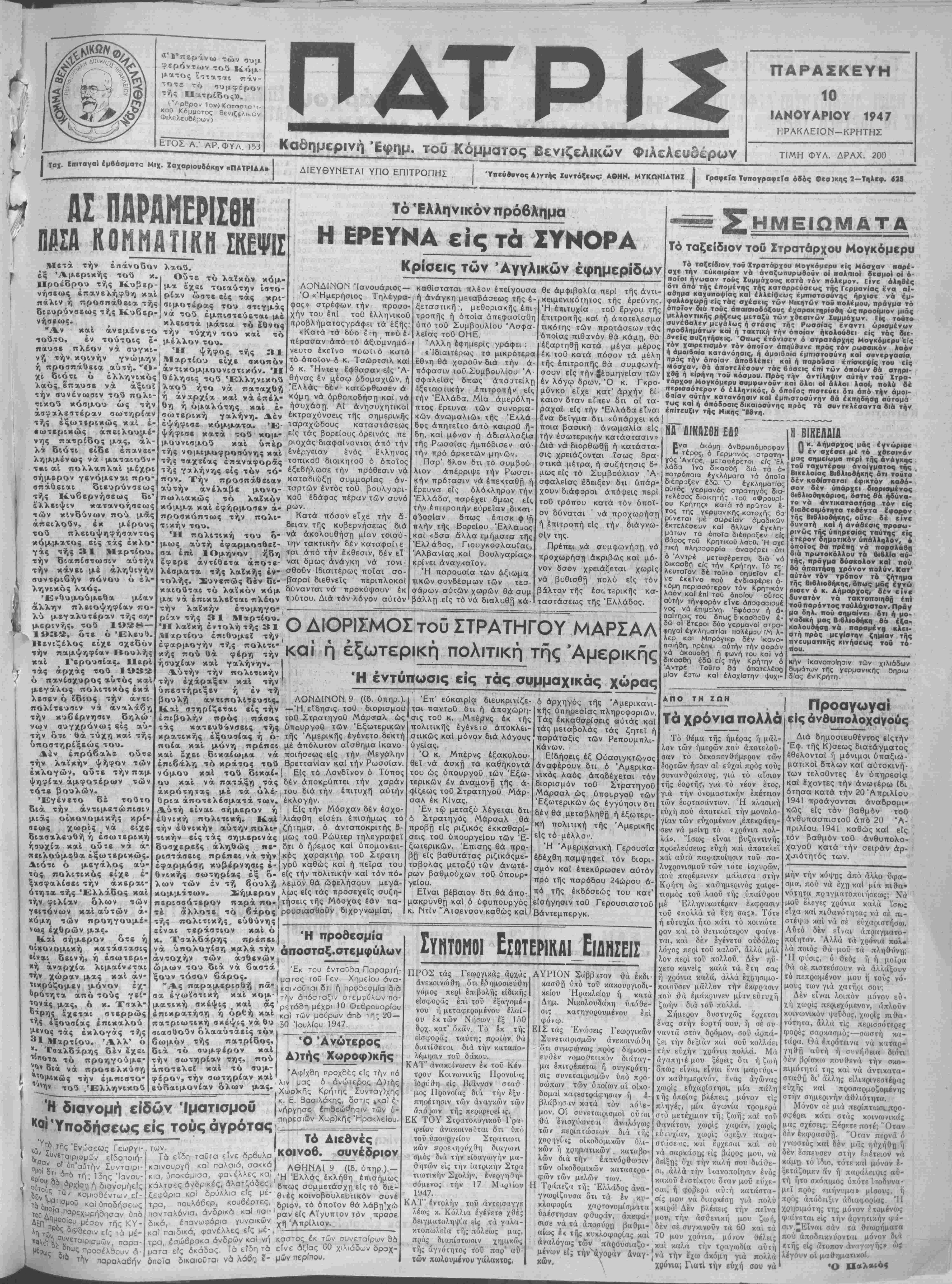 ή προσπαθεία < χι διότι ό έλληνικός λαός. έπαυσε νά αξιοί την βυνένωσιν τού πολι- τικού κόσμου ώς την ασφαλιστέραν σωτηρίαν Ι τής εξωτερικώς καί ε¬ σωτερικώς άπειλουμέ- νης πατρίδος μας, άλ¬ λά διότι είδε έπανει λημμένως νά ματαιούν· τ«ι αί πολλαπλαί μέχρι | σήμερον γενόμεναι προ¬ σπάθειαι διευθύνσεως | τής Κυβερνήσεως Βι' Ι έλλειψιν κατανοήσεως των κΐνδύνων πού μάς άπειλούν, έκ μέρους τού πλειοψηφήσαντος κόμματος είς τάς εκλο¬ γάς τής 31 Μαρτίου, την διαπίστωσιν αυτήν την κάνει μέ άληθινήν αυντριβήν πόνου ό ελ¬ ληνικάς λαός. Ενθυμούμεθα μίαν άλλην πλειοψηφίαν πο¬ λύ μεγαλυτέραν τής ση- Ί* μερινής, τοΰ 1928— 1932, ότε ό Έλευβ. Βενιζέλος είχε σχεδόν την παμψηφίαν Βουλής καί Γερουσίας. Πβρί τάς αρχάς τού 1932 ό πανίβχυρος αύτός καί μεγάλος πολιτικός έκά λεσεν ό ΐδιος τί,ν άντι- πολίτευσιν νά αναλάβη την κυβέρνησιν δηλώ νων συγχρόνως είς αύ¬ την ότι · θά τύχη καί τής υποστηρίξεώς τού. Δέν έπρόβαλε οΰτε την λαϊκήν ψήφον των έκλογών, οΰτε την παμ ψηφίαν αμφοτέρων των τότε βουλών. Εγένετο δέ τούτο δια την αντιμετώπισιν μιάς οικονομικάς κρί¬ σεως χωρίς νά είχε διασαλεύση ή έσωτερική ήσυχία καί ού τε νά ά- πειλούμεθα εξωτερικώς. Διότι ό μεγάλος αύ- τός πολιτικός είχε έ- ξασφαλίσει την άκεραι- ότητα τής Ελλάδος καί την φιλίαν όλων των γειτονων καί αυτών ά¬ κόμη των προηγουμέ¬ νως έχθρών μας. 1£.αί σήμερον ότε ή οίκονομική κατάστασις είναι δεινή, ή έσωτερι- *ή άναρχία λιμαίν<ται 'ήν χώραν μας καί άν- '·*ρύζομεν μόνον έχ- δρότητα άπό τούς γεί- £ονάς μας, 6 κ. Τσαλ- ,ς έχεται στερρώς έξουσίας έπικαλού ις τάς εκλογάς τής 31 λΐαρτίου. Άλλ' ό κ· Τσαλδάρης δέν έχει "α τό προηγούμε· διά νά προσελκύση Ι *?<·Ι*·ΐχώς την έμπιστο'- - *"*" τού /Έλληνικού γνώμην | Μαρτίου'" εί'χε σκοπόν ή "Ο-( οιντικομμουνιστικόν. Ή Τό Ελληνικόν πρόβλημα Η ΕΡΕΥΝΑ είς τα ΣΥΝΟΡΑ Κρίσεις των Αγγλικών εφημερίδων ΛΟΝΔΙΝΟΝ Ίανουάριος— καθίσταται πλέον έπείγουσα θε άμφιβολΐα περί τής άντι- Ό «Ήμερήσιος Τηλέγρα- φος» στρέφων την προσο- χήν τού επί τοϋ έλληνικοϋ προβλήματοςγράφει τα εξής: «Κατά τα δύο έ τη π*ύ ε¬ πέρασαν άπό τό άξιομνηαό νευτο έκεΐνο ττοωι'νό κατά τό οποίον ό κ. Τσώρτσιλ καί ό κ. Ήντεν έφθασαν είς Α¬ θέλησις τού Έλληνικού θήνσ·ς έν Ηέσω όδομαχιών, ή λαού ήτο νά παταχθή "Ελλάς δέν κατώρθωσεν ά ή άναρχία καί νά έπέλ'- κ°μΠ νά δρθοποδήση, καί νά θη ή ομαλότης καί έ- ήσυχάστ). Αί άνησυχητικαί σωτερική γαλήνη. Δέν έκτραχύνσεις τής σημερινής εψήφισε χόμματα. Έ- ταραχώδους καταστάσεως ψήφιαε κατά τού κομ- ε[ς τός βορεΐους όρεινάς πε μουνιομού καί υπέρ Ριοχάς διαψαΐνονται άπό την τής νομιμοφροσύνης καί ενέργειαν ενός έλληνος τής ταχείας έπαναφοράς τοπικοΟ διοικητοΟ ό οποίος τής γαλήνης είς τόν τό- εξεδήλωσε την πρόθεσιν νά πον. Την προσπάθειαν καταδιώξη. συμμορΐας άν- αύτήν ανέλαβε μονο- ταρτών έντός τοθ βουλγαρι- πωλιακώς τό λαϊκόν κο° έδάφος πέραν τ<£ν συνό κόμμα καί εφήρμοσεν ά>