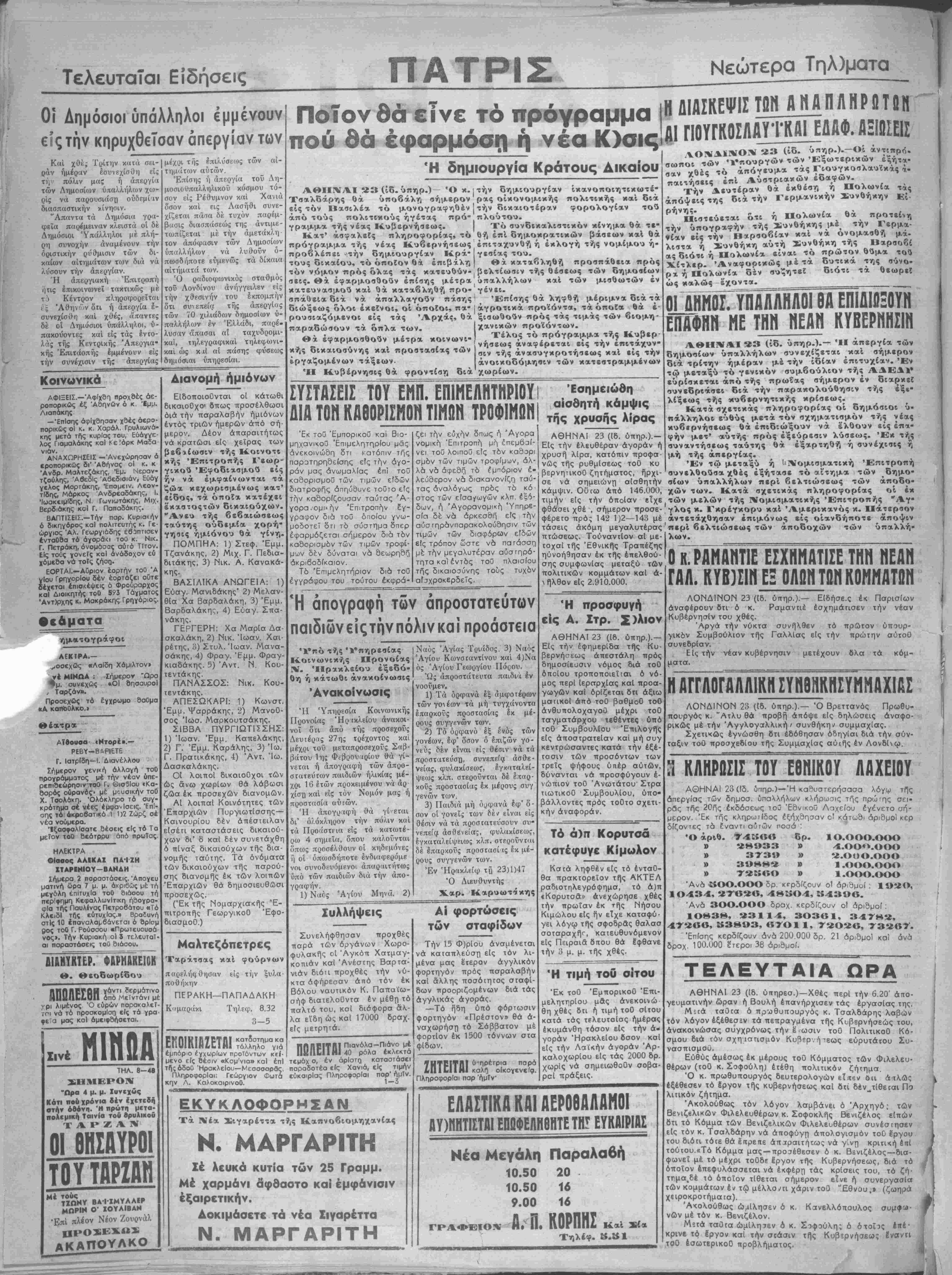 άπεργίας των δημοσ. ύπαλήλων κλήρωσις τής πρώτης σει-