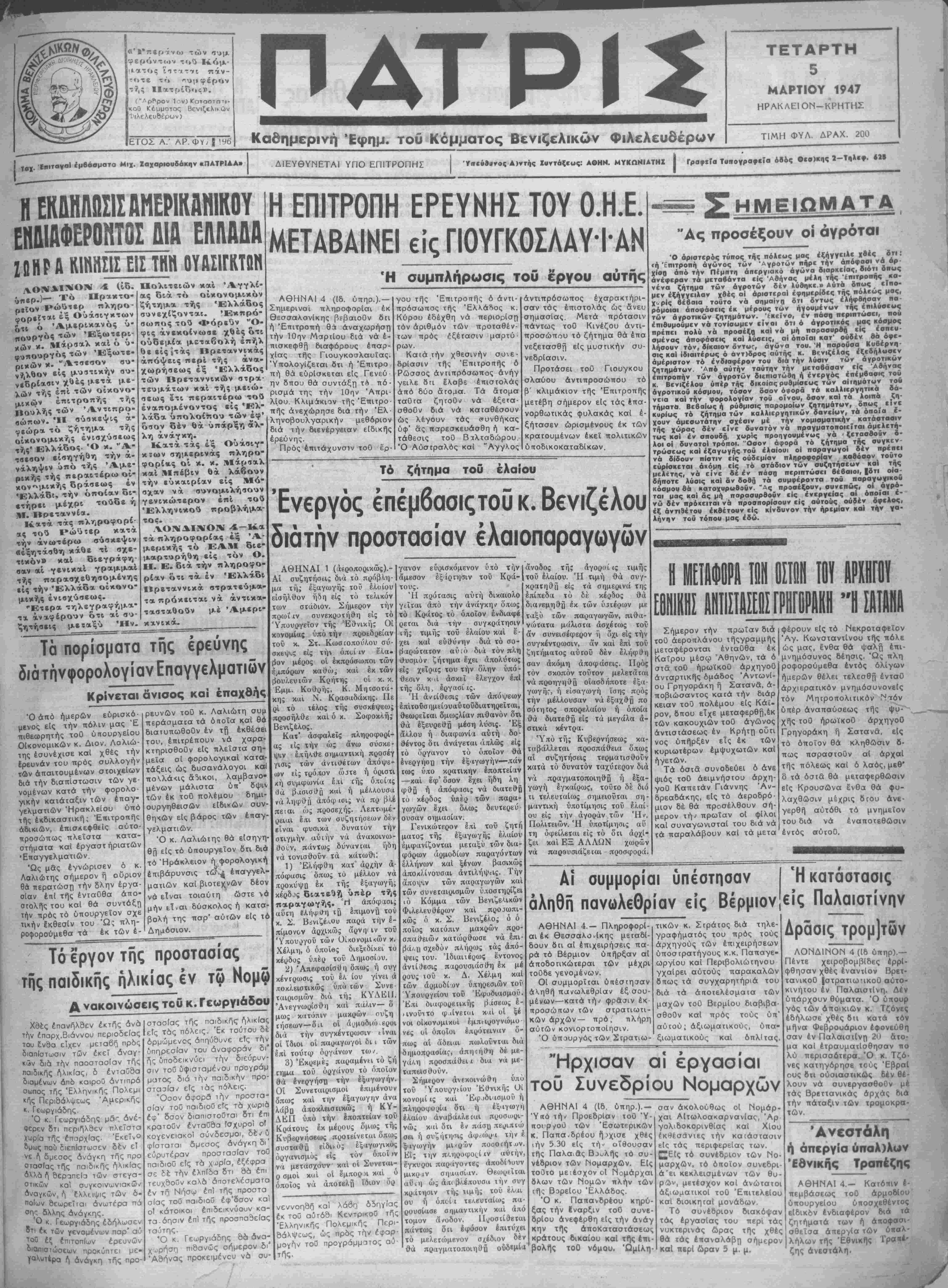 ΕηιταγαΙ έμβάσματα Μιχ. Ζαχαριουδάκην «ΠΑΤΡΙΔΑ»